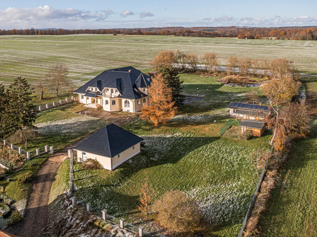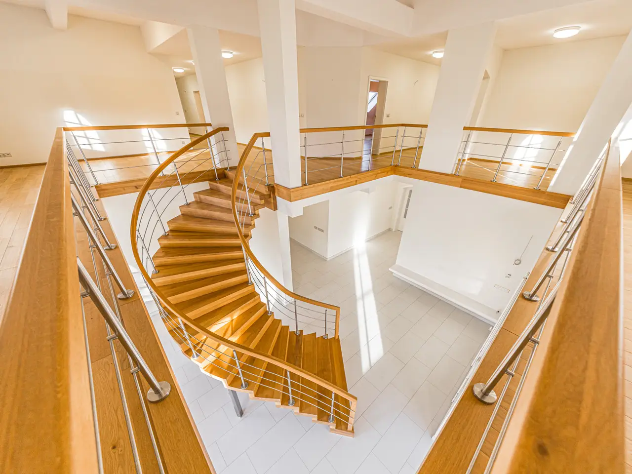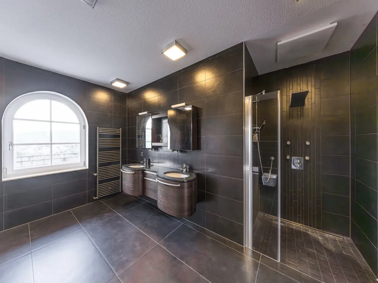 This exceptional villa combines timeless elegance and modern luxury in a unique architectural design. Situated on a spacious plot, this property not only offers generous space, but also the highest quality of life and privacy. The imposing entrance area welcomes you with a cantilevered oak staircase that majestically extends over two floors and provides a view of the stylish staircase. This architectural masterpiece creates a feeling of space and exclusivity right from the entrance area. With a total of ten luxurious rooms on two floors, the villa offers a harmonious blend of modern design and functional elegance. The first floor impresses with its spacious, light-flooded rooms, which are fitted with the finest parquet and stone flooring and create a warm, inviting atmosphere. The high ceilings and the open, airy room concepts give each room an impressive sense of space. On the upper floor, a wraparound gallery awaits you, offering a clear view of the impressive entrance area and the rooms below. Here you can see the exclusive rooms, some of which have access to a private balcony and offer a breathtaking view of the well-tended grounds and the surrounding area. The large windows provide plenty of natural light and allow the house to shine in a harmonious light. The villa has an ultra-modern, luxurious kitchen that leaves nothing to be desired. Equipped with state-of-the-art appliances, this kitchen is not only a meeting point for culinary delights, but also the heart of the house. The same goes for the bathrooms, which have been designed with the finest materials to create a spa-like feeling for every family member or guest. Another highlight is the heated indoor pool, which can be used all year round and conveys the feeling of vacation and relaxation right in your own four walls. The adjoining wellness area perfectly complements the luxurious ambience. The spacious terrace with an area of approx. 300 m², covered with fine sandstone, invites you to relax and linger. It offers ample space for lounge areas, dining facilities and at the same time provides a breathtaking view of the extensive outdoor area, which is equipped with a swimming pond, a fountain and a well-tended garden landscape. There is also a dog kennel on the grounds. The villa is complemented by a spacious 100 m² garage, which offers enough space for several vehicles and meets the highest standards of comfort. With all its unique features and luxurious appointments, this villa is the perfect home for discerning buyers looking to realize the dream of exclusive living in the highest style and comfort. Live the luxury you deserve - in a home that leaves nothing to be desired.