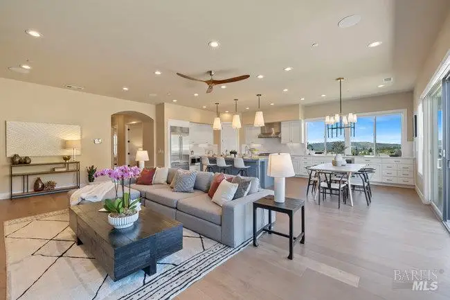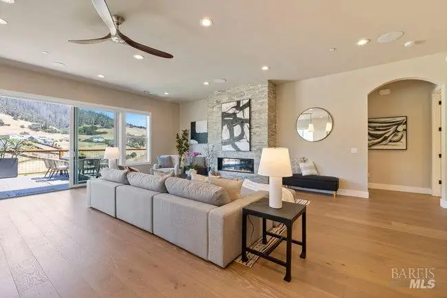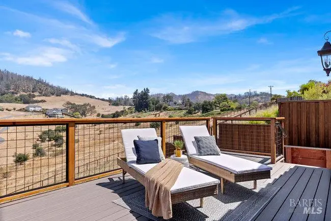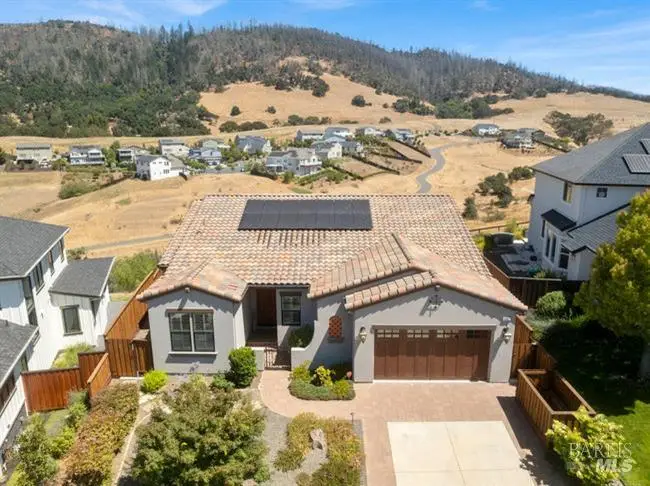 Impressive custom Christopherson home built in 2022, set amid expansive open space with stunning panoramic views throughout. This single-level residence features an open floor plan, arched hallway entries, and spacious great room, which is the heart of the home, and is anchored by a welcoming fireplace and effortlessly connected to a 700 square foot Trex deck - ideal for indoor-outdoor living. Chef's kitchen offers a large granite-topped island with prep sink, walk-in pantry and premium appliances including a Wolf 6-burner gas range, Sub-Zero fridge and wine fridge. Considerable private primary suite includes deck access, serene views, oversized walk-in closet and spa-like bath with curb-less wet room, soaking tub, radiant heat and dual-sink vanity. Secondary bedrooms are peaceful sanctuaries and all baths display stylish finishes. Additional highlights include a home office/flex room, chic ceiling fans, plantation shutters, Hunter Douglas remote shades, surround sound with Paradigm speakers, and Elan smart home wiring. Pristine garage boasts epoxy floors, storage, utility sink, and two EV chargers. Adding to its appeal are the Spanish tile roof, Generac backup generator, 14-panel owned solar, keyless entry, tankless water heater, pro landscaping, and proximity to the best Sonoma County has to offer!