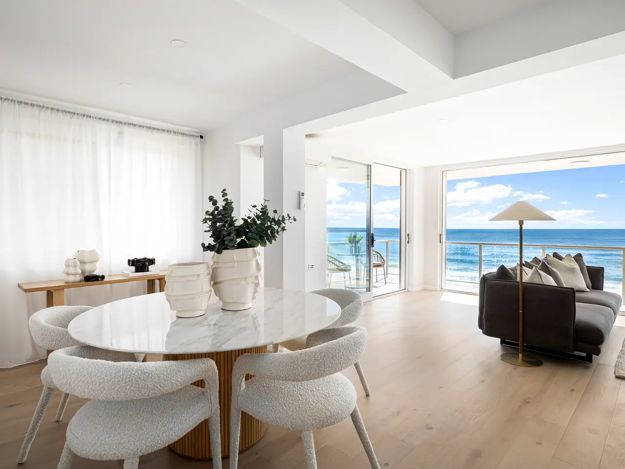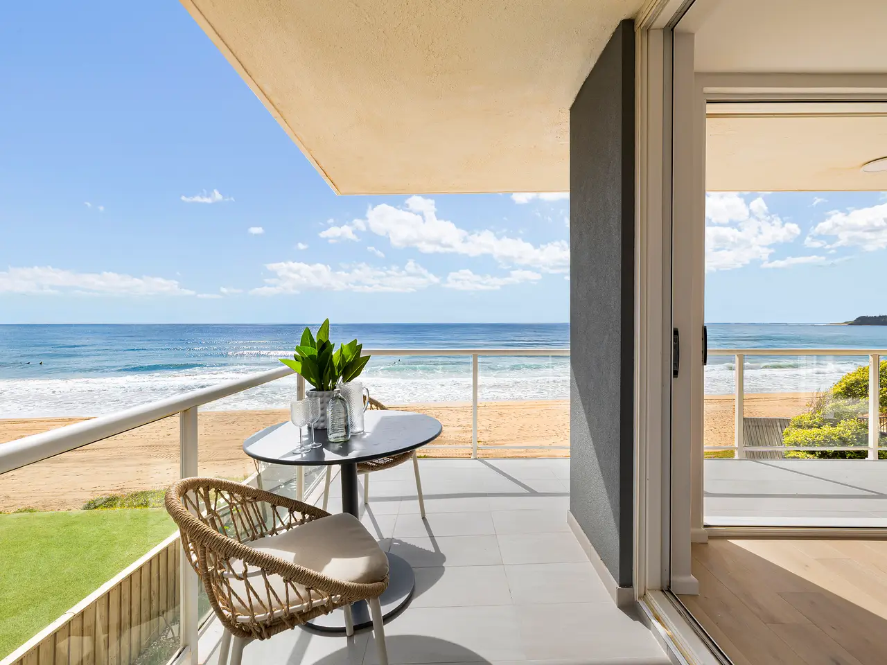 Point-blank ocean views take centre stage to the stylish interiors of this absolute beachfront security apartment holding the prized northeast corner position of a small block of only 4. The creatively redesigned apartment is bathed in sunshine with windows on three sides and a wide wrap-around terrace offering a perfect spot for entertaining against the breathtaking ocean backdrop or simply soaking up the ocean breeze and salty sea vibes. An oversized three-bedroom layout offers indoor/outdoor living space, enhanced by quality designer finishes, plus a single lock-up garage, under-building car space, and separate storage cage. Step out directly onto the beach action or stroll to trendy seaside cafes, dining, ocean pool and express B-line buses making day-to-day living a dream. - Unobstructed ocean and coast views from headland to headland - Bathed in sunshine with a north-east aspect, soothing sea breezes - 'Yulunga' a unique secure beachfront block of 4, solid double brick - Oversized layout, streamlined interiors, timber floors - Free-flowing living and dining area offers seamless connection outdoors - Designer stone crafted island kitchen, Bosch cooktop, integrated dishwasher - Wrap-around balcony, ideal to relax and unwind to the ever-changing backdrop - Three double bedrooms with built-in robes, fold-down wall bed for flexibility - Sleek bathroom with deep soaking bath and heated towel rails - Functional internal laundry with cabinetry and w/c, air conditioning - Single lock up garage, underbuilding car space, and separate storeroom