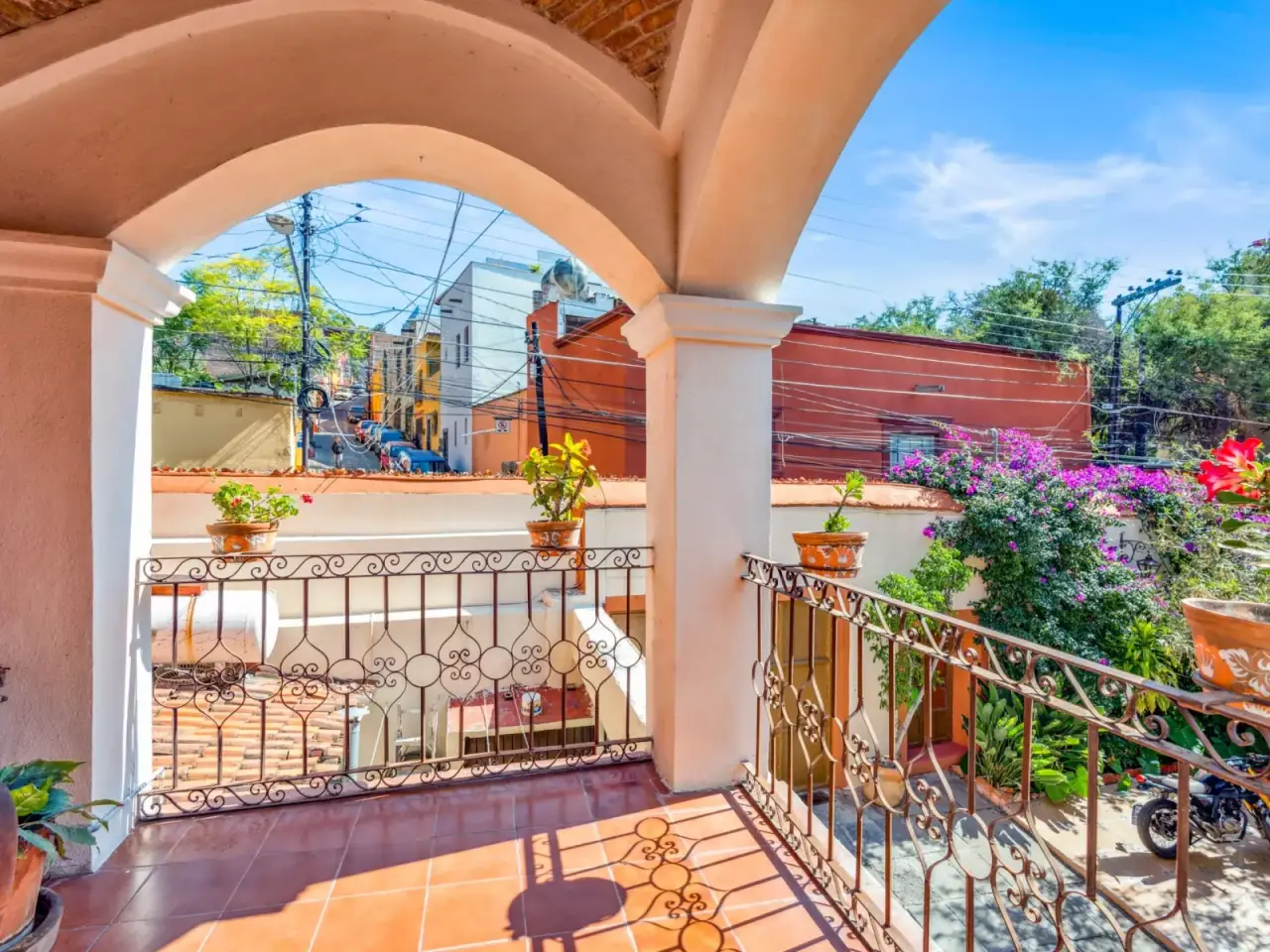 Set in the heart of Centro, one of San Miguel de Allende’s most coveted locations, this unique property offers endless potential for the visionary buyer. With 597m2 of land and 342m2 of construction, Casa de los Espejos is an expansive canvas ready to become your dream estate or a charming boutique hotel. The main house features three ensuite bedrooms, thoughtfully arranged for privacy and convenience. The ground-floor bedroom is ideal for guests or those seeking single-level living. The second floor hosts the primary bedroom and a guest suite, each with its own private terrace—perfect for morning coffee or sunset views. A half bath is conveniently located for guests. The kitchen, complete with a breakfast table, connects to the living and dining room which opens to an inviting outdoor dining area overlooking the generous garden spaces. Here you will also find an expansive BBQ and grill area where a pizza oven awaits—an entertainer’s dream. At the garden’s edge, discover a fully equipped one-bedroom casita, ideal for hosting visitors or generating rental income. For those who love panoramic views, the roof terrace is a true highlight. With a covered seating area and breathtaking vistas of the iconic Parroquia. Additional features include a two-car garage, ensuring secure and convenient parking. While the home is fully livable as it stands, its charm and character invite a touch of personalization to suit modern tastes. The timeless bones of this property make it a rare and rewarding investment opportunity. With its peaceful street location just steps from San Miguel de Allende’s diverse attractions, this property is truly a gem waiting to be polished. Whether you envision a luxurious private residence or an inviting boutique hotel, this property’s location and potential are unmatched. Schedule your private tour today to explore the possibilities.