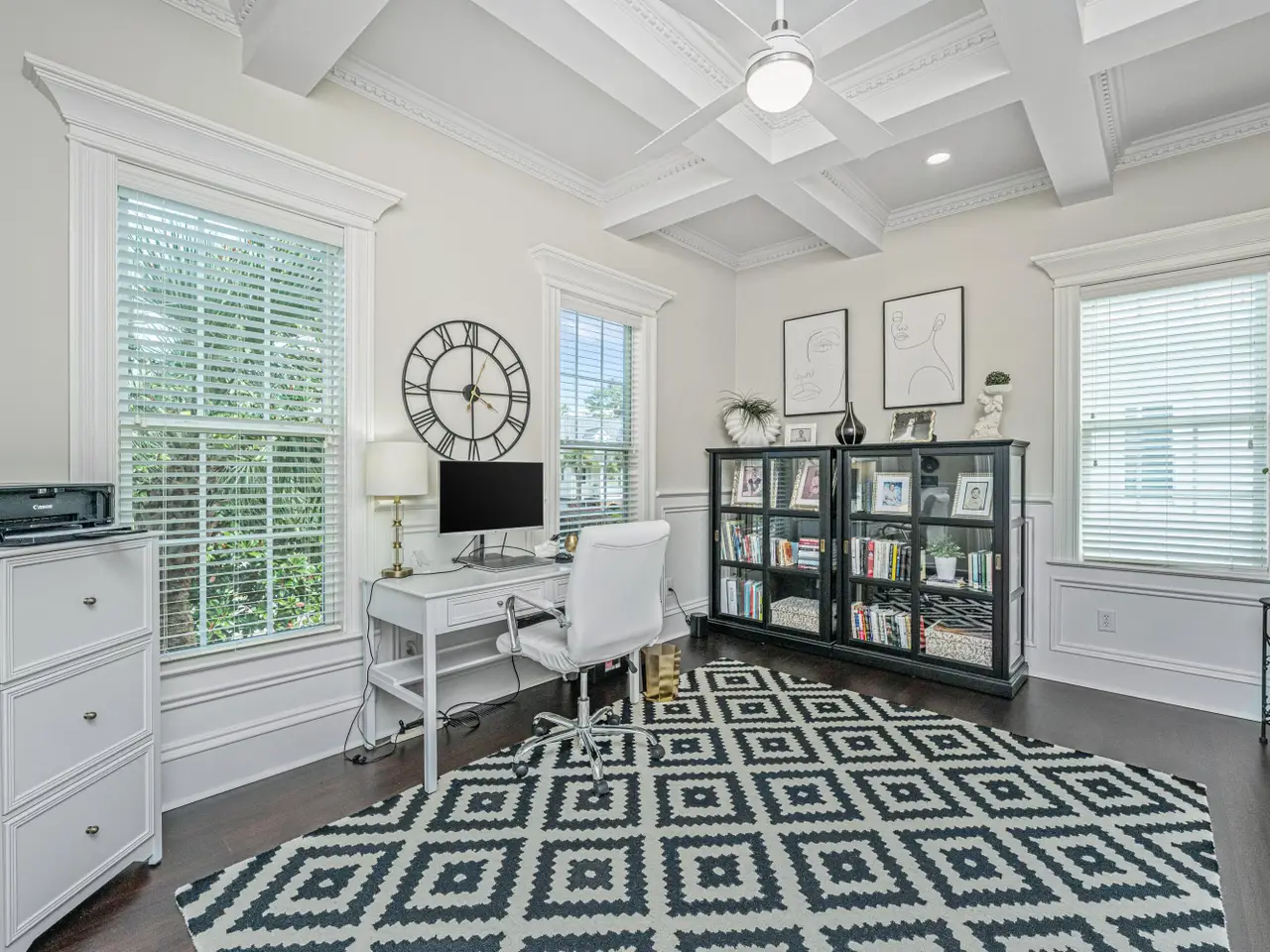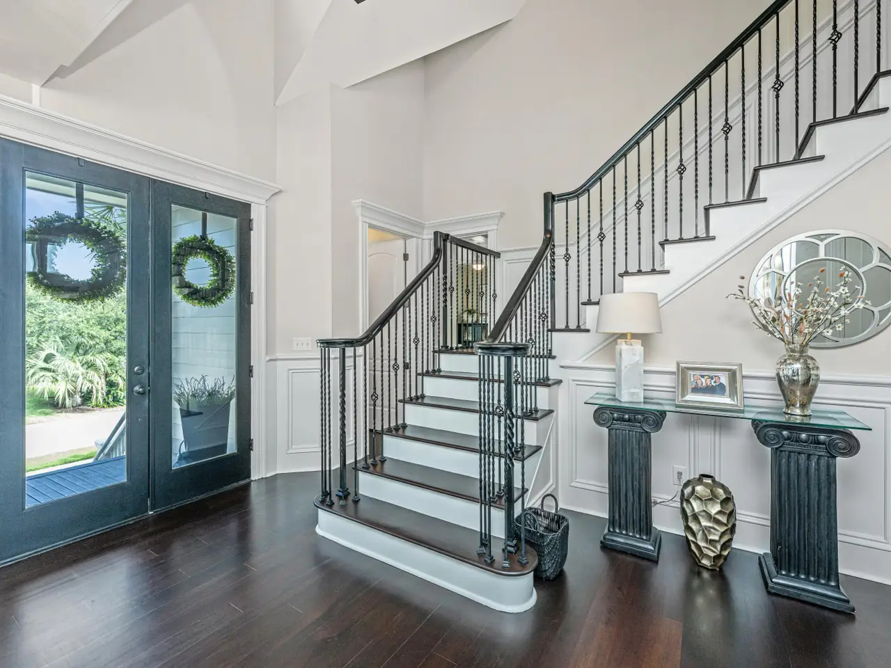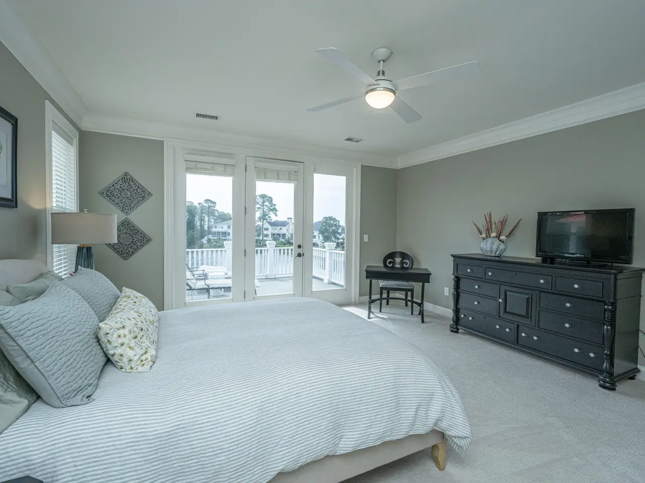French doors and trimmed windows