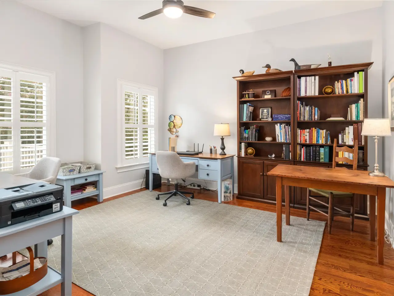 Welcome to 36 Grove Lane -- a beautifully maintained and thoughtfully updated townhome located in the prestigious Daniel Island Park. This elegant three-bedroom, three-and-a-half-bath residence offers the perfect blend of classic charm and modern updates, with gleaming hardwood floors throughout and natural light filling every space. Overlooking Grove Park, a lushly landscaped park with formal gardens and an open lawn, the home's curb appeal is undeniable, featuring timeless brick architecture, double-stacked porches, and gas lanterns flanking the front entry.Inside, the main level offers inviting living and entertaining spaces. The family room centers around a cozy gas fireplace, while the formal dining room effortlessly connects to the updated kitchen, featuring quartz countertops and an adjacent sitting area ideal for casual gatherings. The first floor also includes a designer-inspired laundry room and a stylish powder room for guests. Upstairs, the spacious primary suite is a serene retreat featuring a private sitting area, dual walk-in closets, and a fully renovated en-suite bath that showcases timeless finishes and a walk-in shower. Two additional bedrooms are generously sized, each with their own walk-in closets and private bathrooms, offering comfort and privacy for family or guests. The 10' ceilings and 8' doors add a heightened sense of openness throughout the townhome. Step outside to a private rear porch that overlooks a peaceful courtyard perfect for morning coffee or unwinding in the evening. A covered breezeway connects the home to a detached two-car garage, accessible from the rear alley. Additional highlights include a large rear storage closet, expansive attic with abundant storage, crown molding, and a sealed crawl space with dehumidifier offering both beauty and functionality. The home's low-maintenance exterior is ideal for those seeking an easy-care lifestyle. As a resident of Daniel Island Park, you will enjoy a Daniel Island Club Social Membership, with the opportunity to upgrade to a sports or golf membership. Contact the Daniel Island Club Membership office for more information on availability, wait lists, and fees associated with each membership level. Buyer to pay a one-time neighborhood enhancement fee of 0.5% of the sales price to the Daniel Island Community Fund at closing, along with an estoppel fee to the Daniel Island Property Owners Association, Inc.