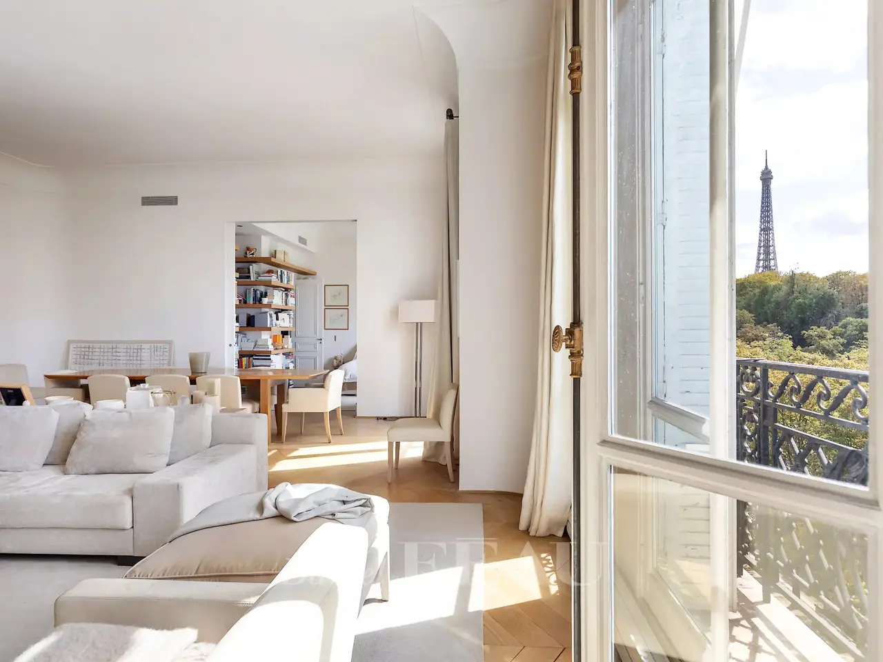 Avenue Georges Mandel/Trocadero. This sunny air-conditioned apartment on the 3rd floor of a fine freestone building with a caretaker offers 165 sqm of living space. South-facing and featuring 3.70 metre high ceilings, it includes an entrance hall, a double living/reception room bathed in sunshine, a separate kitchen, and two bedrooms with bathrooms and dressing rooms. Sold with a 13 sqm maid’s bedroom and a cellar.