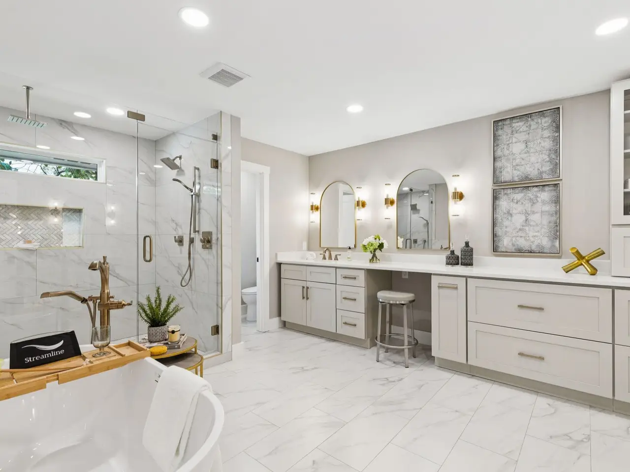 Free-standing tub in primary suite