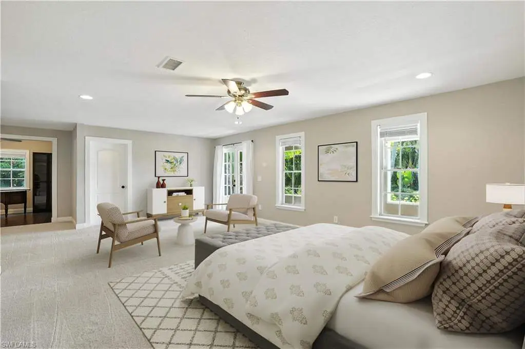 RARE FORT MYERS ESTATE WITH 2.39 ACRES-ONE OF THE LAST LARGE PARCELS LEFT IN THE CITY. Behind private gates in the sought-after Briarcliff community, this 4-bed, 3-bath two-story estate with separate guest quarters offers 5011 sq ft of elegant living, wrapped in lush privacy with a pond, pool, and mature royal palms lining the circular drive. The main home features a chef's kitchen, expansive owner's suite with sitting room, Jacuzzi tub, oversized shower, and two walk-in closets, plus upstairs guest suite and game room. A detached barn with 220 power includes a separate upstairs studio apartment, with private entry and rooftop sundeck above the 4+ car garage. Enjoy private tennis, pickleball, and basketball courts, RV parking with hookups, and peace of mind in FEMA X500 zone with no flood insurance required, a whole home generator, whole-house water softener system, and prior monthly preventative pest and termite treatments. Estate-hired lawn care is available including treatment, edging, weed treatment, and more, to keep these items off of your to-do list while keeping your mind at ease. All this just minutes from city life with all the necessities nearby and less than 10 miles from Fort Myers Beach, yet tucked away in a world of its own. Schedule your private showing today!