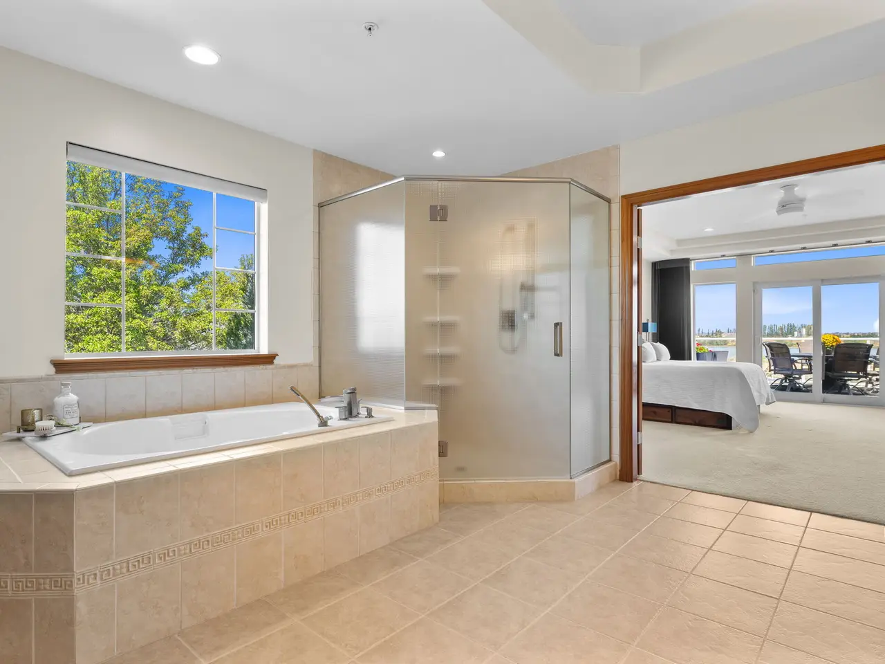 Welcome to The Moorings at Columbia Point - Tri-Cities premier destination with million-dollar views! This exclusive, single-level end unit condo offers unmatched marina and riverfront views, upscale finishes, and a lifestyle that blends comfort with class. Step inside and feel the elegance immediately. A welcoming entry features coffered ceilings with cove lighting, setting the tone for the thoughtful design throughout this spacious 3-bedroom plus flex room home. The gourmet kitchen is a true showstopper, featuring quartz counters, full-height tile backsplash, under-cabinet lighting, and a premium appliance package including a Filli Bertazzoni Italia induction cooktop, GE Cafe double wall ovens, wine fridge, and compactor. The oversized walk-in pantry includes a fridge/freezer combo. Designed for effortless entertaining, the kitchen opens to a casual dining area, a formal dining room, and an expansive great room with a tile surround gas fireplace and custom built-ins. Sliding glass doors lead to a private waterfront balcony with automatic blinds, offering panoramic views of the Columbia River. The owner’s retreat offers private balcony access and a spa-style bathroom featuring a soaking tub, full-tile walk-in shower with bench, bidet, oversized vanity with granite counters, and a custom walk-in closet. The two secondary bedrooms also feature large custom walk-in closets, while the family room offers versatility and could be a dedicated home office, study, or guest room. A huge 12x11 storage room is tucked off the oversized laundry room (washer and dryer included), and the home is complete with a central vacuum system and an attached two-car garage below with additional storage. Additional highlights include- direct elevator access directly to the condo, golf course next door, and close proximity to shopping, parks, and freeway access. You'll also enjoy access to the 9.5-mile paved riverfront trail just below. This low-maintenance, lock-and-leave lifestyle is everything you've been waiting for. Experience luxury waterfront living, where every detail has been carefully curated, and million-dollar views greet you daily. Plus, you're just a short walk to Tri-Cities top restaurants including Anthony's, Budd's, and Perch Restaurant. Don't miss your chance to own a slice of waterfront paradise - schedule your private tour today!