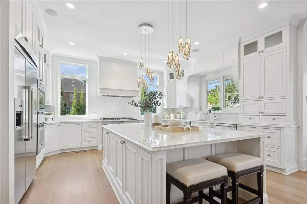 Sophisticated and fully reimagined, this one-of-a-kind 5BR/5.1BA estate in College View blends timeless architecture with today's most desired amenities. Set on an ultra-rare 160' wide double lot, the home has been comprehensively updated inside and out and now offers a lifestyle that rivals new construction. The wide-open layout showcases soaring ceilings, dramatic window walls, and wide-plank French oak flooring. A dream kitchen anchors the main level with a 48" Thermador range, dual dishwashers, Quartzite counters, oversized island, and both walk-in and butler's pantries. Retreat-worthy primary suite with sitting lounge, morning bar, spa-quality bath with radiant heated floors, soaking tub, and multi-spray shower. All bedrooms include custom-fitted en-suites. The lower level is designed for entertaining with a full bar, game/rec space, gym, steam shower, and dual saunas (infrared + hot). Outside, enjoy resort-style living with a Bluestone terrace, outdoor kitchen/bar with pizza oven, and a multi-sport court. Three-car heated garage, new roof (2023), HVAC (2024), generator, integrated Sonos, and radiant heating throughout. Prime location - walk to Hawthorne Elementary, York HS, Wilder Park, the Metra, and vibrant downtown Elmhurst.