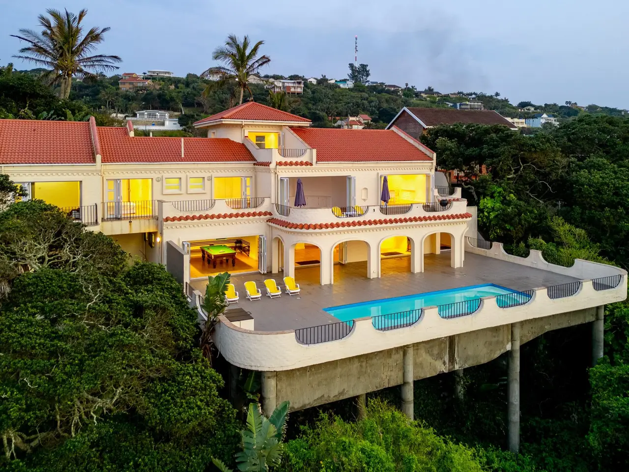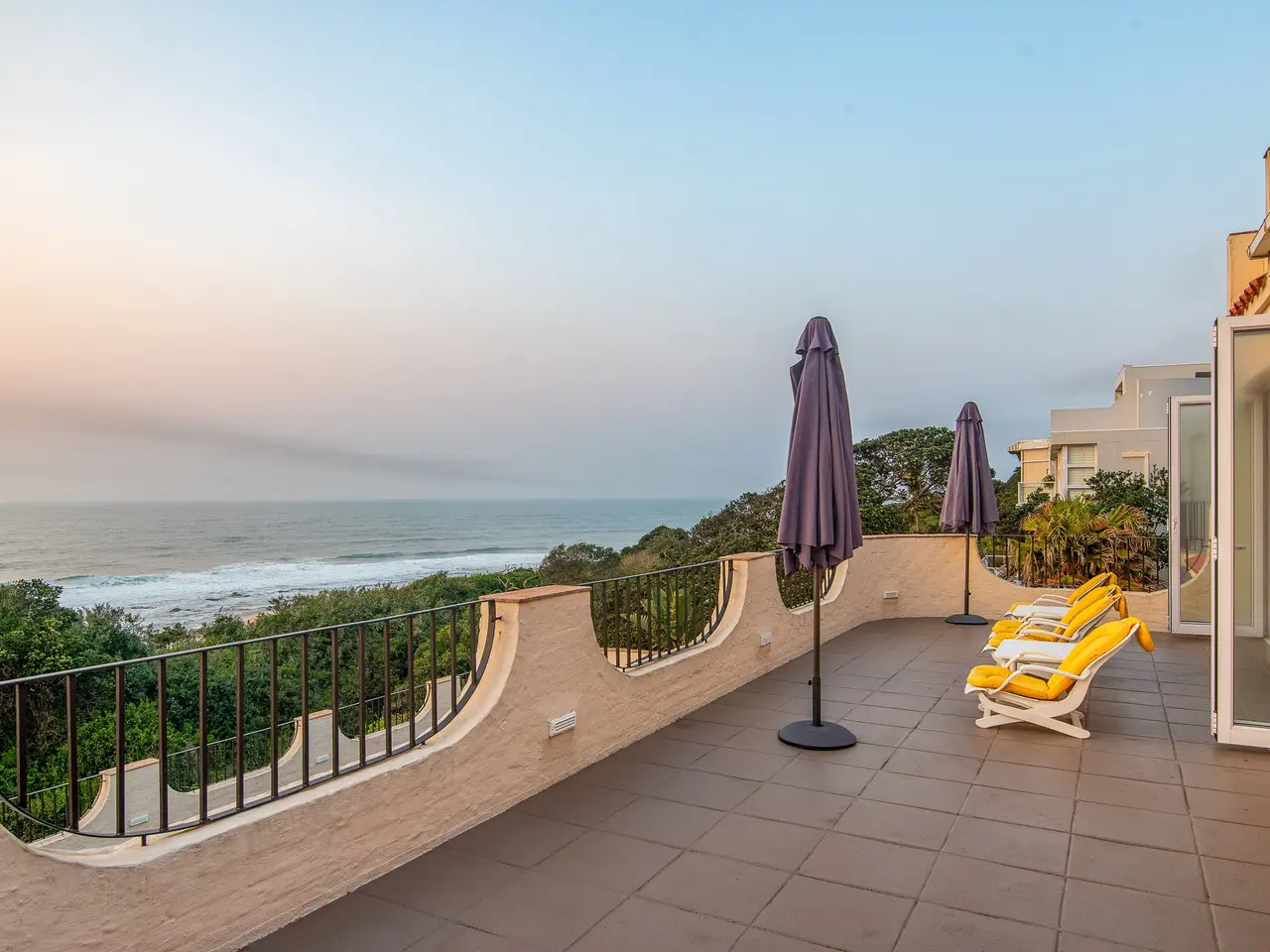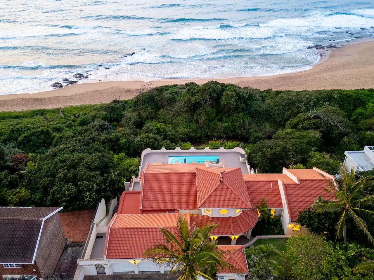 Nestled on a pristine stretch of coastline, this iconic beachfront residence stands as one of the most sought-after homes in Zinkwazi. Boasting panoramic ocean views from the moment you step through its grand entrance, this home promises an unmatched coastal lifestyle. The upper level welcomes you with expansive living spaces, including an elegant dining room and lounge that seamlessly flow onto a vast balcony, perfect for soaking in the breathtaking sea vistas. A generously appointed kitchen, complete with a scullery and laundry, offers everything required for entertaining with ease. Three en-suite bedrooms grace this level, each offering access to private balconies with uninterrupted ocean views, ensuring tranquility and comfort. Above the grand entrance hall, a unique space, previously used as a study, presents an ideal setting for a chic cocktail bar, offering what are arguably the finest views in the home. On the lower level, you’ll find an impressive open-plan living area with a built-in bar, ideal for hosting, with stacking doors that open to a sweeping balcony. A games room, guest loo, and a private en-suite bedroom round off this level, with direct access to the inviting 10-meter lap pool and entertainment area. Direct beach access via a beautifully maintained walkway, along with two domestic rooms and a full alarm system, complete this remarkable home. This property offers an exceptional opportunity to own a piece of Zinkwazi's most prestigious beachfront. Don’t miss out on this rare opportunity to secure your place in paradise.