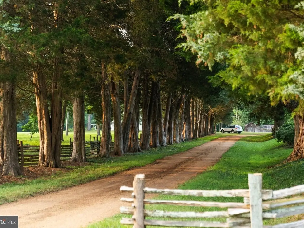 Cedar-lined driveway leading to the magnificent estate