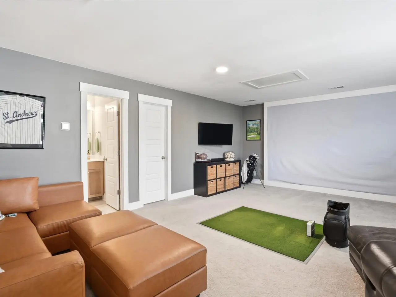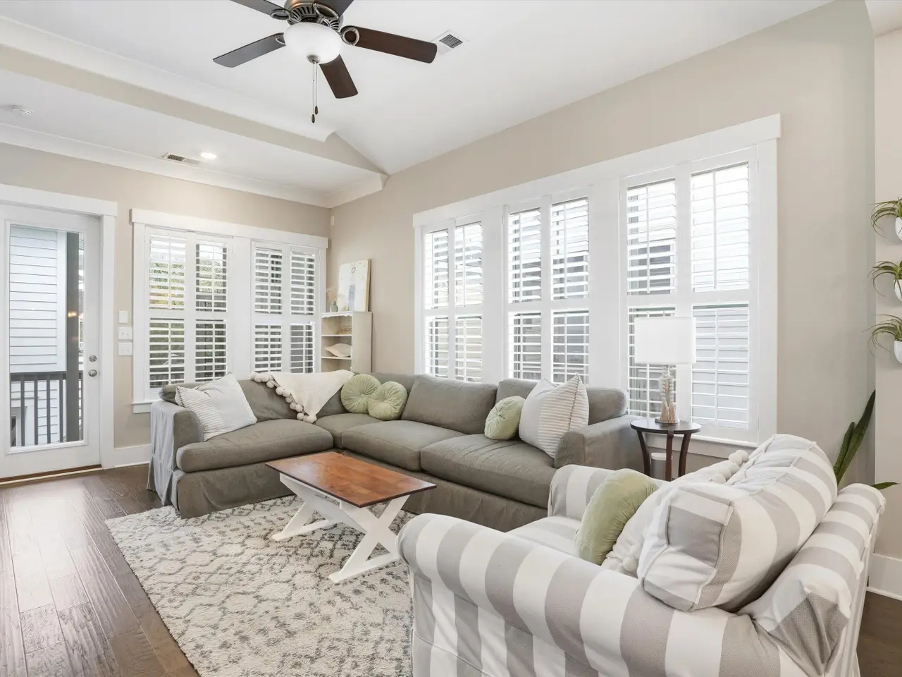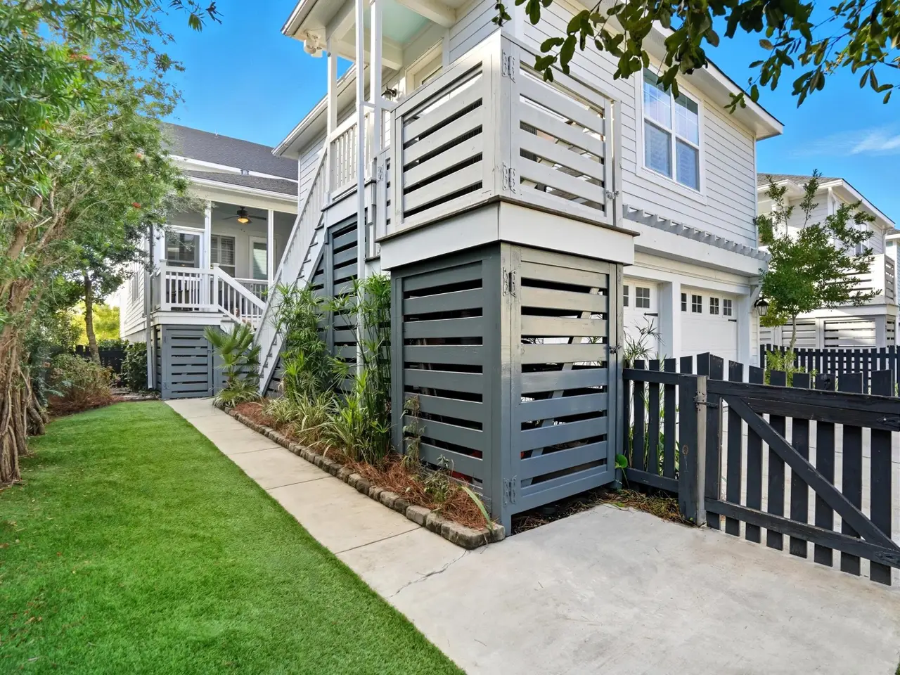 Experience exceptional Daniel Island living in this bright coastal home! Boasting 2,677 total sq ft (including a desirable detached, conditioned FROG), this property blends luxury with unparalleled walkability.The main level features a home office with custom shelving and seamless hardwood floors throughout the open-concept living area. The kitchen has quartz Silestone countertops, a shiplap island, a 5-burner gas stovetop, and stainless appliances. The family room offers a gas fireplace flanked by custom built-ins.The main floor Primary Suite is a private retreat with a spa-like ensuite bath, featuring a frameless glass shower, oversized tub, and spacious walk-in closet.Upstairs includes a large flex room, two generous bedrooms, and a full bath.The detached FROG (484 sq ft) is fully finished and currently configured as a media room with a golf simulator, easily flexing into a private office or guest suite with an extra-large storage room. Outdoor living is enhanced by a tranquil screened porch, a full patio, and a low-maintenance turf backyard with durable TREX steps. Enjoy true walkability to the Daniel Island School, Crow's Nest Pool, Town Center shops, and Credit One Stadium. This is Daniel Island living at its finest!