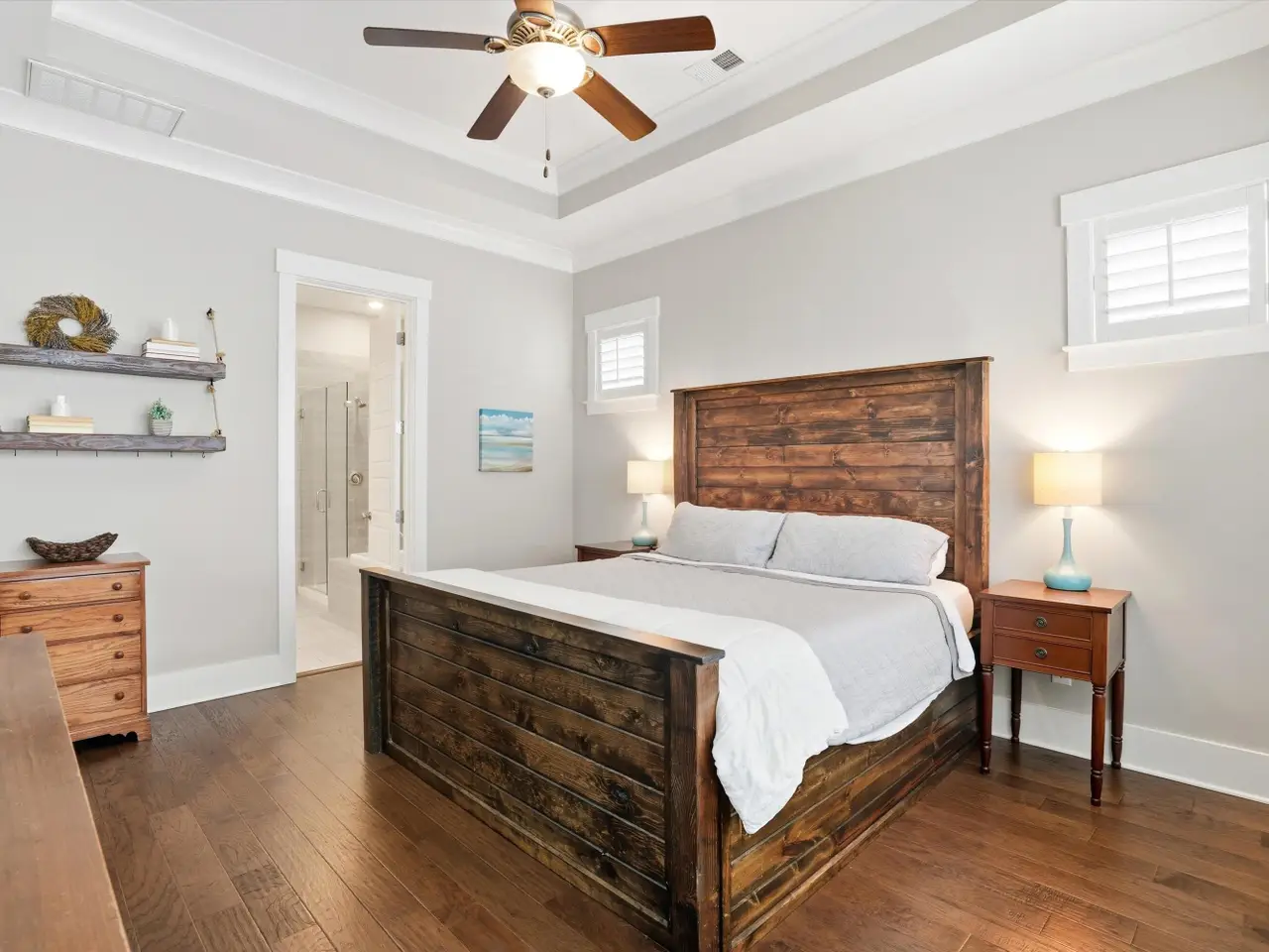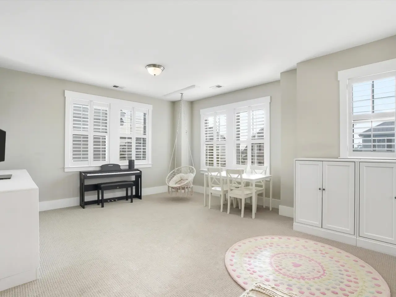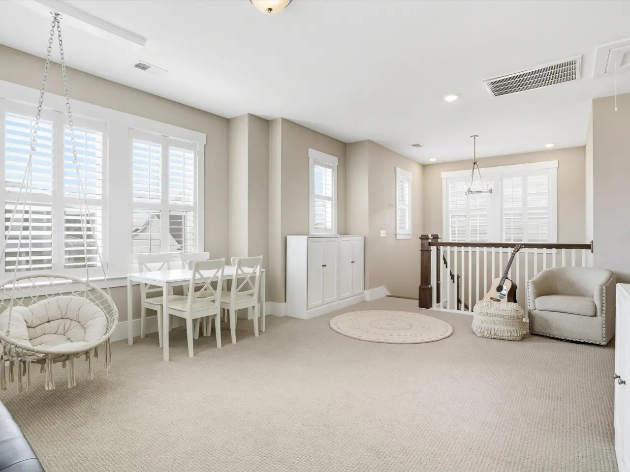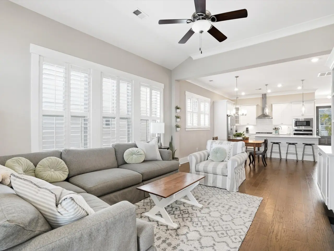 Experience exceptional Daniel Island living in this bright coastal home! Boasting 2,677 total sq ft (including a desirable detached, conditioned FROG), this property blends luxury with unparalleled walkability.The main level features a home office with custom shelving and seamless hardwood floors throughout the open-concept living area. The kitchen has quartz Silestone countertops, a shiplap island, a 5-burner gas stovetop, and stainless appliances. The family room offers a gas fireplace flanked by custom built-ins.The main floor Primary Suite is a private retreat with a spa-like ensuite bath, featuring a frameless glass shower, oversized tub, and spacious walk-in closet.Upstairs includes a large flex room, two generous bedrooms, and a full bath.The detached FROG (484 sq ft) is fully finished and currently configured as a media room with a golf simulator, easily flexing into a private office or guest suite with an extra-large storage room. Outdoor living is enhanced by a tranquil screened porch, a full patio, and a low-maintenance turf backyard with durable TREX steps. Enjoy true walkability to the Daniel Island School, Crow's Nest Pool, Town Center shops, and Credit One Stadium. This is Daniel Island living at its finest!