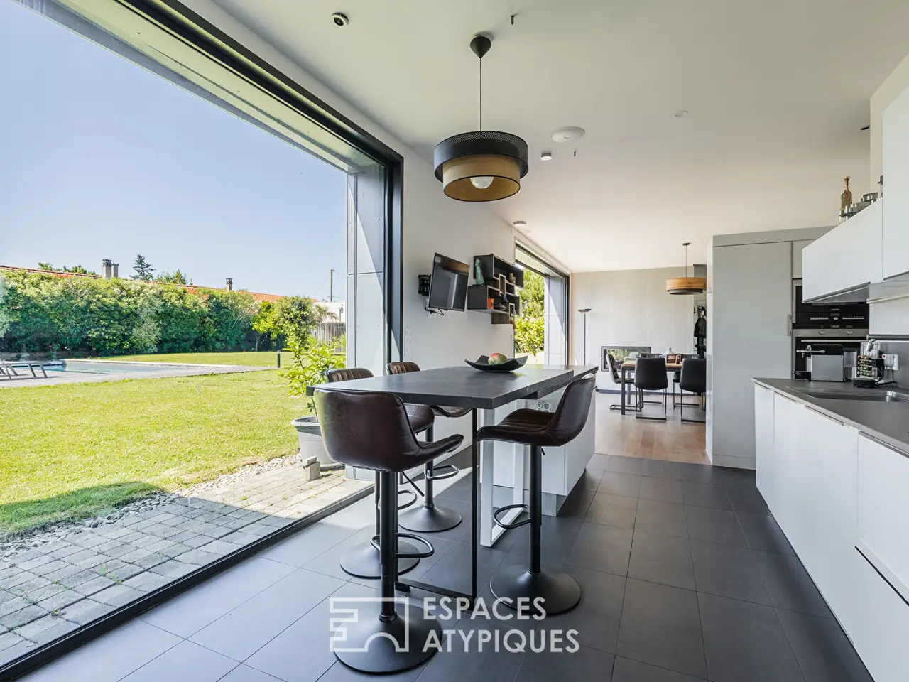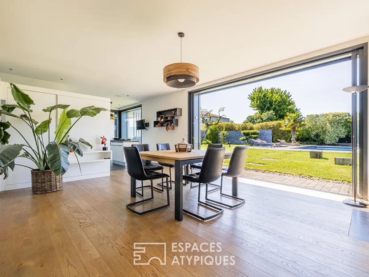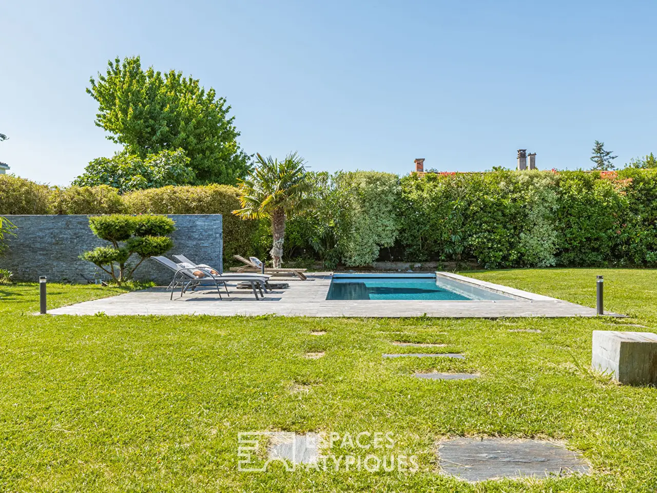 Nestled in the heart of a peaceful residential environment in the Tasdon district of La Rochelle, this contemporary house offers approximately 270 m2 of living space on a wooded plot of over 1,400 m2.Its elegant silhouette and refined architecture blend perfectly into its green setting. Featuring a heated swimming pool with a wooden deck, a vast landscaped garden, and large bay windows, this property offers rare living comfort at the gateway to the ocean.Designed to prioritize volume and brightness, the house is organized around a vast living room bathed in natural light thanks to its south-facing openings. The living room with a fireplace insert, the dining room, and the open kitchen create a fluid and welcoming atmosphere.A master suite on the ground floor, with a dressing room and adjoining shower room, as well as another bedroom and its shower room complete the main level. Upstairs, two additional bedrooms with storage and a bathroom make up a separate sleeping area. The selected materials and finishes give the space a warm yet understated ambiance.Outside, the heated swimming pool is the center of summer fun. It is bordered by a wooden deck, ideal for relaxing or outdoor dining with its summer kitchen. The landscaped garden invites tranquility, in a carefully designed setting that blends local species with exotic touches. An annex converted into a guest bedroom with its bathroom completes the exterior.The immediate environment is residential and quiet, yet remains close to amenities: shops, schools, and leisure facilities are quickly accessible, as are La Rochelle city center and the Atlantic coast. Private parking and a garage complete this living space. This contemporary home embodies the elegance of modern living combined with the serenity of a privileged living environment. An atypical property, designed to offer a lifestyle that is both functional and inspiring.ENERGY CLASS: B / CLIMATE CLASS A: Estimated average amount of annual energy expenditure for standard use, established from energy prices for the years 2021, 2022 and 2023: between EUR2,140 and EUR2,970.REF. EALR2004Additional information* 8 rooms* 5 bedrooms* 1 floor in the building* Outdoor space : 1420 SQM* Property tax : 4 369 €Energy Performance CertificatePrimary energy consumptionb : 107 kWh/m2.yearHigh performance housing*A*107kWh/m2.year3*kg CO2/m2.yearB*C*D*E*F*GExtremely poor housing performance* Of which greenhouse gas emissionsa : 3 kg CO2/m2.yearLow CO2 emissions*3kg CO2/m2.yearA*B*C*D*E*F*GVery high CO2 emissionsEstimated average annual energy costs for standard use, indexed to specific years 2021, 2022, 2023 : between 2140 € and 2970 € Subscription IncludedAgency feesThe fees include VAT and are payable by the vendorMediatorMediation Franchise-Consommateurswww.mediation-franchise.com29 Boulevard de Courcelles 75008 ParisInformation on the risks to which this property is exposed is available on the Geohazards website : www.georisques.gouv.fr