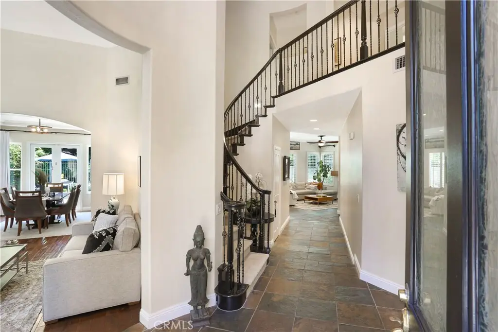 PRICE IMPROVEMENT! Welcome to your new sanctuary located in the heart of San Juan Hills Estates, a prestigious gated community set amidst the rolling hills of historic San Juan Capistrano. This exquisite 5-bedroom, 4.5-bathroom residence spans over 3,300 sq. ft. and offers a thoughtfully designed floor plan, including a main-floor ensuite bedroom and a resort-style backyard with a pool and spa. From the moment you enter, the quality craftsmanship is undeniable, with rich built-ins, elegant slate and stone finishes, and three fireplaces enhancing the home's warmth and sophistication. The grand sweeping staircase sets the tone for the refined yet inviting interiors. Designed for both grand entertaining and everyday comfort, the home features expansive formal living and dining rooms, along with a spacious family room anchored by a cozy gas fireplace. The adjacent gourmet kitchen is a chef's dream, complete with a large center island and high-end Wolf appliances, including a 36" gas cooktop and 30" double ovens. Upstairs, the luxurious primary suite serves as a private retreat, featuring a romantic fireplace, spa-like bath, and dual walk-in closets. Two additional bedrooms share a Jack & Jill bathroom, while a secondary ensuite bedroom boasts a private balcony overlooking the front yard. The main-level ensuite bedroom, currently used as an office, offers flexibility to suit your lifestyle needs. Step outside to your tranquil backyard oasis, where you'll find the perfect setting for alfresco dining, entertaining, or simply unwinding in the sparkling pool and spa. Additional highlights include a separate laundry room with ample storage, a 3-car garage with an oversized driveway, and a brand-new roof installed in 2023. Ideally located just minutes from top-rated schools, shopping, hiking trails, world-class beaches, fine dining, equestrian facilities, golf courses, and the charm of historic downtown San Juan Capistrano, with easy freeway access. Low HOA, No Mello-Roos! Experience the best of California indoor-outdoor living in this exceptional home--Welcome Home!