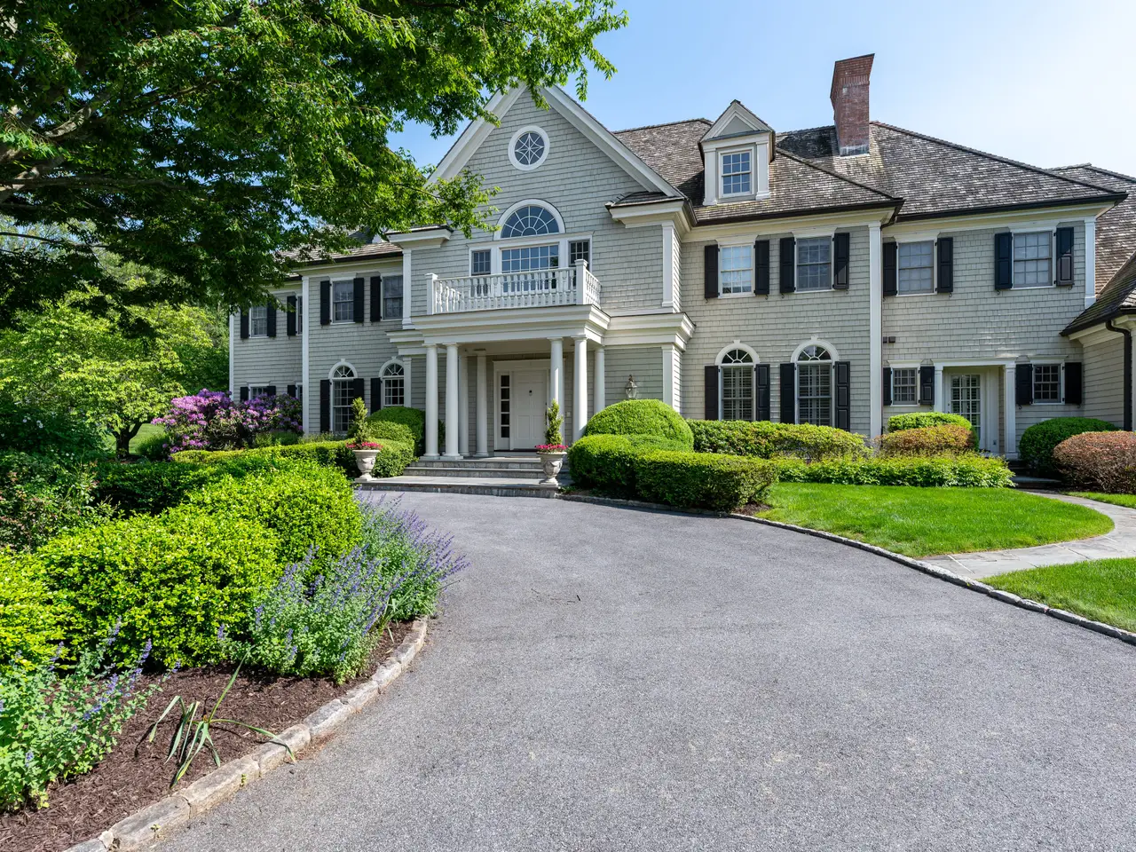 The pinnacle of Modern Colonial elegance in Pound Ridge: timeless classicism elevated to a grand scale, featuring spacious rooms, prestige amenities and luxury finishes crafted for contemporary comfort. Set on 3.7 acres on exclusive Great Hill Farms Road, its minutes from both Bedford Village and Stamford and an hour to Manhattan. Sunlight streams through the double-height entry, illuminating marble floors, custom paneling, and striking contemporary chandelier. The formal living room with wood-burning fireplace, exquisite millwork and French doors to a terrace opens to a sunroom wrapped in windows. A large dinging room also offers French doors to the private patio. The chef's kitchen dazzles with dramatic lighting, custom banquette and top-tier Wolf range and Thermador refrigerator, which is open to the family room with a beautiful stone fireplace. Upstairs, the luxurious primary suite boasts twin sets of French doors leading to a balcony, two spa-quality baths, and dual custom dressing rooms. Two additional ensuite bedrooms and two other bedrooms that share a bath complete the upper level The lower level offers everything for full-on recreation: a glass-enclosed gym, cinema room, family room, guest suite, wine cellar and full bar. Outside is a resort style escape offering spectacular landscaping, inviting pool and charming pool house and bocce court offering relaxation and recreation. This Pound Ridge paradise, with easy access to the Merritt and 684, is a rare fusion of heritage home and private luxury resort.