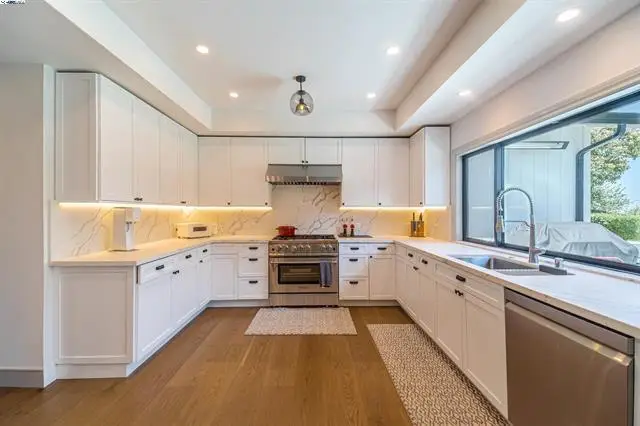 Welcome to this stunning home in Belmont Heights, the most desirable neighborhood with flat lot and bay view, fully renovated home. Thoughtfully remodeled in 2023, this 4-bedroom, 2.5-bathroom residence offers a rare blend of luxury, functionality, and energy efficiency—all in a prime location near Hallmark Park, Waterdog Lake, and scenic hiking trails. Excellent schools. Highlights of the Renovation Include: Structural & Mechanical New Presidential TL roof with new plywood All new gutters New electrical subpanel (PG&E upgrade application in process) New ducts, furnace, and water heater Copper plumbing throughout Security system with 6 fiber-optic cameras and hard drive Anderson energy-efficient windows throughout New sliding door off the kitchen Interior Features Raised living room floor for a seamless, level layout (no more sunken area!) Smooth finish walls throughout Custom built-in shelving in the living room Fully renovated garage with new insulation, drywall, and space for 3 cars New lighting fixtures throughout the home All bathroom walls are sound insulated Garage floor is coated with epoxy coating Pet wash station for added convenience Kitchen with raised ceilings, all-new high-end appliances, and modern finishes Master bathroom with heated floors for ultimate comfort