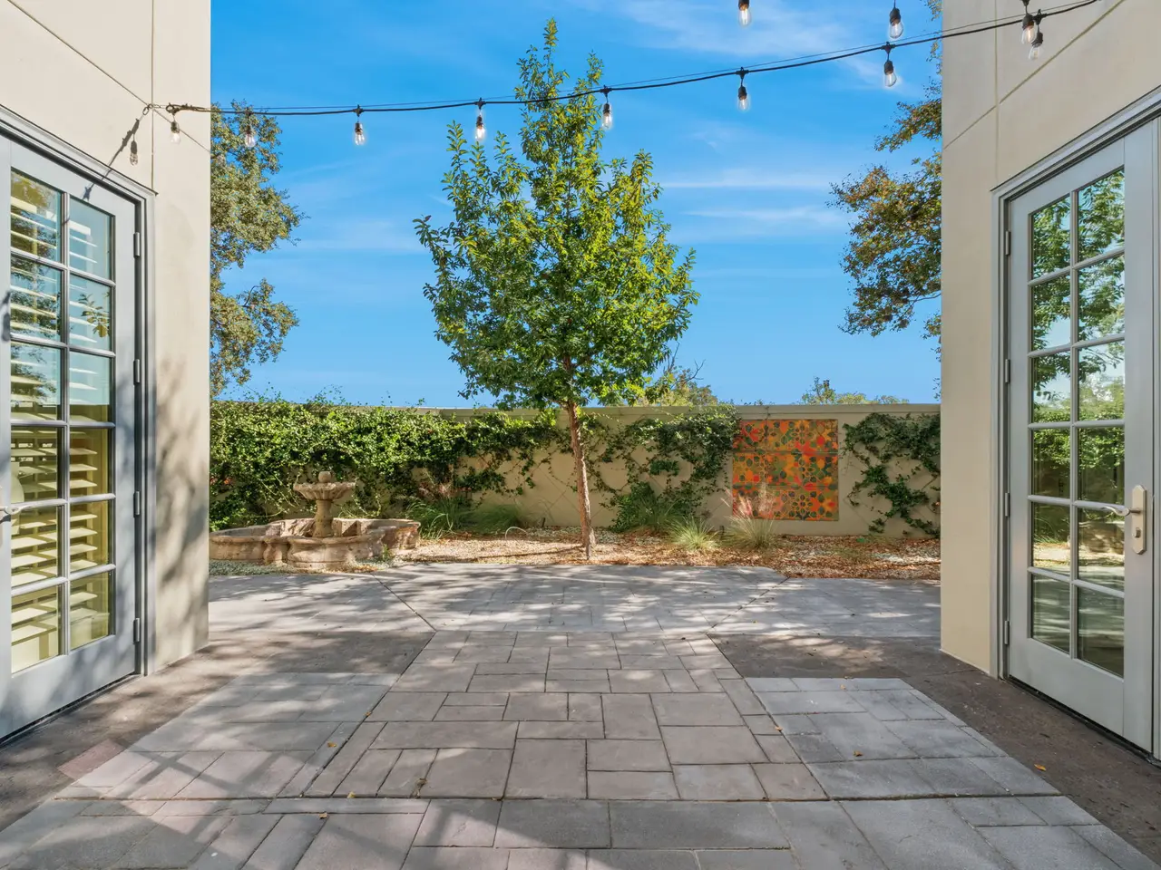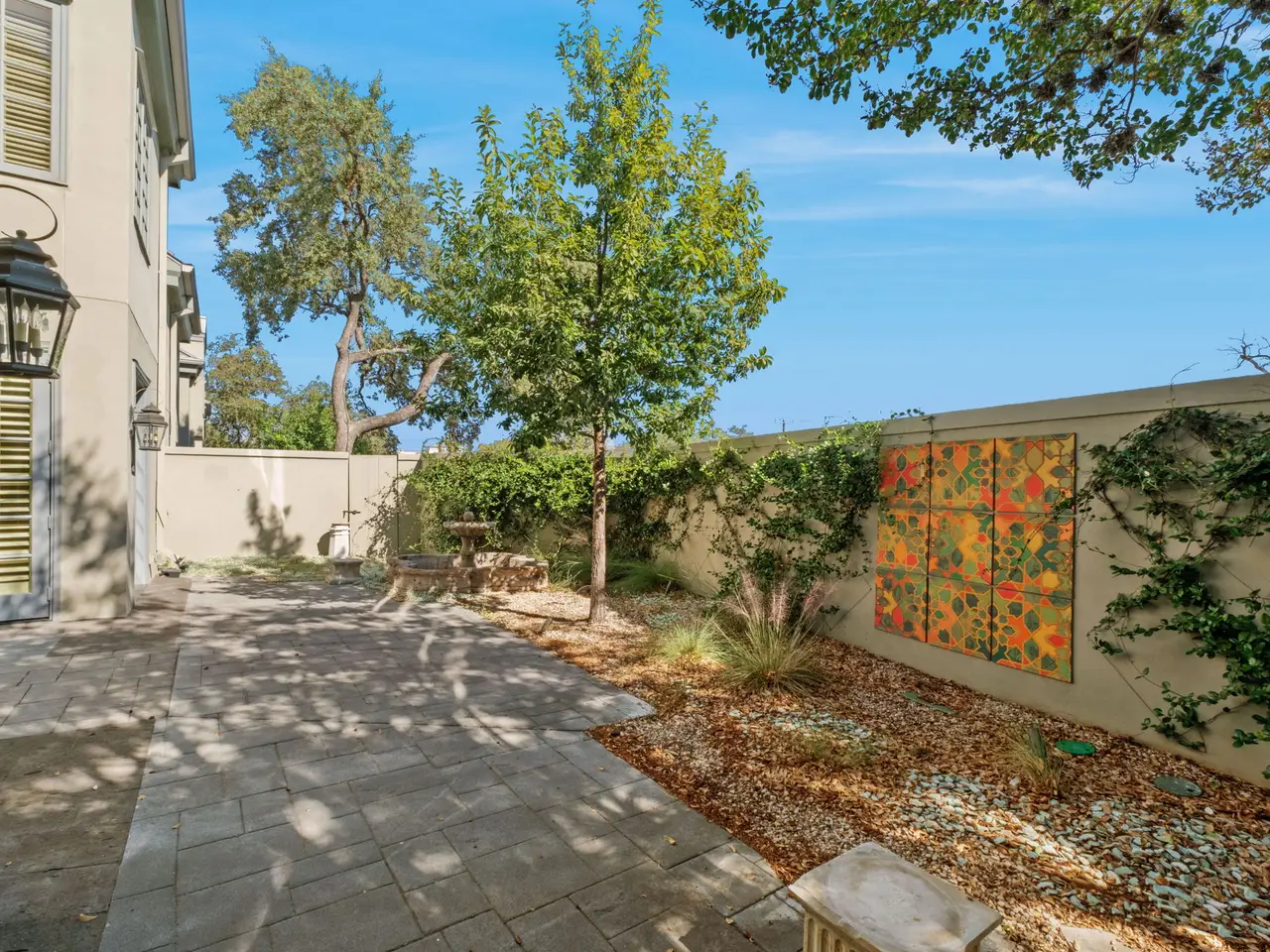 Private walled patio with water feature