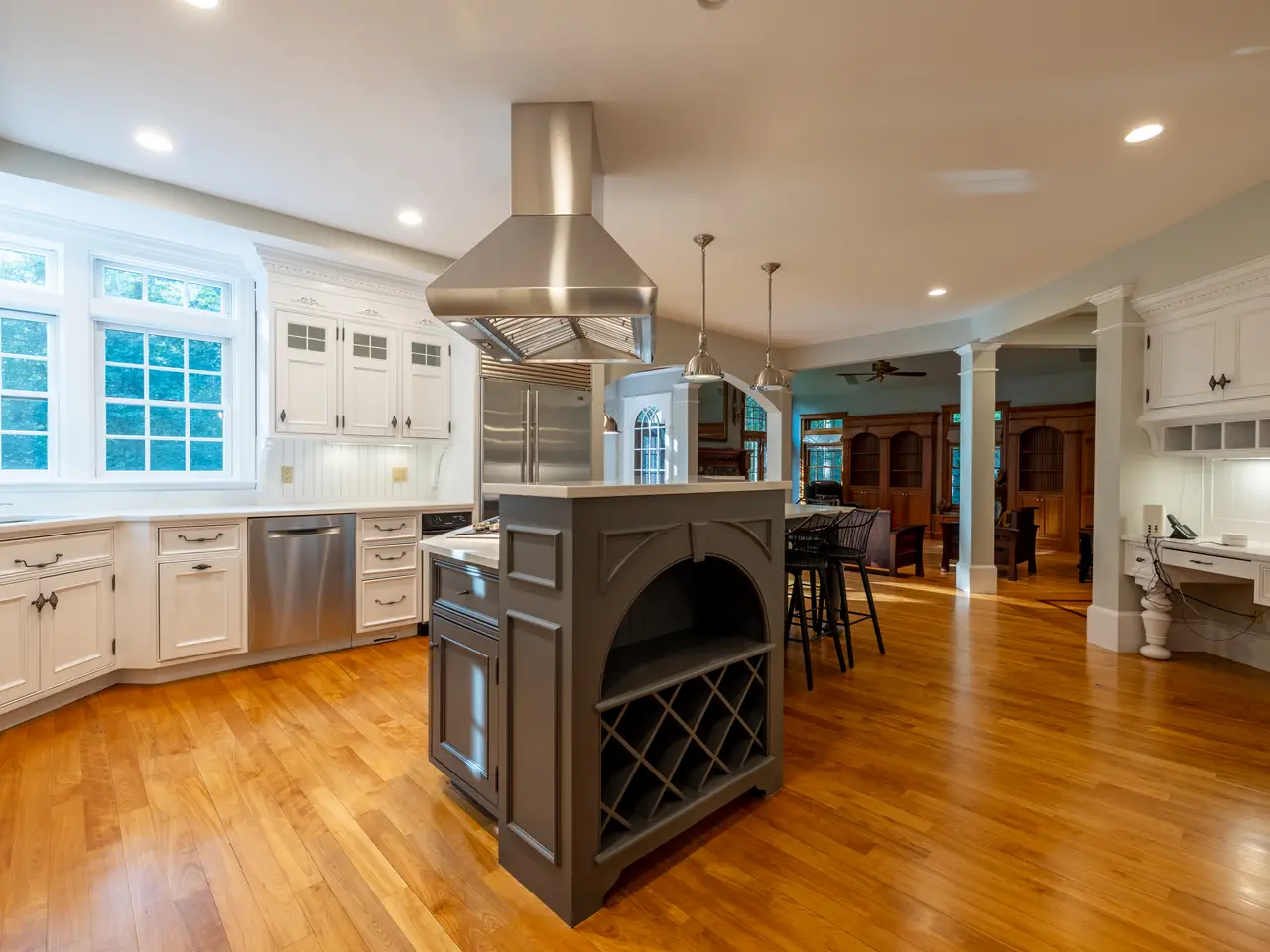 SPECTACULAR NEW KITCHEN...You could not build this home for this price! Perfectly located near both the Pike School and Phillip's Academy. This meticulously detailed home boasts 5 Beds, 6.5 Baths, private deck, 3 car garage & ample parking all on a 3+ acre lot. Step into the lovely open foyer with curved staircase, marble & hardwood flooring & the sun-drenched 1st floor, which has a formal living rm, dining rm, office/den, mudroom, newer 1st Fl. En-Suite Bedroom & the sunken Family Rm w/soaring ceilings, built-ins & a river stone fireplace. The heart of the home is the spectacular, newly updated kitchen featuring custom cabinetry, quartz countertops, high-end stainless steel appliances, a spacious center island, and a walk-in pantry. Thoughtfully designed for both everyday living and elegant entertaining. The mid-level primary En-Suite stands out with its vaulted ceilings & stunning bath. 2 spacious bedrooms and 1 En-Suite on Fl. 2 with 2 bonus rooms on Fl. 3.