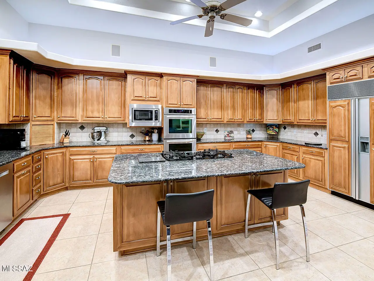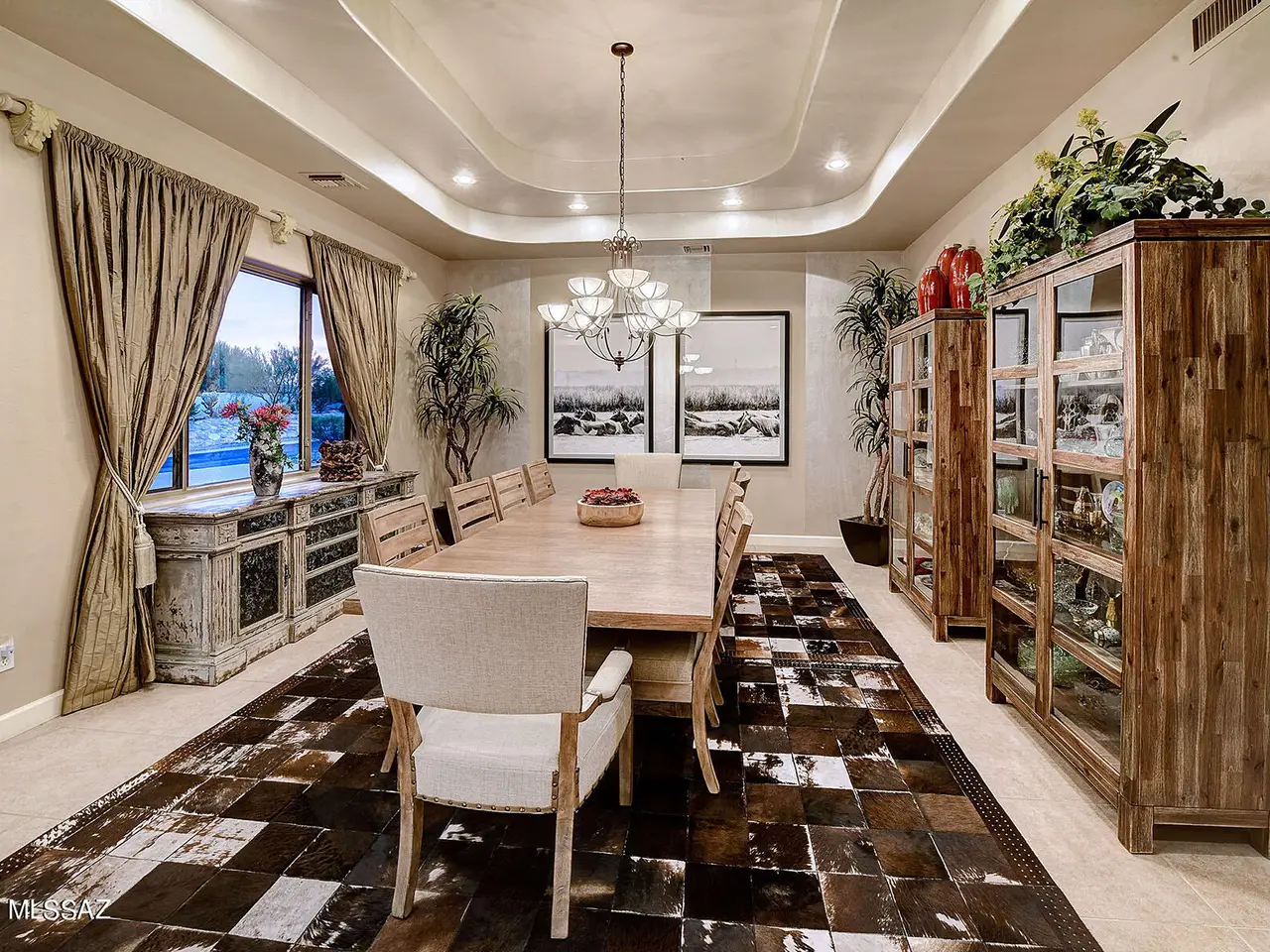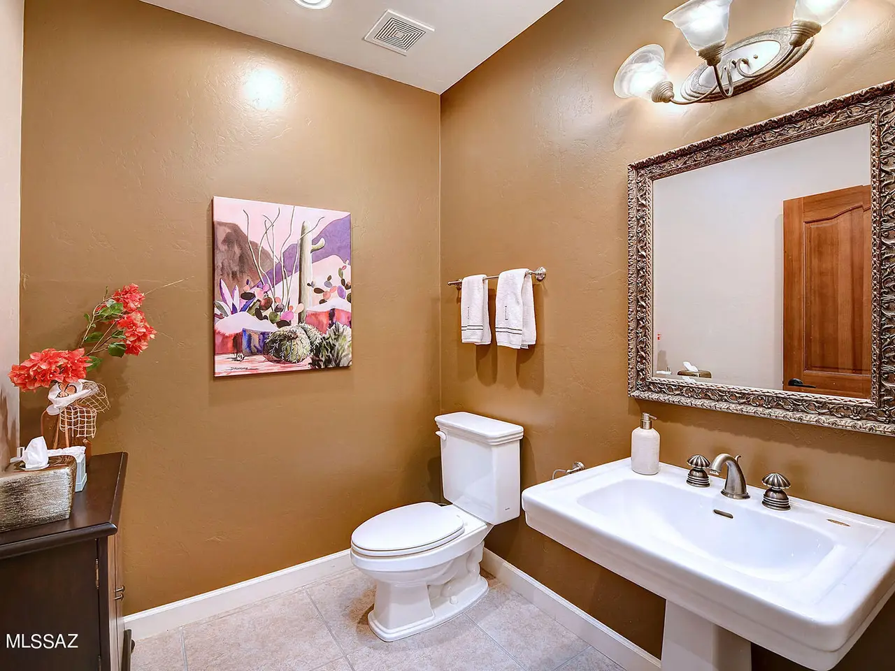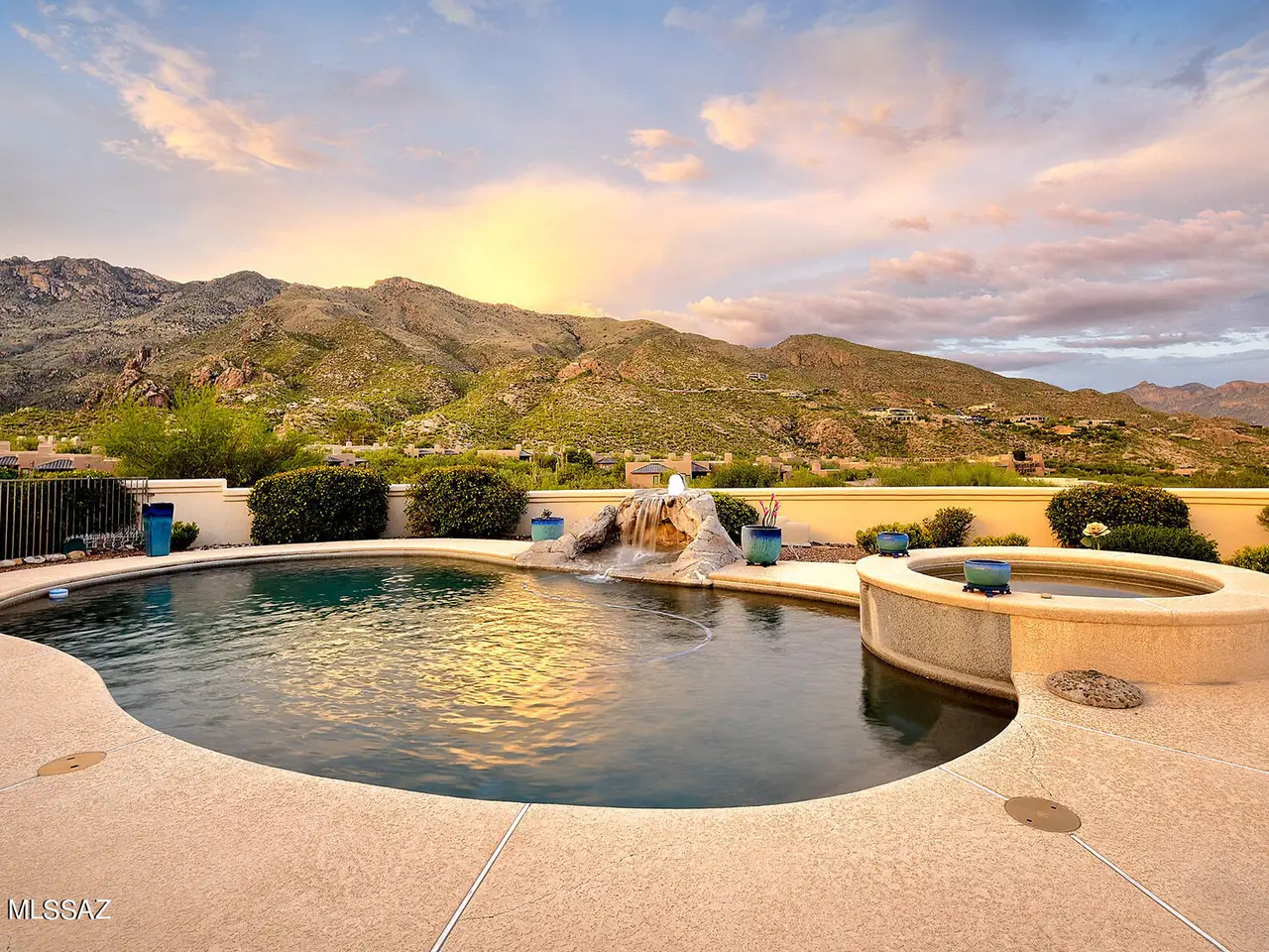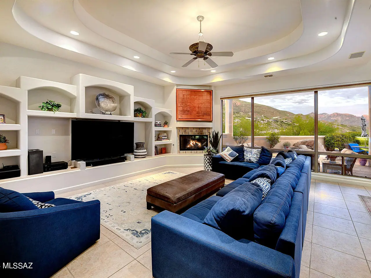 Stunning Mediterranean/contemporary in prestigious, gated Miramist at Ventana in the Catalina Foothills high above Tucson. Located on a cul-de-sac on a 1.45 acre hilltop lot, this 5,735 sq. ft., 5-bedroom, 5 1/2-bath home offers breathtaking views . . . picture windows focus on the center of Ventana Canyon itself, with views from the Catalina to the Rincon Mountains, of Sabino Canyon and city light views of Tucson. With no interior steps, enter into living room with soaring ceilings, walls of windows, formal dining room, fireplace and wet bar, leading into expansive family room/gourmet kitchen with fireplace, kitchen island granite counters and stainless steel appliances. Gracious primary suite is 17'7'' x 31'11'' with fireplace, dual vanities, generous primary closet and spa tub.