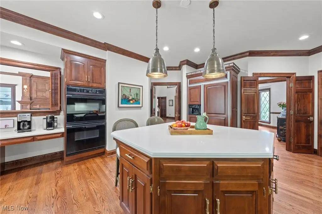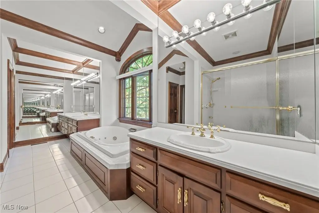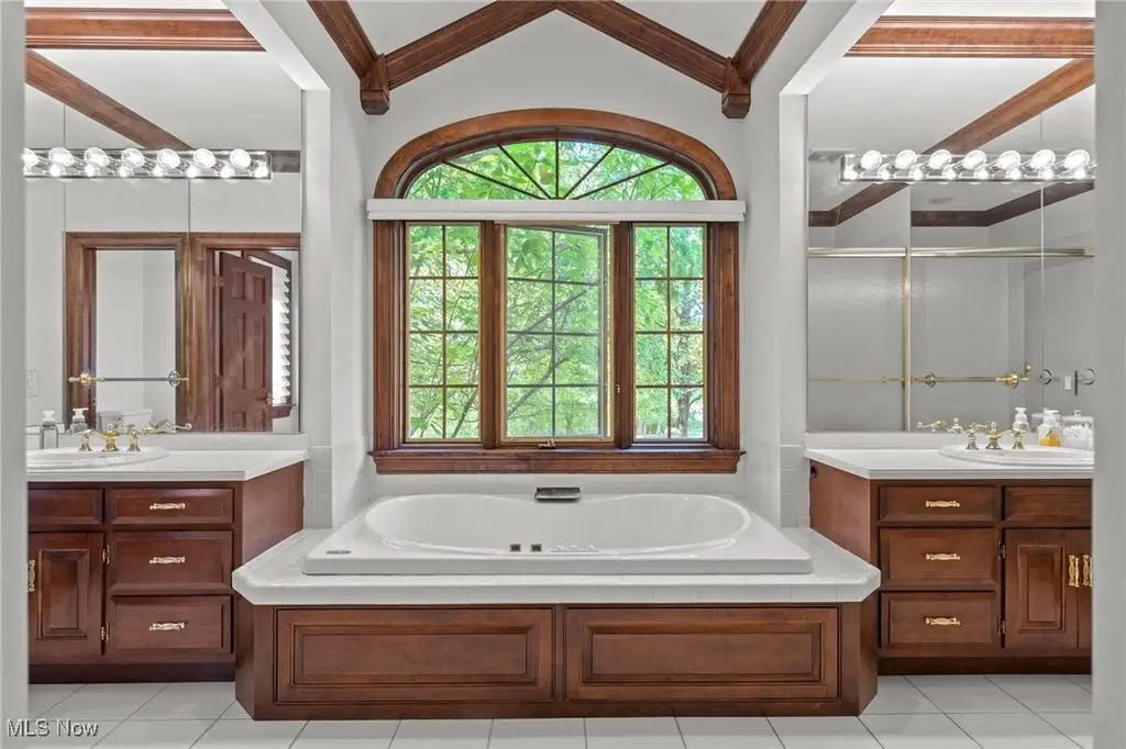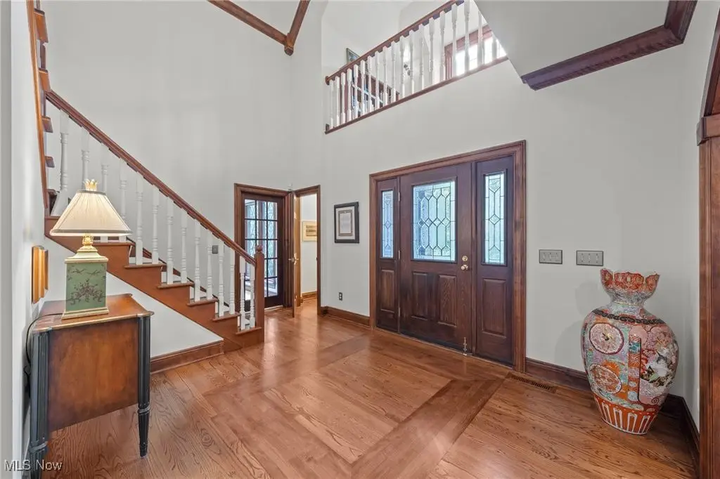 This beautiful English Tudor country house is located on a sought after quiet cul de sac in the heart of the Chagrin Valley. A long private driveway with circular motor court sets the stage for this gracious home located on 3+ park like acres. As one enters the foyer you will immediately notice the incredible woodwork, crown moldings, and gorgeous hardwood floors. This home is designed for entertaining and offers gracious formal spaces coupled with an exceptional floor plan. A grand formal dining room and private library with a built-in credenza flank the foyer. The incredible two story great room features a handsome walnut fireplace, vaulted ceiling, built-in wet bar, and a storybook window overlooking the backyard. The exceptional gourmet kitchen has a center-island, custom cherry cabinetry, Corian countertops, walk-in pantry, and glass walled octagonal breakfast room. In addition to all of this is the luxurious owner's suite with fireplace, two walk-in closets, and a lovely glamour bathroom. The expansive second floor is accessed by a front and rear staircase. Here you will find three gracious bedrooms serviced by two full bathrooms and a huge bonus room with an additional bathroom. Additional highlights of this home include a charming screened in porch, additional den on the first floor, and a 4+car garage. There is even a whole house back up generator. This truly special home awaits its new owner.