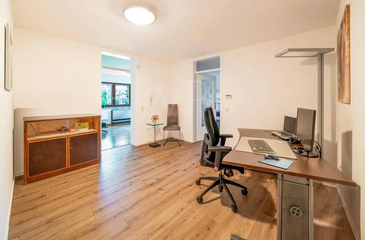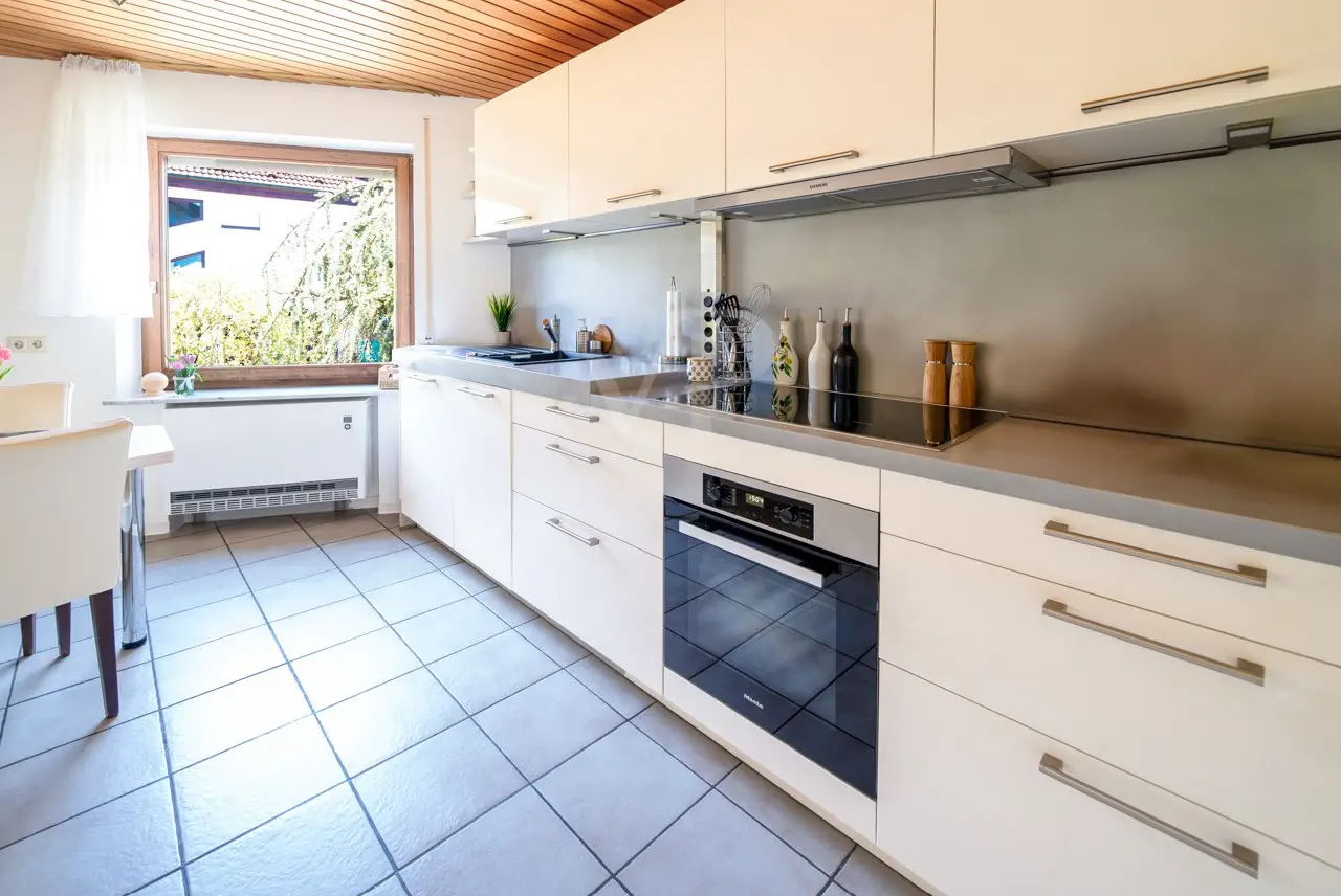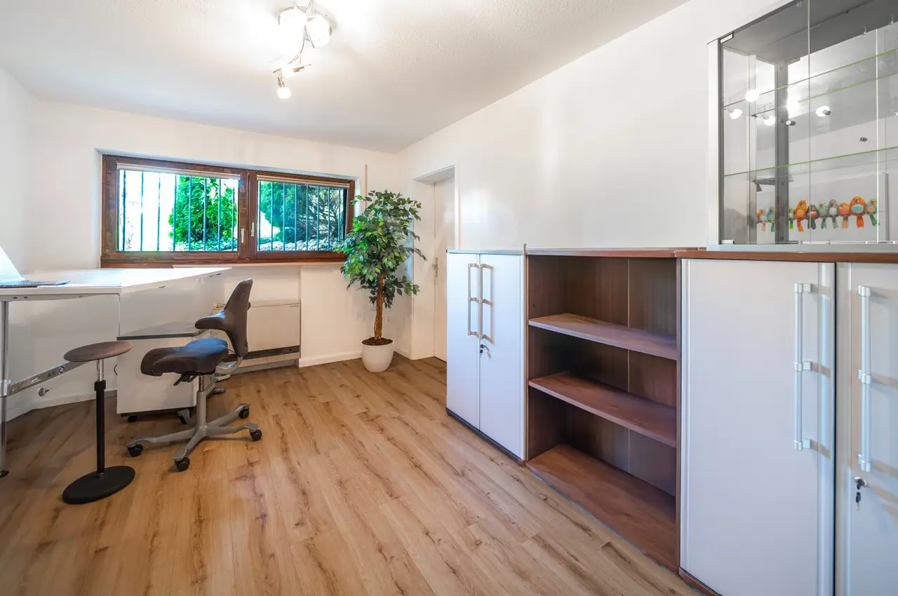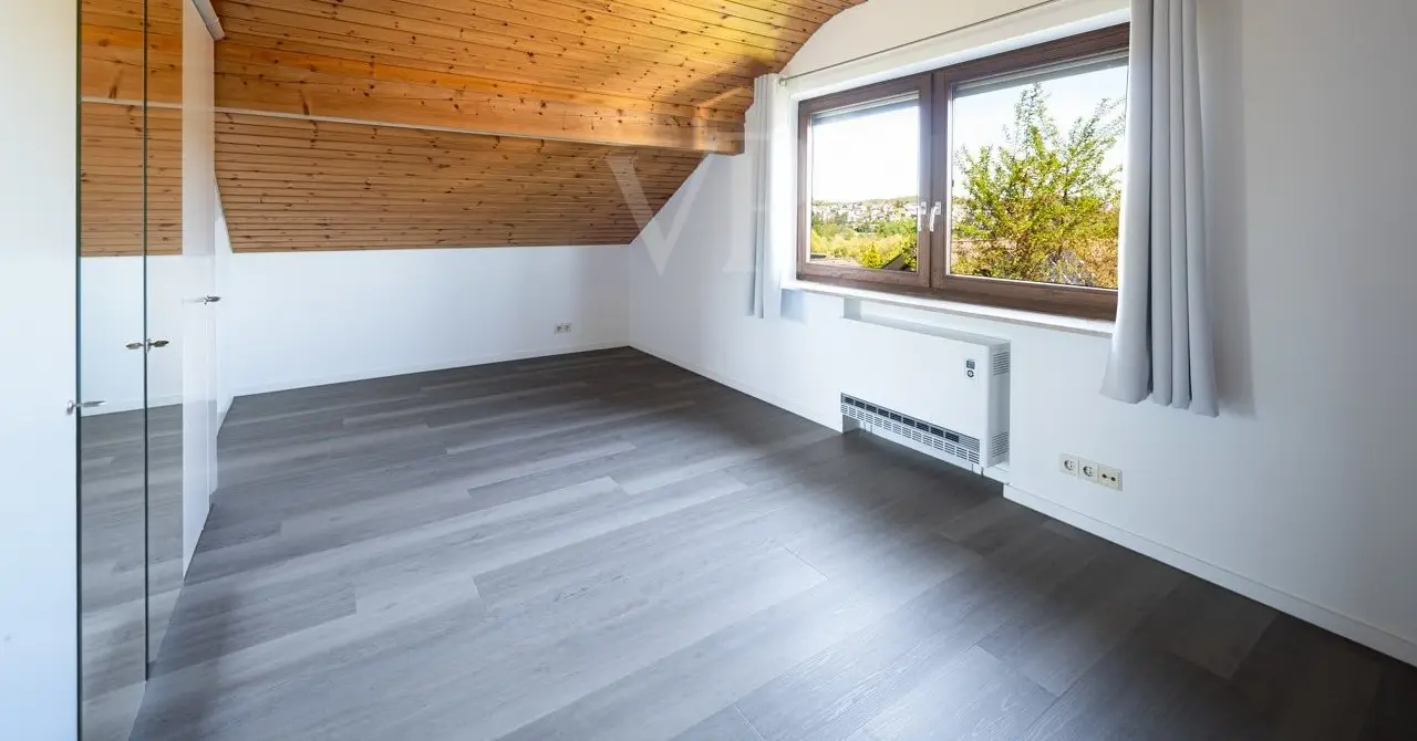 For sale is a modernized two-family house, which was built in 1987 in solid construction (Calinoor masonry 30 cm). The house is situated on a plot of approx. 490 m² on a slight slope in a traffic-calmed cul-de-sac/play street. The location on the outskirts of the village, surrounded by meadows and fields, is ideal for families or nature lovers and offers an excellent quality of living in a charming and peaceful environment. The two-family house impresses with its generous space and high-quality furnishings. The property has been continuously modernized and renovated and presents itself in an excellent and very well-kept condition with upscale furnishings. The high-quality materials underline the character of this special two-family house. The most important modernizations include the installation of a new hot water storage tank in 2024 and the replacement of the electric radiators on the ground floor and attic (in new storage heaters from Stiebel-Eltron) in 2022. The renovation of the windows began in 2021 and was completed in 2024. Most of the windows were fitted with double glazing with heat-insulating glazing and sound insulation, which ensures a pleasantly quiet atmosphere and good insulation. The window frames themselves are made of high-quality Meranti wood. The roof windows are fitted with triple glazing and an electric drive. All these activities round off the modernization measures perfectly. The upscale furnishings of the property, which are reflected in the materials used and the modern technical installations, deserve special mention. Furthermore, high-quality fly screens have been fitted to all balcony doors and some windows. Two additional terraces offer an ideal space and further retreats for relaxation and outdoor leisure activities. The total living space of approx. 286 m² is distributed over a total of eight rooms, including four bedrooms and three bathrooms. The room layout allows the property to be used as a two-family house with a granny apartment or the building can be divided into three potential and separate residential units. The spacious layout of the rooms offers a variety of uses for families or as a multi-generational home. On the first floor, partial underfloor heating ensures a pleasant indoor climate and a tiled stove guarantees a particularly pleasant atmosphere and provides you with cozy additional warmth. On the top floor, there is also a HASE wood-burning stove in the living and dining area, which guarantees cozy hours in front of the fire. Heating is provided by a modern, energy-efficient electric heating system, which ensures effective heating with new storage heaters from Stiebel-Eltron from 2022. A photovoltaic system with an output of 6 kW supports the ecological energy supply of the house and thus reduces the ancillary costs. The fenced plot and outdoor facilities include a small garden with a rainwater storage tank and garden shed, as well as two terraces and a high-quality hanging umbrella, which invite you to relax outdoors. A south-facing balcony and a west-facing loggia offer further opportunities to enjoy the sun. A big plus is the double garage and an additional outdoor parking space, which offer plenty of room for all vehicles. Three very large cellar rooms and a laundry room are freely available in the basement of the house. The ground floor apartment and the top floor apartment are each equipped with upscale fitted kitchens for a purchase price of 15,000 euros. The kitchens combine functionality with contemporary design. If you are interested in viewing the property, we will be happy to arrange an appointment to show you this very well-maintained and modernized two-family house.