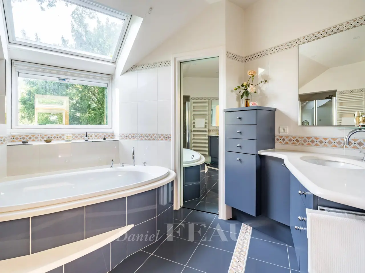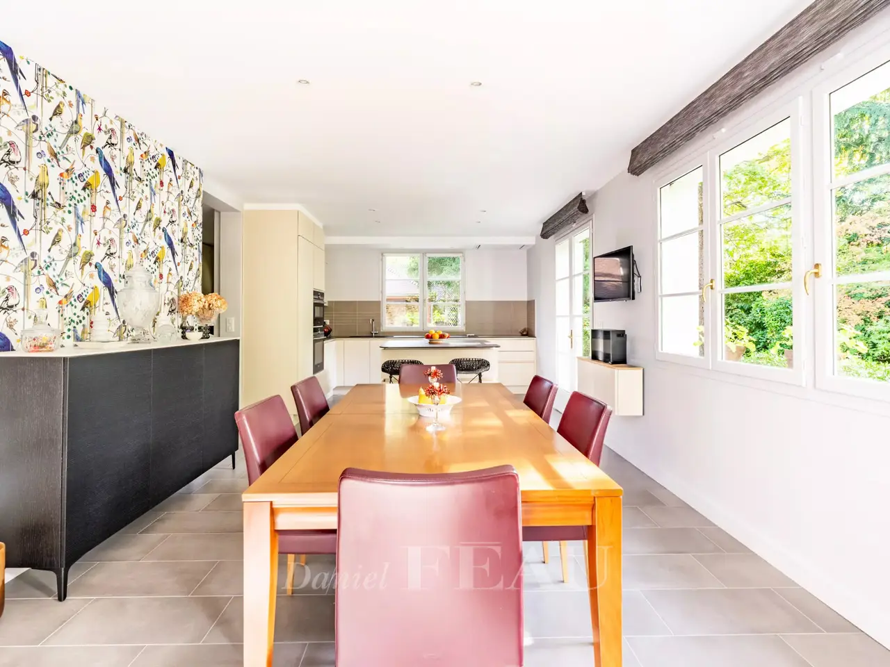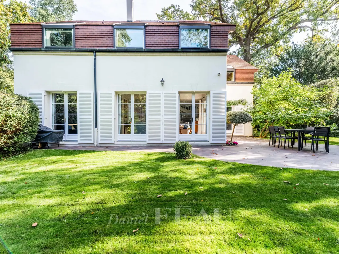 This superb contemporary property hidden from view in a leafy 1100 sqm garden on the edge of the forest offers 306 sqm of floor space and 285 sqm of living space. Set around a glazed central patio, it includes an entry with a cloakroom, a spacious living/reception room opening onto a terrace and the garden, an elegant kitchen with dining facilities, a dining room, and a utility room. It would be possible to create a ground floor bedroom if required. Upstairs a bright landing leads to a master suite with a bathroom and a dressing room, and three further bedrooms with a shower room. The fitted attic could create a spacious bedroom, a study or a recreation room. With a near 26 sqm annex comprising a garage, cycle storage premises and a self-contained apartment. The landscaped garden benefits from terraces and a paved carport. The property is beautifully appointed, benefiting from floor heating, double glazing, solid oak parquet flooring, motorized shutters and an alarm. The roofing has recently been renovated.