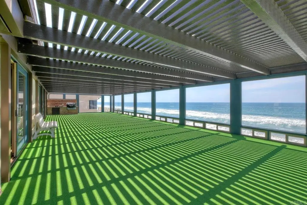 ONCE-IN-A-LIFETIME Beachfront Opportunity-100 Feet of Oceanfront Living! Welcome to your dream estate--pristine beachfront, over 6,700 sq ft of living space & a 16,000+ sq ft lot designed for ultimate relaxation & entertainment. This rare oceanfront property features 7 bedrooms, 6 bathrooms & three full kitchens--one on each level--making it ideal for multi-generational living or large-scale entertaining. Step through the front door & be greeted by a dramatic staircase leading down to the expansive Primary Suite & oversized living room. Just off the main entry, you'll find a private office, guest bedroom & full bath, perfect for guests or a home workspace. The office features stunning ocean views & opens to a large private patio. On this main level, enjoy 3 more bedrooms-one is ensuite, 2 baths, a spacious dining room, sitting area & a full kitchen w/ eat-in bar. From here, step out onto an oversized patio or take the private beach access stairs down to the sand--or simply ride the elevator for convenience. Up a charming winding staircase from the kitchen is a cozy maid's quarters with its own Oceanview deck, providing a peaceful retreat. The 2nd level features the Primary Suite with a private balcony, two separate bathrooms, dual walk-in closets, and a dressing area that opens to an additional outdoor space. The adjacent living room is massive, perfect for family gatherings, and showcases the Pacific Ocean through walls of glass. A second kitchen and wet bar complete this level, with a nearby laundry room for convenience. Head to the beach level & you'll find an entertainer's paradise! This floor boasts a third kitchen, huge bar, shuffleboard table, full bathroom w/ two showers, a fun bunk room & direct access to the beach. Step outside to a sprawling patio, giant turf play area, sandbox w/ a custom wooden pirate ship & your very own private boardwalk with steps leading directly to the sand. Own your own slice of oceanfront paradise!