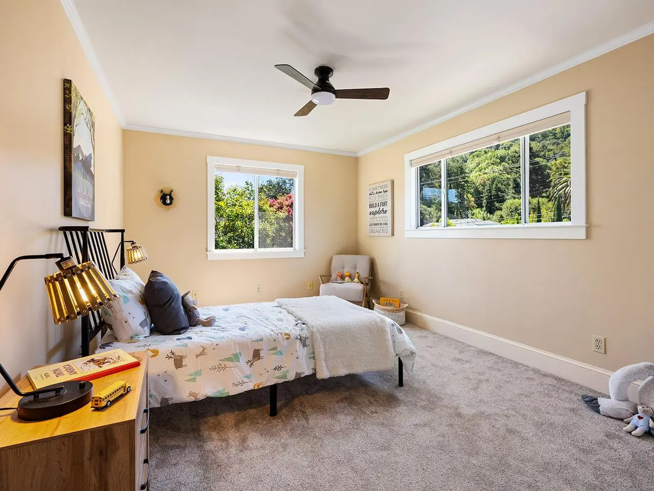 Updated vintage charm, this home was built in 1905 at the end of a cul-de-sac in the flats of San Anselmo. With 4-bedrooms, and 3.5-baths it blends historic character, with thoughtful updates, on a generous 8,300 sq. ft. level lot. A cozy entry room leads into the living and dining areas. The open kitchen and family room are perfect for casual living or party overflow. Expanded over the last 30+ years by the owner, a respected local contractor, it has classic touches with modern conveniences. The main level also features a primary suite, and a bedroom currently used as an office. See floorplan. The expansive yard is both practical and whimsical. Multiple areas invite relaxation and play: a hot tub, side porch for entertaining, concrete pad for basketball hoop, fruit trees, garden areas and more. The large two-car garagewith workshop space, two separate storage rooms, and more, offers endless convenience. (Conversion to an ADU must be checked with building and planning.) In the acclaimed Ross Valley School District, with private school options nearby, this home offers the perfect blend of community, convenience, and character - almost equidistant from downtown San Anselmo and Fairfax along with nearby access to hiking, biking in the stunning Marin outdoors.