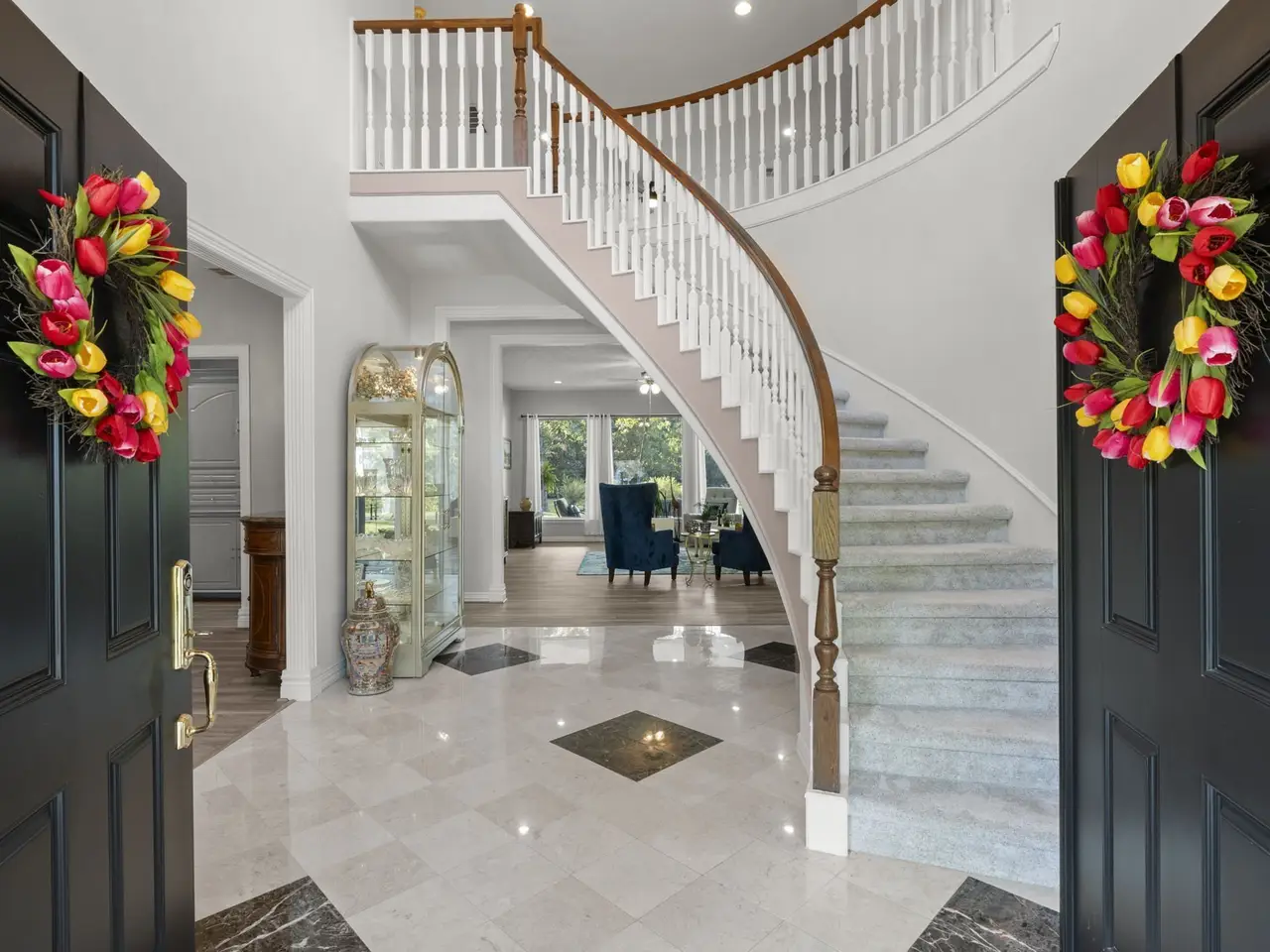 Gorgeous 3.19-acre estate in highly sought-after GATED Crown Oaks, just north of The Woodlands. This expansive property comprises a 5,496 sq ft main residence beautifully updated plus a 797 sq ft renovated garage apartment. Main house features 4 bedrooms and 4.5 baths, including TWO PRIMARY suites on the main level for convenient single-floor living. Completely renovated, chef-inspired kitchen with a large island, quartz and granite countertops, white cabinetry, and new appliances with adjacent hearth room and breakfast room. Generous family room with a wall of windows flooding the space with natural light, complemented by new LVP flooring throughout much of the downstairs. Upstairs includes a large game room and media room, plus two spacious bedrooms with private baths. Renovated upstairs garage apartment: two bedrooms, full kitchen, living room, and bathroom. Fully fenced back yard with a large covered back porch, perfect for entertaining and soaking in the serene 3.19-acre setting.