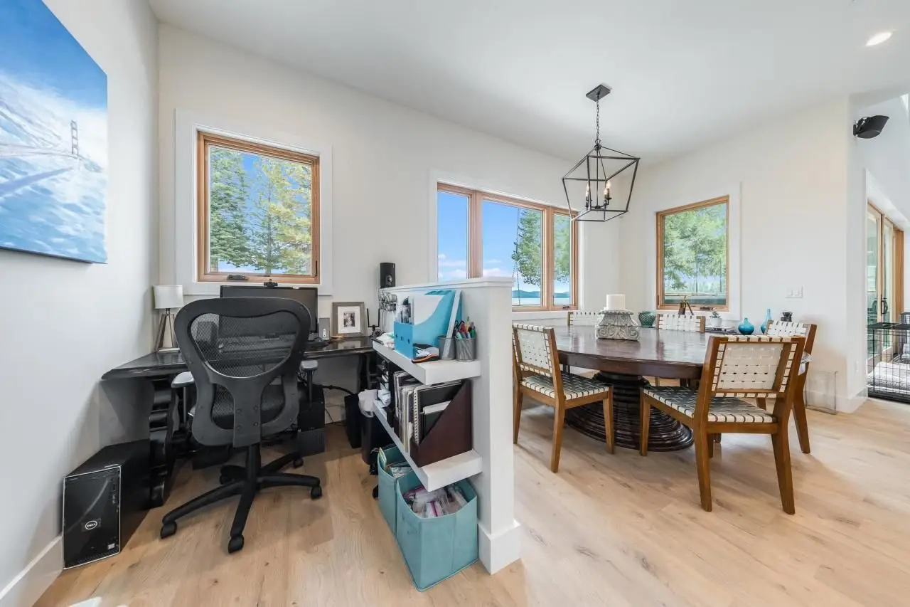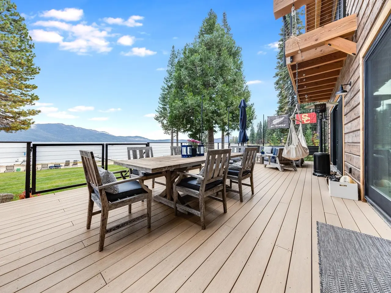 Located on the beautiful shores of Lake Almanor, this stunning lakefront estate offers wonderful modern design blended with tasteful mountain accents. The home sits on almost a half acre of gentle sloping land leading to the waters edge. A full 6 bedroom and 6 and one half baths including the guest house. Main house offers 3000 square feet of living space and boasts 22 foot ceilings with wonderful natural light. Well appointed kitchen would make any top chef proud. Magnifica Porcelain counter tops and Luxury wide vinyl flooring Throughout kitchen and living room. Oversized island allows for plenty of seating for the entire family and friends. Wonderful eat-in breakfast nook overlooking the expansive deck with lake and mountain views. Large family area located behind the living room could be converted to a separate master suite on the main level if so desired. Each bedroom in the main house offers its own private bath. Closet space has been cleverly designed to maximize storage area. Guest house offers a large bunk room downstairs with full bath. Upstairs boasts a full kitchenette along with 2 additional bedrooms and full bath. Oversized garage with 14' door height to accommodate all of the water toys and vehicles. Entire home and guest house offers custom concrete siding for maximum fire retardant and added insulation. Central heat and air conditioning throughout both the house and guest house. Huge lakeside composite deck allows one to soak in the expansive views of Dyer Mountain and the crystal blue Lake Almanor waters. Large lakeside grass area is ready for all the summer activities accompanied by your own sandy beach to the waters edge. Head on down to the custom aluminum floating dock and hit the water with all the summer toys. Two buoys included. Come enjoy year-around living in this magical mountain retreat.