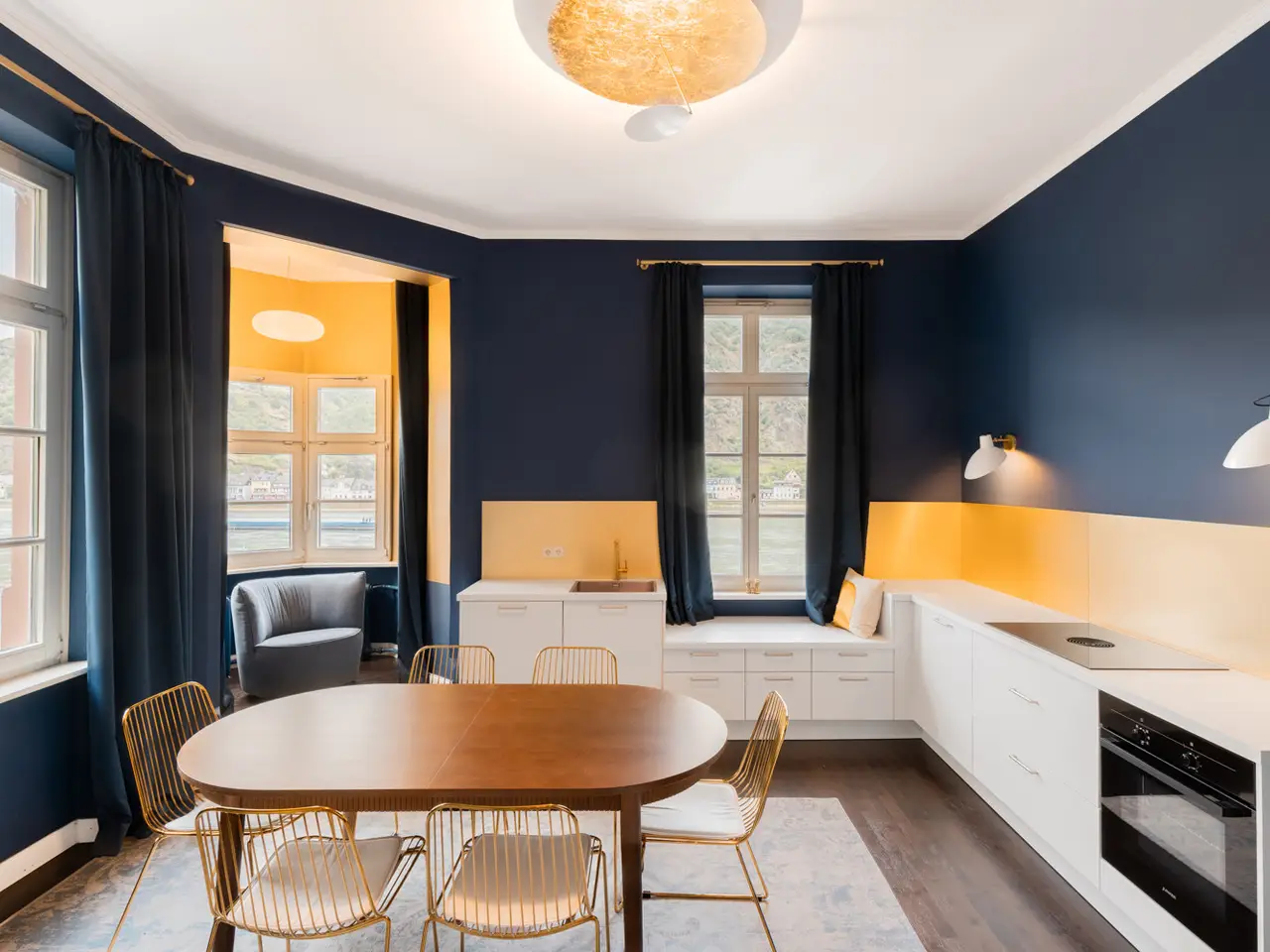 In an incomparable location, protected from flooding and in the first row of the Rhine, this stately property, built in 1892, has a living space of approx. 429 m² on a plot of approx. 2,403 m². From here, an impressive view of the Rhine, the venerable Katz Castle and the legendary Loreley opens up - embedded in the UNESCO World Heritage Upper Middle Rhine Valley, one of the most impressive cultural landscapes in Europe. A symbiosis of history, luxury and modern living comfort - this villa is an architectural masterpiece and an absolute rarity on the real estate market. Whether as a private retreat of exquisite elegance or as a prestigious commercial property - this property opens up a wide range of possible uses. Planning permission has already been granted for use as both a conference venue and an exclusive vacation residence. In addition, the listed status of this property opens up potential tax advantages, for example within the framework of the so-called monument depreciation allowance. A separate information letter is available for detailed information on tax aspects and financing options. The extensive outdoor facilities are particularly noteworthy: spacious terraces are spread over several levels, surrounded by impressive quarry stone walls and framed by majestic trees. This castle-like ambience lends the property an extraordinary aura and makes it a unique place of tranquillity, representation and inspiration. The interior also sets standards: each room has been completely redesigned and individually furnished over the past two years in collaboration with a renowned interior design firm. High-quality materials, exclusive fixtures and fittings and a well thought-out overall concept combine to create an atmosphere of grandiose harmony and timeless elegance. The villa is fully furnished and can be taken over on request, including the inventory, so that immediate, seamless use is guaranteed. The purchase of this property is free of commission for the buyer - the estate agent's commission is paid in full by the vendor.