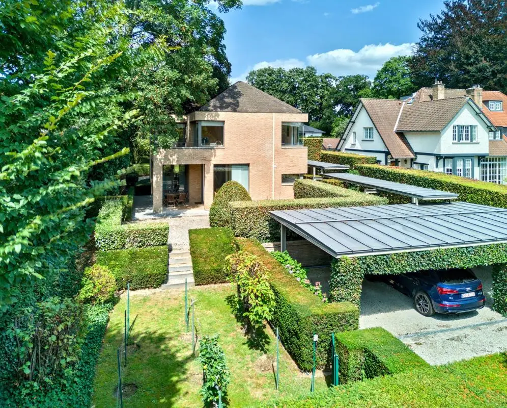 In the immediate vicinity of Stockel, the metro and all amenities, this beautiful contemporary villa, built in 1999 by architect Serra di Migni, enjoys a particularly quiet and unspoilt environment. Set on a superb plot of ± 15 ares 71, facing south-west and not overlooked, it offers a living area of approximately 365 square meters. It offers spacious and bright reception rooms, a fully equipped kitchen, five bedrooms and three bathrooms. A carport for three cars completes the property. EPC: D- A bright and elegant villa, perfectly integrated into a green setting, close to amenities.