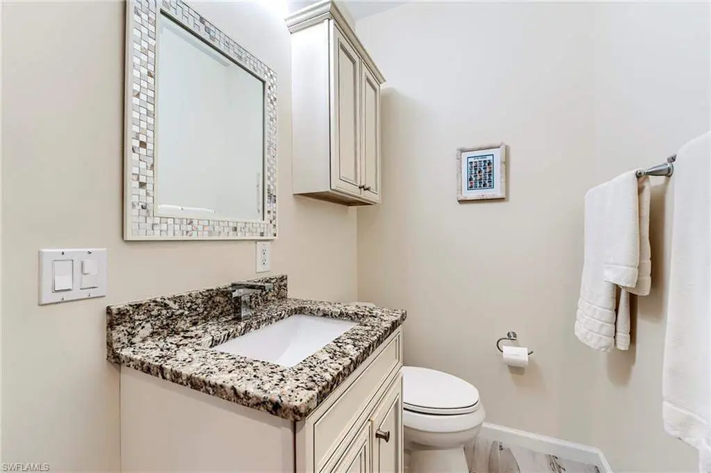 SPECTACULAR!! Beautifully and meticulously updated Kingfisher model in the coveted Mahogany Cove neighborhood within Shadow Wood. Very private and quiet lot facing a wooded preserve. 2 updated full-baths on the first floor with a third for guests upstairs. Fully updated kitchen, new roof, new lanai cage, brand new AC unit. Whether enjoying a quiet retreat for two or entertaining family and friends, this 3BR+Den/3BA has it all. The HOA takes care of most maintenance issues, so all you have to do is enjoy! Fiber to the home provides lightning fast internet and television. Member owned Shadow Wood Country Club offers 54 holes of championship golf, 2 clubhouses, 8 HarTru tennis, bocce, outdoor fire pits, casual dining, including pizza oven, sports bar & sushi bar. Access to private beach club, fitness center & spa, 7 pickleball courts and private restaurant. Coming 2025/26 season: New Lifestyle Center with 2 resort style pools with zero-depth entry, lap lanes and dedicated kids pool, poolside restaurant & bar, 6 indoor pickleball courts, new racquets pro shop and a grab & go cafe. Great location close to shopping, airport, beaches and much, much more.