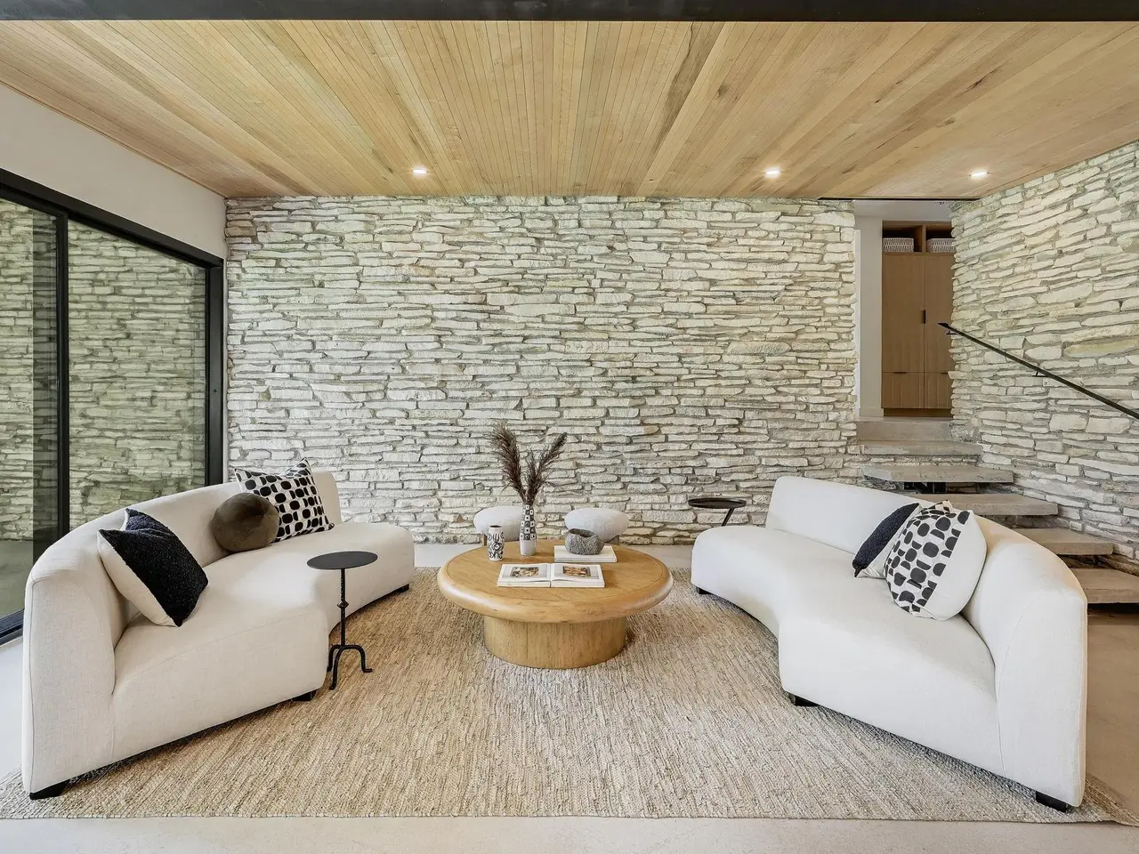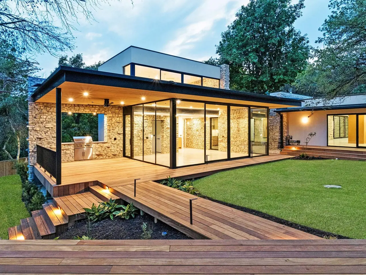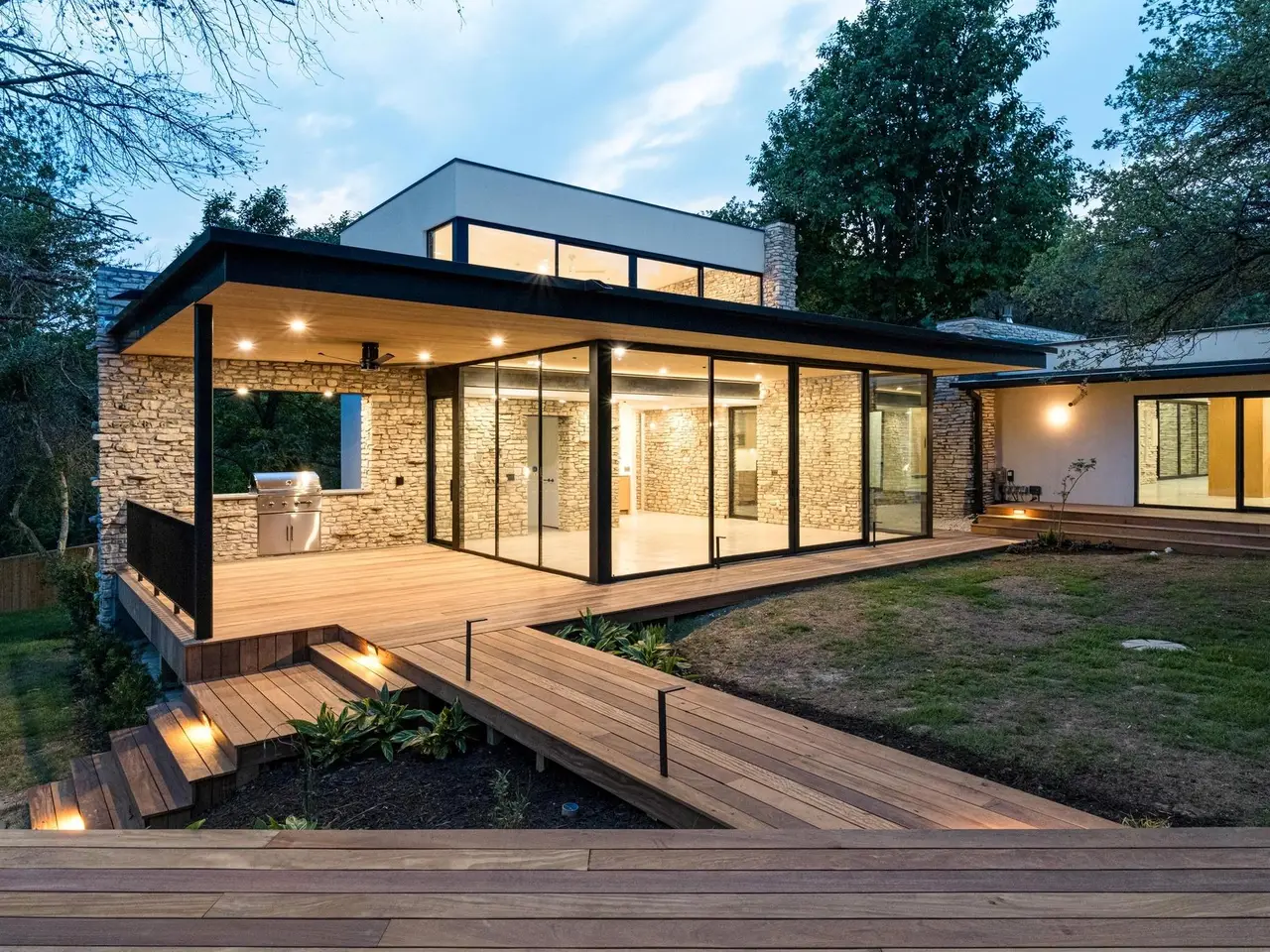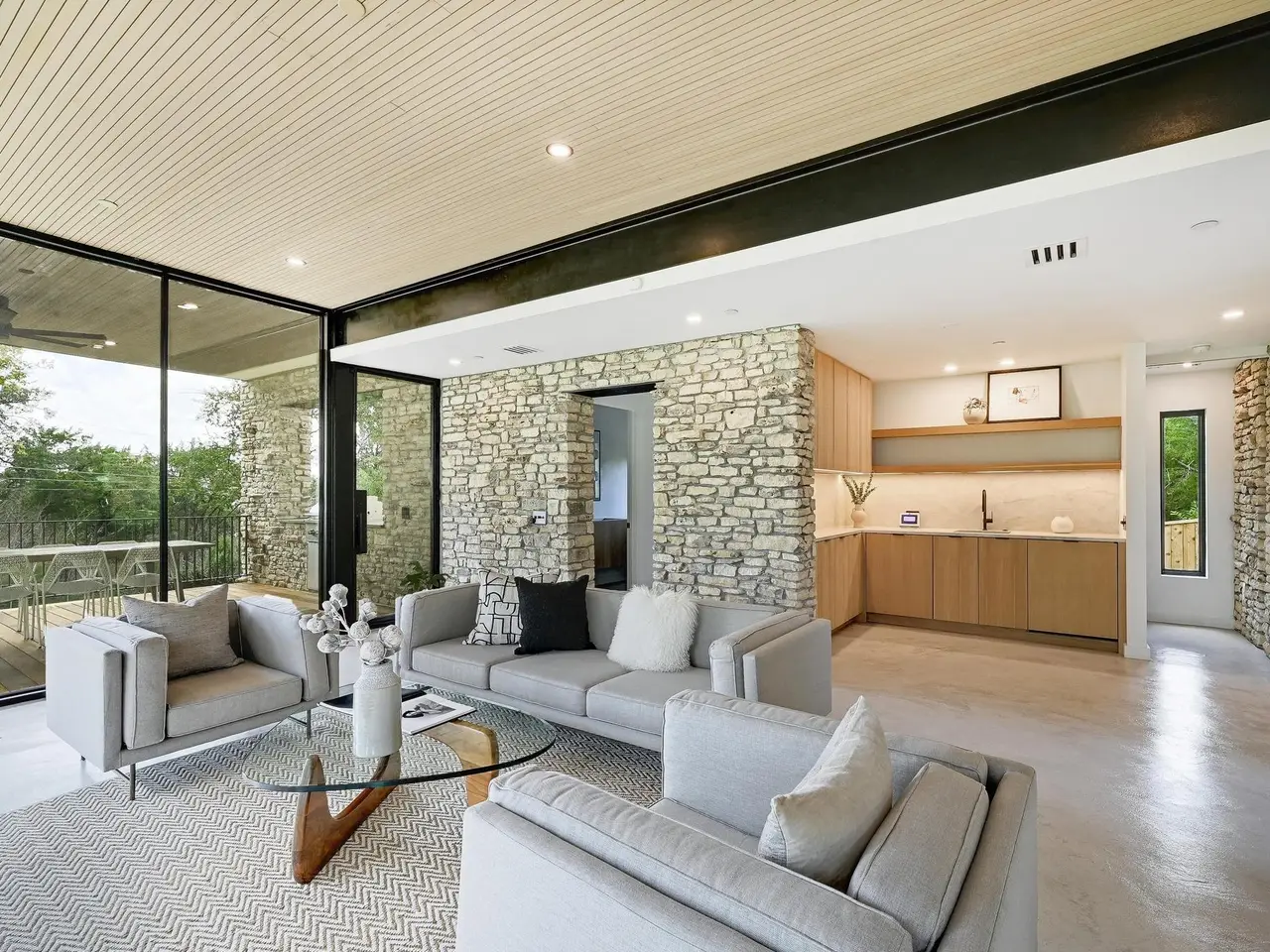 Tucked beneath a canopy of mature trees, 201 Redbud Trail invites you to experience the timeless charm of an expertly restored mid-century home, complete with a detached guest casita and pool house. Glass walls and expansive sliding doors open the home to its lush surroundings, blurring the boundary between indoors and out in the heart of central Westlake. From the moment you arrive, the architecture nods to another era -- but the updates are thoroughly modern, with elevated finishes, fixtures, and functionality throughout. The main residence features light-filled living spaces that open to patios and a pool courtyard, while the detached guest quarters include a fully outfitted outdoor kitchen -- ideal for entertaining or accommodating guests with privacy. This home offers the rare combination of architectural integrity, modern comfort, and natural seclusion -- all within Eanes ISD and just a few miles from downtown Austin and retail and dining in Westlake.