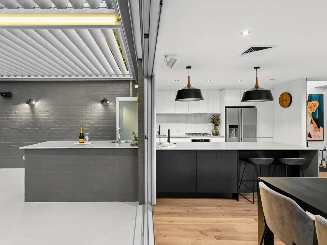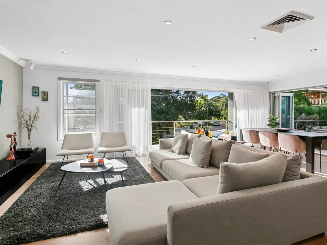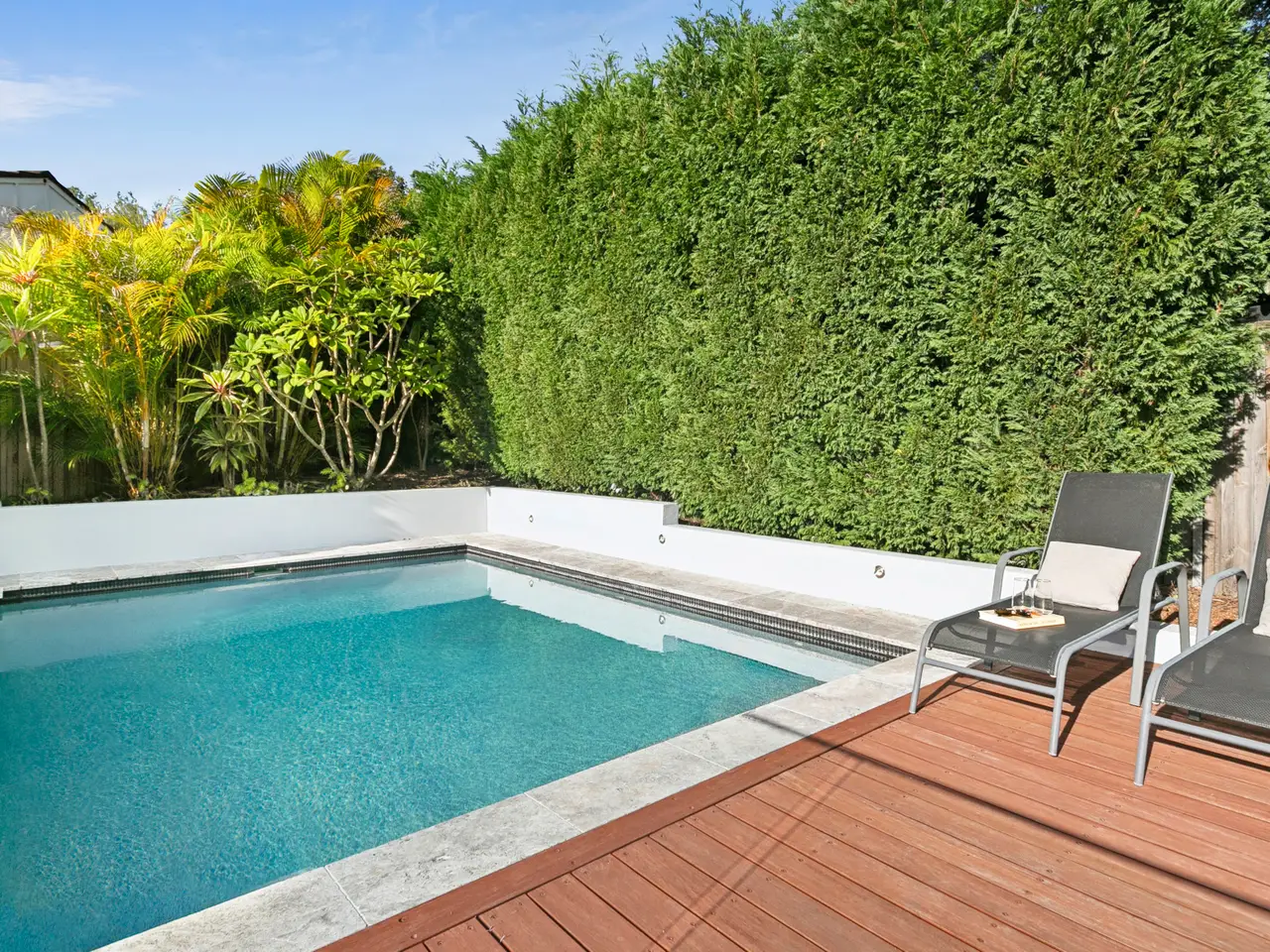 Beautifully designed with fresh coastal flair, this spacious four-bedroom home offers seamless indoor/outdoor living in the peaceful, leafy setting of Wheeler Heights. Highlighting space, natural light and airflow, the spacious living and dining area flows effortlessly onto a sun-drenched entertainer's terrace, showcasing picturesque leafy views and a custom wood-fired pizza oven. The outdoor oasis extends to a heated sparkling swimming pool, neatly landscaped gardens, and a detached studio, creating a perfect space for family life. This serene location is nestled among nature, with Narrabeen Lake and Cromer Golf Club nearby, and just a short walk to local schools, shops, and cafes. Ideally positioned, it's also moments from shopping centres, surf beaches, and city transport. - Immaculate single-level family home in leafy Wheeler Heights enclave - Bright and airy open-plan living and dining, slow-combustion fireplace - Four internal Bose speakers, two external - Fluid flow between indoor and outdoor spaces, ideal for entertaining - West, north and east-facing terraces offer all-day sun and leafy outlooks - Large vergola-covered terrace with wet bar, wood-fired pizza oven - Sparkling heated swimming pool sits amidst landscaped gardens, level lawns - Detached studio with full bathroom, ideal as a home office or teen retreat - Modern gas kitchen with large stone island, Vintec wine fridge - Built-in robes in two bedrooms, master with shower en-suite - Modern bathroom with black fixtures, combine bath/shower - Ducted air-conditioning, ample internal storage, video security - Oversized double garage with extensive storage, plus driveway parking