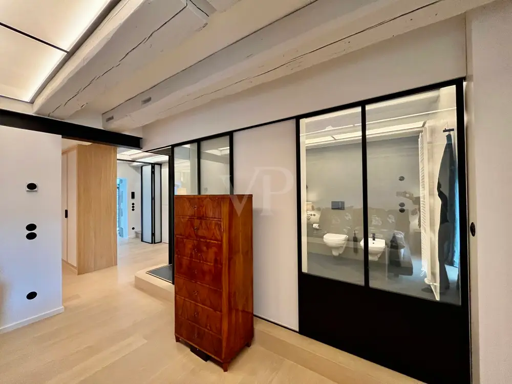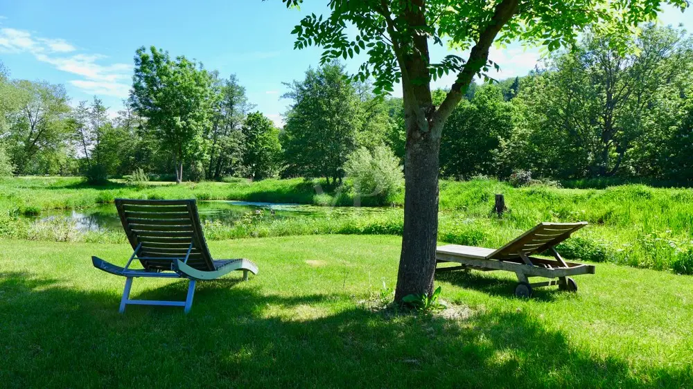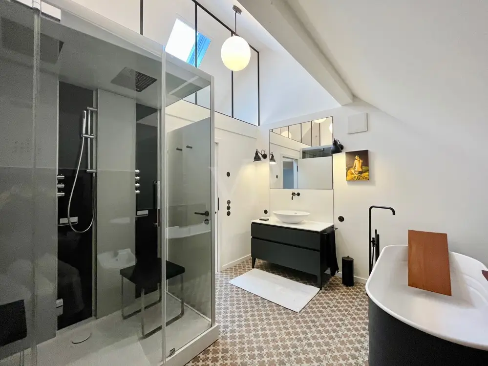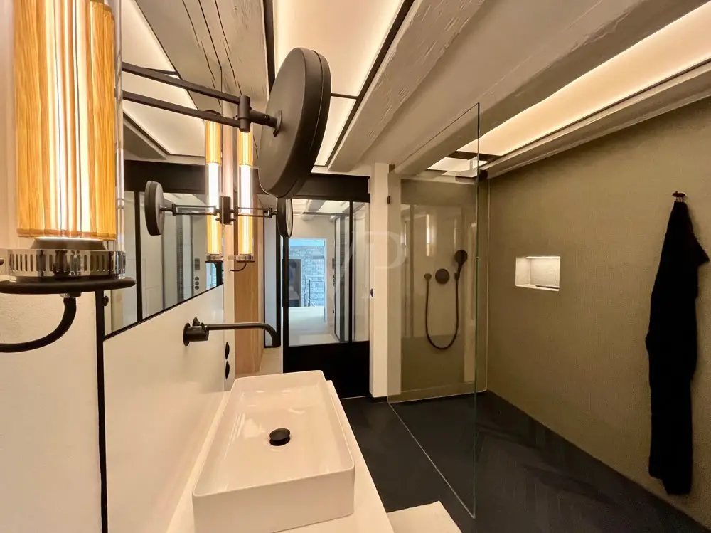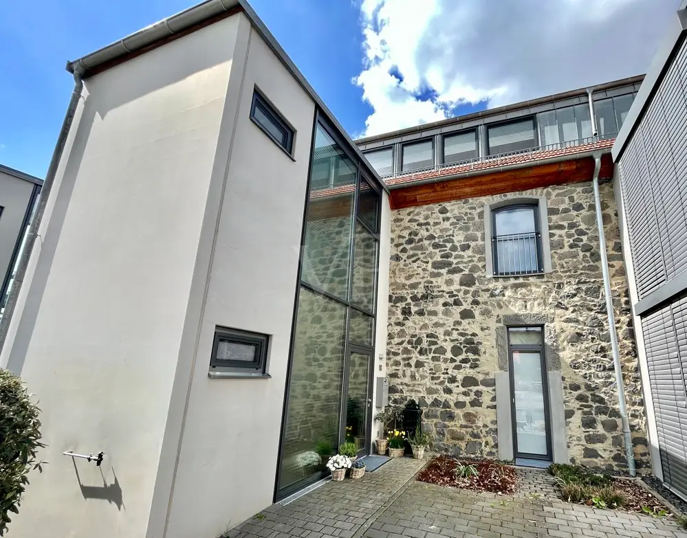 This house has everything - the light and the shadow, the transparency and the privacy, the vision and the security. For the owner, working with the interior designer was a real stroke of luck. What was initially supposed to be a manageable modernization became, through the interaction of both creative minds, a project that extends across all floors. This led to a rearrangement of the rooms as a tailor-made solution. The starting point is the distinctive cross vault on the ground floor from the 18th century. This architectural detail is the focal point for the spacious kitchen, the dining area and the fireplace space. Powerful color accents were used here in the furniture and art. Transparency through glass doors, which can be given a satin finish in the bathroom area if desired, gives the house a French lightness. The lighting concept runs through all floors: in addition to the ceiling lighting, which is particularly spectacularly embedded between the old oak beams on the upper floor, we mainly find wall lights. Each one is hand-picked, some from Paris, some unique pieces with collector value. All materials were processed to the highest standard, whether the oak floors on the upper and attic floors, the built-in furniture on the upper floor, the tiles, the doors, the lights...Rarely can one speak of perfection, but here it has been achieved. Best of - an irresistibly beautiful house.