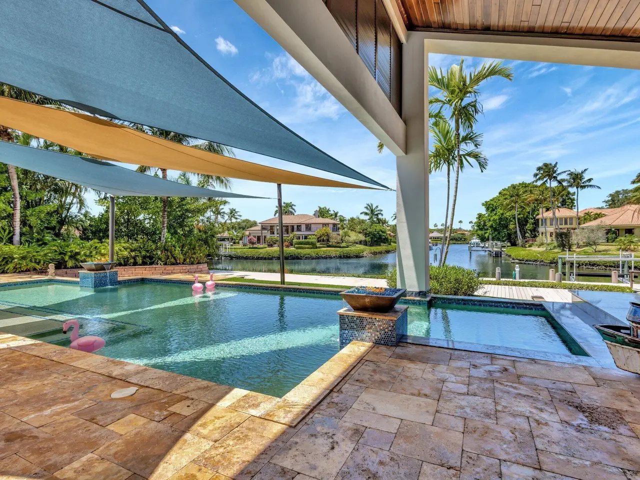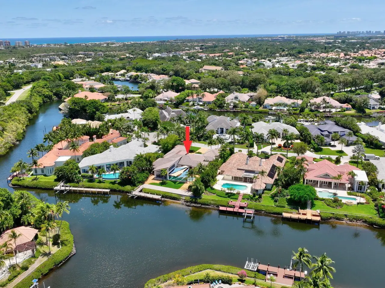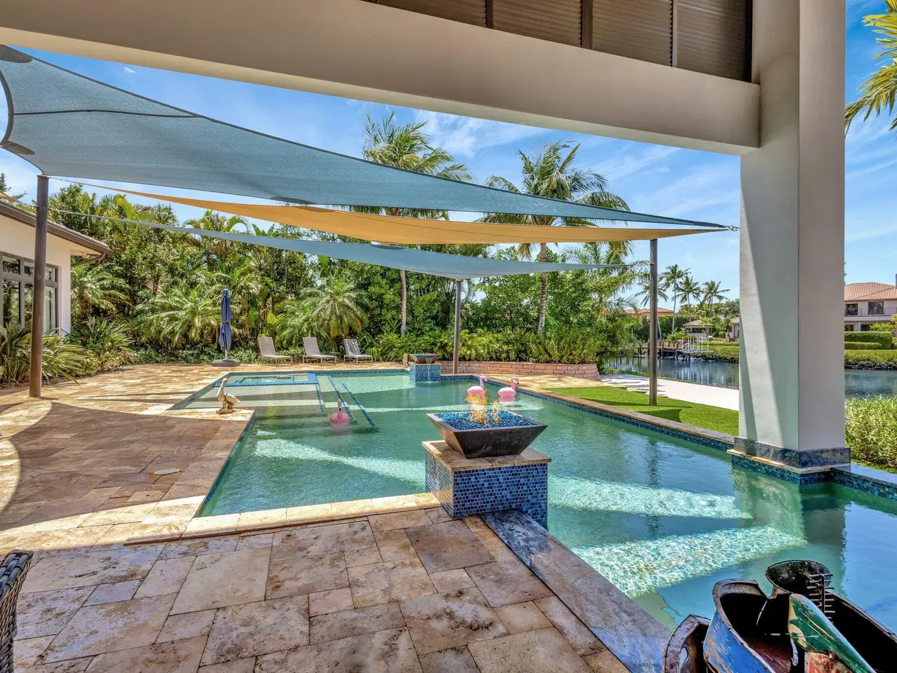 Welcome to waterfront living, in prestigious Frenchman's Creek. This exquisite 4-bedroom, 4.5-bath residence offers breathtaking water views, a private dock with boat lift, and direct access to the Intracoastal. Designed for both relaxation and entertainment, the outdoor oasis features a summer kitchen and a resort-style pool with spa, perfect for unwinding or hosting guests. Inside, the spacious chef's kitchen -- complete with a butler's pantry and breakfast nook -- offers a seamless blend of elegance and functionality. The grand living room, adorned with a decorative fireplace, wet bar, and floor-to-ceiling glass, invites natural light and showcases stunning vistas. 4-car + golf cart garage and unparalleled amenities, this home is a must-see for those seeking sophistication and comfort.
