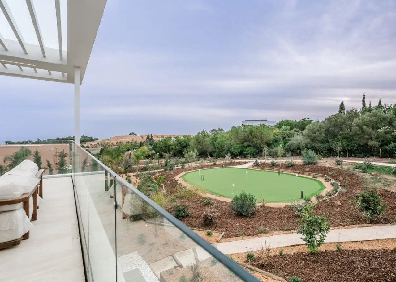 This fantastic modern villa is located in the Palmares Golf Resort in Lagos, one of the most prestigious areas in the Algarve. Set in tranquil surroundings, the villa offers fabulous panoramic sea views and is less than 5 minutes from the beach. This property is spread over 3 floors and comprises a gym, elevator, 4 bedrooms all en suite, wonderful terraces facing the sea and the possibility of building a cinema room. The property also has a large south-facing garden with a leisure area and swimming pool, with total privacy from the surrounding area. Contrary to usual practice, the villa has the 2nd floor as its main floor, with the aim of making full use of its views. The villa is close to amenities and points of interest, as well as golf courses for lovers of this sport. Located 1 hour from Faro International Airport. CHARACTERISTICS: Plot Area: 2 755 m2 | 29 656 sq ft Useful area: 340 m2 | 3 660 sq ft Deployment Area: 225 m2 | 2 422 sq ft Building Area: 340 m2 | 3 660 sq ft Bedrooms: 4 Bathrooms: 5 Garage: 2 Energy efficiency: A FEATURES: 4 bedrooms 3 floors Sea views Gym Elevator Swimming pool Possibility of building a movie theater