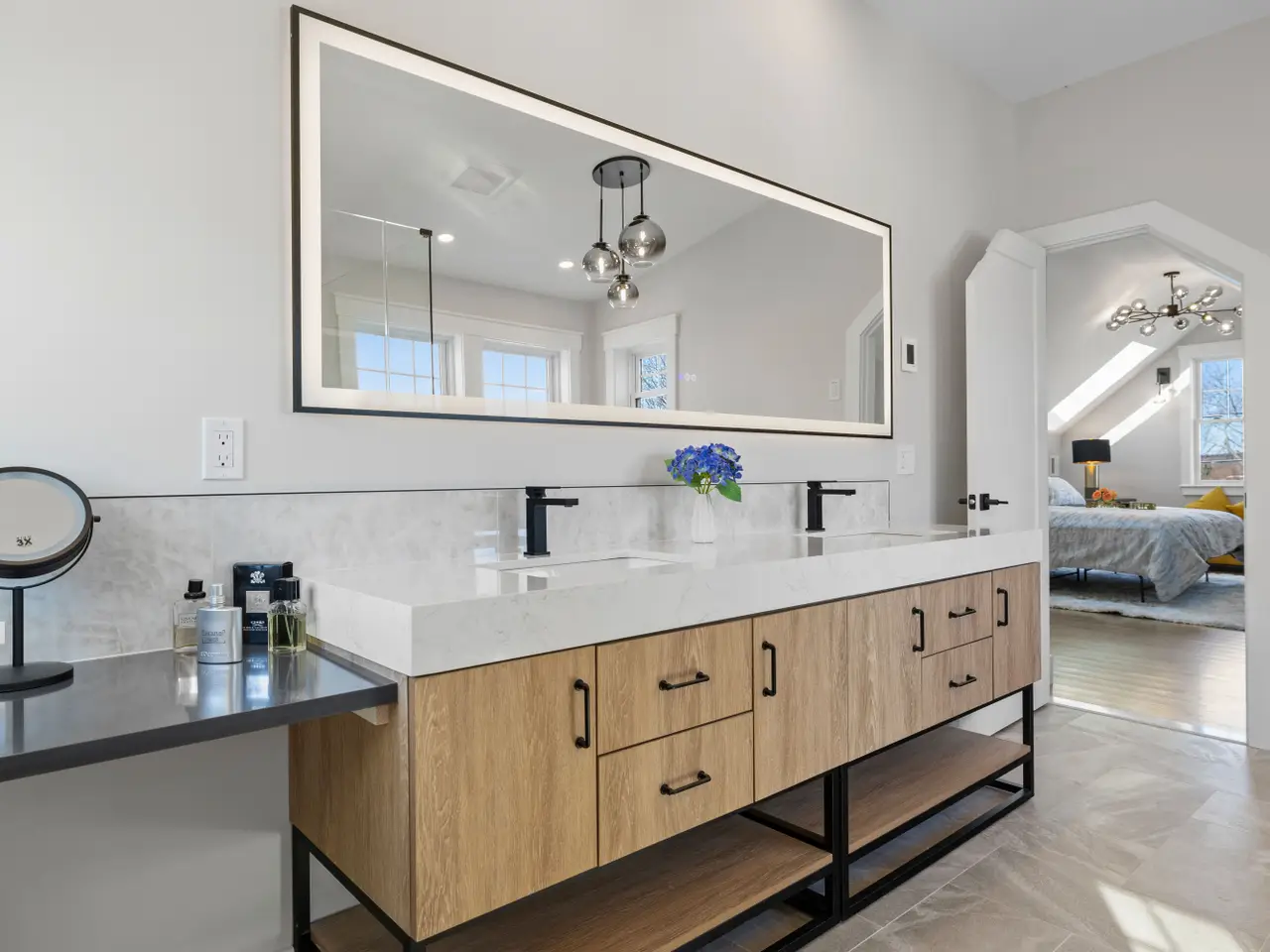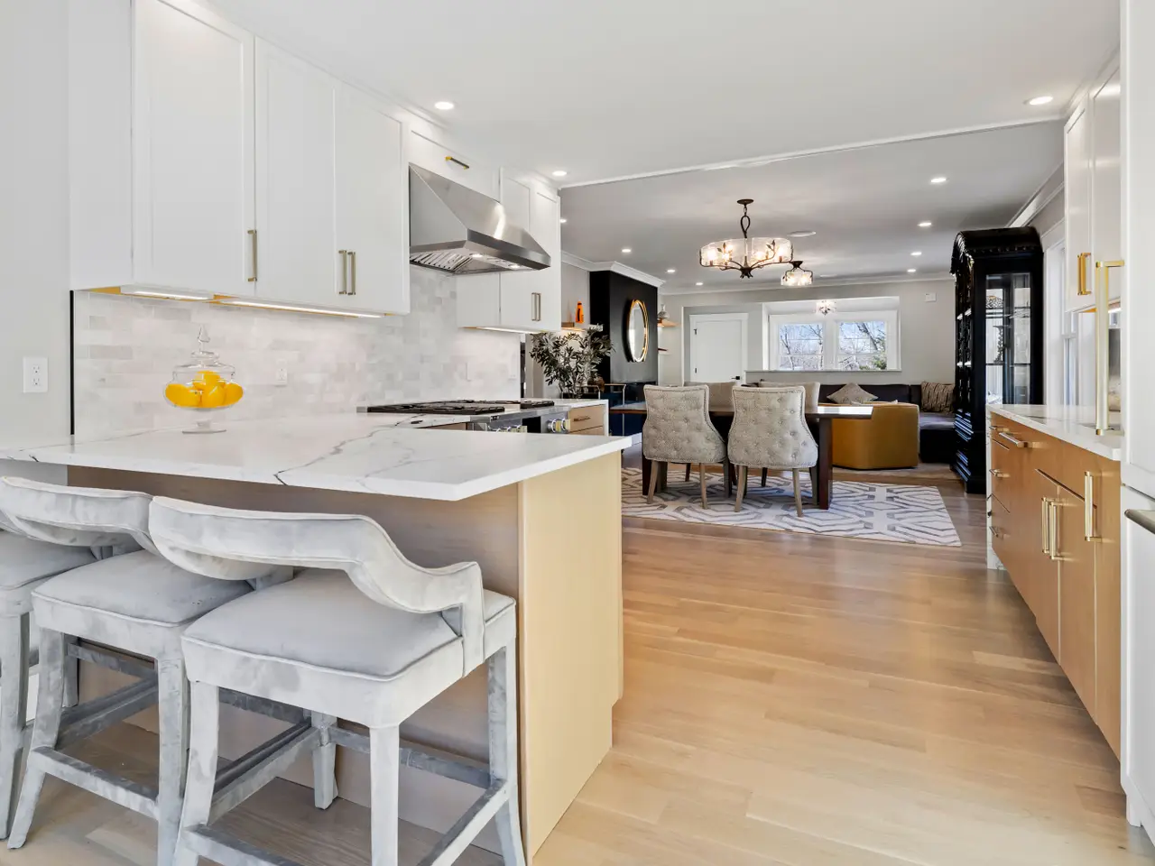Make this stunning 2025 modern Farmhouse your new home. Featuring 4 en-suite bedrooms and an open front-to-back layout with white oak floors, crown molding, and custom trim. The chef’s kitchen boasts quartz countertops with waterfall edges, custom cabinetry, and high-end appliances. Step outside through the back slider to a beautifully landscaped lawn. The primary suite offers cathedral ceilings, custom storage, and a private deck. The spa-like bath includes radiant floors, double sinks, a deep tub, and towel warmer. The lower level is perfect for multigenerational living, while a large mudroom with a dog wash leads to the heated 2-car garage with an EV charging port. Located on a quiet street, close to shops and the Belmont Commuter Rail.