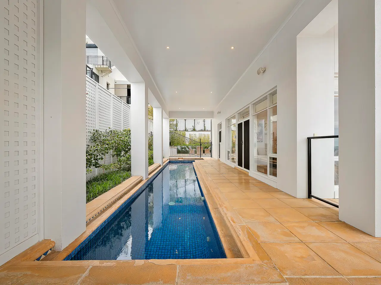 Sparkling lap pool with undercover alfresco