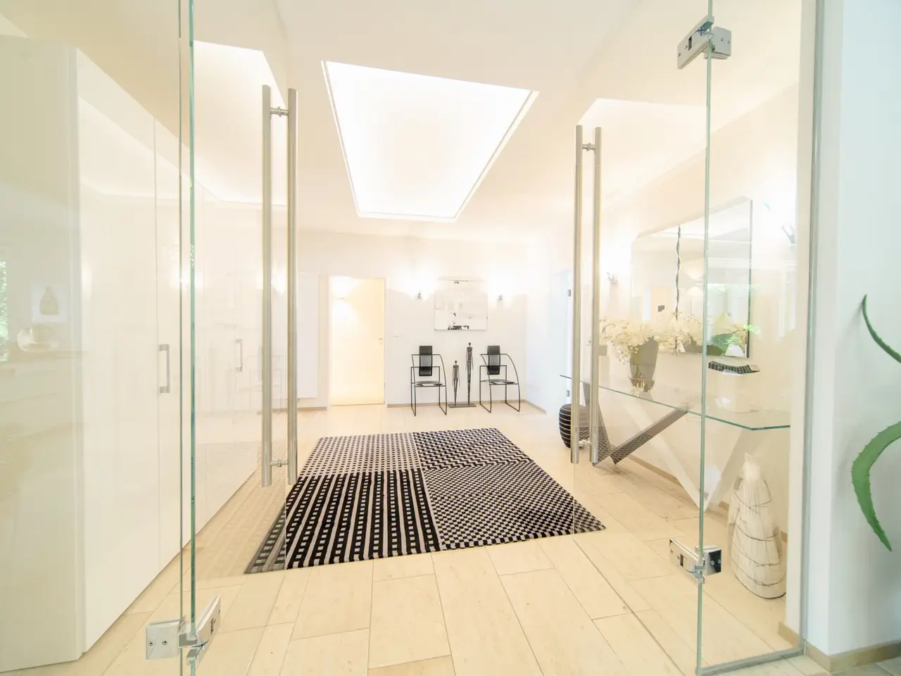 We are pleased to present you this exclusive villa in Schopfheim near Lörrach. Each of our properties is unique and deserves its own type of attention. As this design villa has many special features, it takes more than just a few lines of text to do justice to everything this property has to offer. We have put together everything that makes this luxury property unique in the exposé, which we would be happy to send to you personally. You can get a picture journey in 4K after scanning the QR code above or on YouTube at https://youtu.be/XcAxB8QfZPQ. Please send us your request and you will receive all the details about the property, a detailed description and further impressions of this fantastic villa . Convince yourself of this unique offer and arrange your personal viewing appointment. Please note that we can only carry out an inspection once we have received a credit check. Thank you very much for your understanding. Position This exclusive villa is in an absolute top location in Schopfheim near Lörrach. Perfectly nestled into the topography of the landscape, in an extremely well-kept neighborhood, our villa is discreetly hidden behind hedges and away from all attention. The motto here is: “Be more than appearances”. Geographically and transport-wise, you are well connected in all directions. The cities of Basel and Zurich can be easily reached via the Swiss Autobahn 3 and Freiburg is also just an hour's drive away via the first-class transport connections of the A98 and A5 highways. There is also a train station in town and offers an extensive network of routes with the reliable Swiss S-Bahn. And if you want to travel further: Freiburg/Basel/Mulhouse airport is only 20 minutes away to offer you maximum travel convenience. This privileged location allows you to enjoy the best of three countries. Your leisure activities also come into play at a high level in Lörrach / Schopfheim. Immerse yourself in an inspiring shopping experience through the exclusive boutiques and charming shops of the city center. Enjoy the warm sun on the inviting terraces of the street cafés or taste exquisite products from the nearby Markgräflerland and the surrounding region at the traditional, historic weekly market. All shops for daily needs such as shops, bakeries, banks and state-of-the-art medical facilities are in the immediate vicinity and can be easily reached. The educational offerings in Lörrach and Schopfheim are also extremely diverse and extensive. From kindergartens to renowned primary and secondary schools as well as the respected German University of Baden-Württemberg (DHBW), you can find all educational institutions within a few minutes by car or easily by public transport. Parking Space two x outdoor space, two x garage Other Information An energy requirement certificate is available. This is valid until October 10, 2033. Final energy requirement is 85.70 kwh/(m²*a). The main energy source for heating is gas. According to the energy certificate, the year of construction of the property is 1971. The energy efficiency class is C.