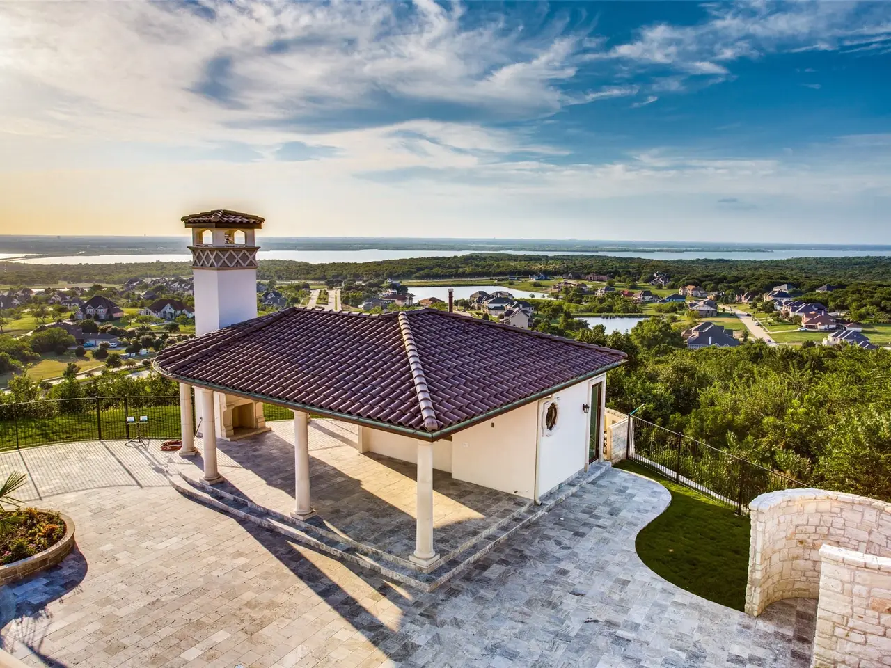 A once in a lifetime opportunity to own an elegantly intimate masterpiece sitting atop one of the highest points for hundreds of miles, with panoramic views! Spectacular views of the lake, Fort Worth, Las Colinas, AT&T Stadium! Designed for a luxurious lifestyle, the magnificent mansion features 8 bedrooms, 8.2 baths, 3 floating staircases, a resort style pool featuring two grottos, waterfalls and water features, a sunken fire pit, fire sconces, and a cabana with outdoor kitchen & bath. The gourmet kitchen has Wolf & SubZero appliances, quartz counters, custom wood ceilings including a wine room, & butler's pantry. The primary suite retreat features spa inspired bath!