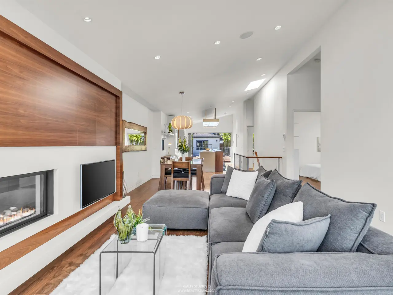Stunning and fully renovated Van Special! This home offers modern open-plan living, vaulted ceilings, gas fireplace, and hardwood throughout. The Chef’s kitchen with Thermador/Bosch appliances, peninsula island that seats six and TONS of storage! Eclipse doors open to a sunny south-facing deck with swim spa/hot tub, fire pit, pergola with built-in heaters and speakers. The two-level home has five beds, four baths, media room and a one bed suite. Lush Asian-inspired landscaping, EV garage, and all set in a walkable, friendly neighborhood close to parks, schools, and shops. A truly spectacular home!! Book your showing now!