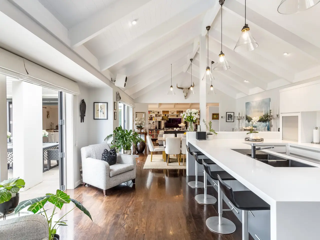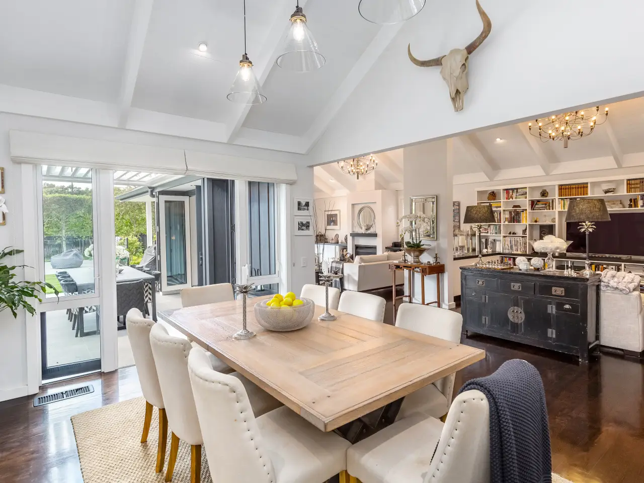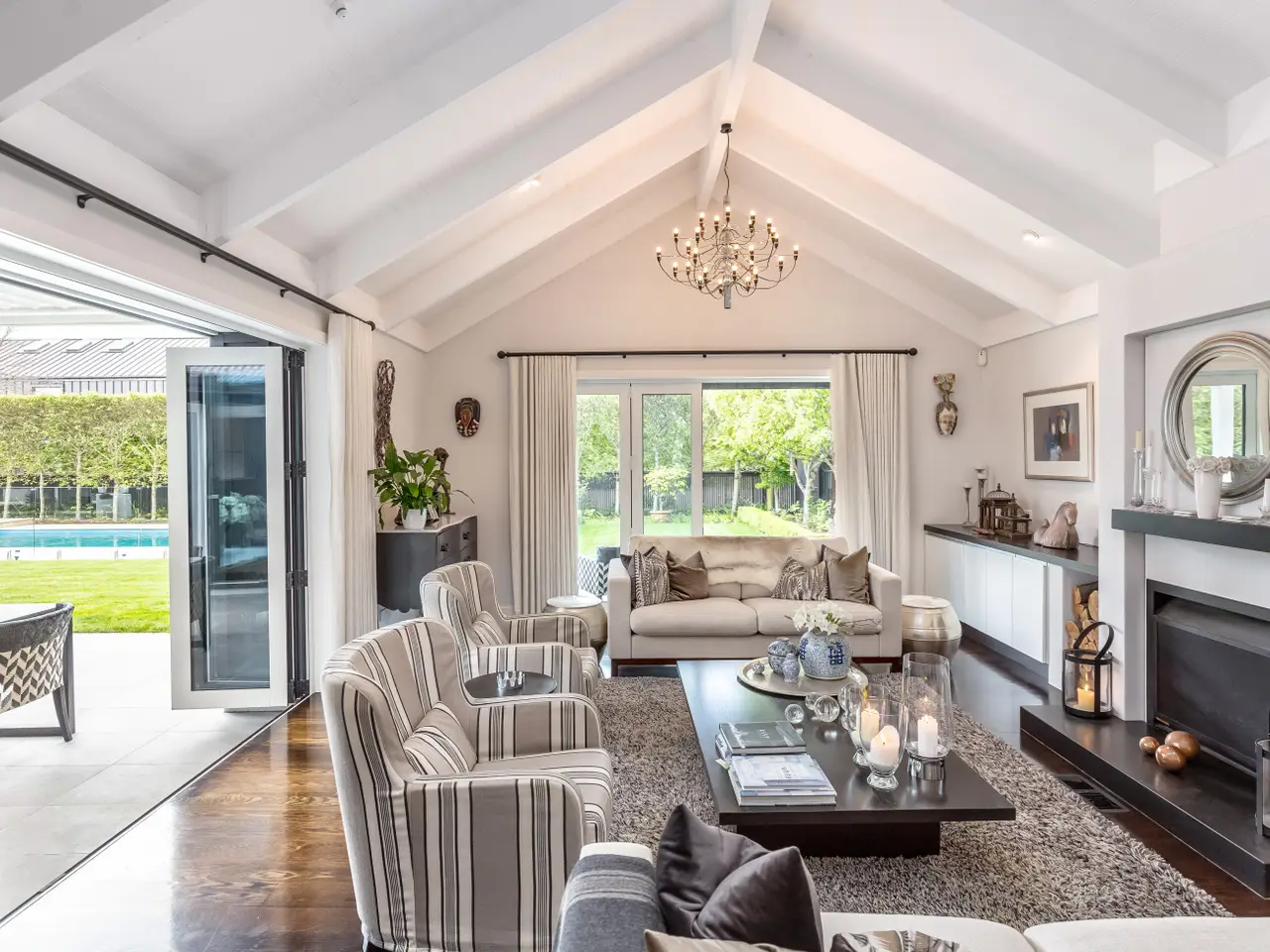 Architecturally designed by multi-award-winning architect Alan Minty, this large, 4-bedroom, 4-bathroom residence occupies an exclusive position on Greytown's most prestigious avenue. A winner of the coveted Wairarapa Master Build House of the Year, this frequently admired residence delivers uncompromising luxury and sophistication. The striking entrance, grounded by American oak flooring, sets the tone for the elegant interiors. A light-filled open-plan living area with soaring chapel ceilings, and a Jetmaster fireplace forms the heart of the home. The adjoining snug with bespoke bookshelves and a concealed bar provides an intimate retreat. The chef's kitchen blends style and function with Blum cabinetry, Corian benchtops, premium appliances, and a generous scullery. Multiple living areas transition seamlessly to a covered louvred patio complete with an outdoor fireplace which is wired for sound, creating the ultimate setting for year-round entertaining. The primary suite is a true sanctuary, boasting a spacious walk-in wardrobe and a fully tiled ensuite featuring a bath and underfloor heating. Two further guest suites, each with a private ensuite and direct garden access, make hosting family and friends effortless and refined. A fourth bedroom is conveniently serviced by an executive powder room with a shower. Convenience and comfort are enhanced by a triple garage, study/office, full insulation, double glazing, central heating, central vacuum, irrigation, and bespoke features such as a hidden woodshed cleverly tucked behind a cedar sliding door. The outdoor spaces are just as captivating, featuring manicured gardens, a tranquil water race and an inground, heated saltwater pool. A citrus grove, established fruit trees, and thoughtfully landscaped grounds further enhance the setting, creating an atmosphere of relaxation and recreation. French doors throughout the home open seamlessly to these picturesque surroundings. Just moments from Greytown's boutique village and only an hour from Wellington, this home represents the pinnacle of lifestyle and location. Rarely does a property of this calibre become available. Please call me if you have any questions regarding this listing. 06 304 8007