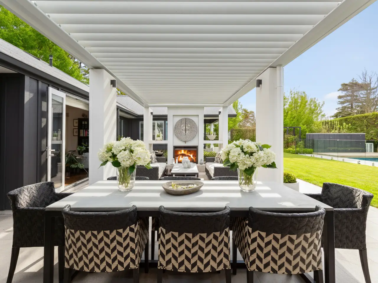 • Covered louvred patio with outdoor fireplace