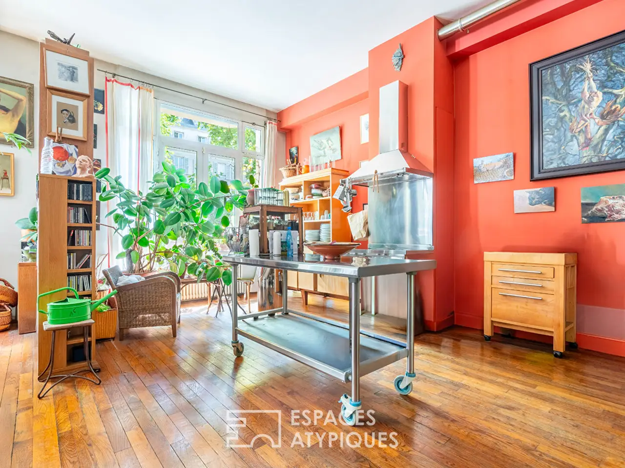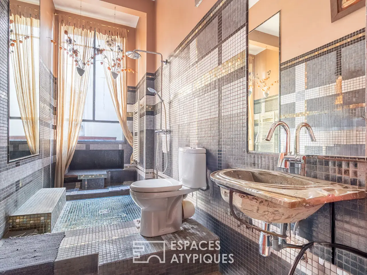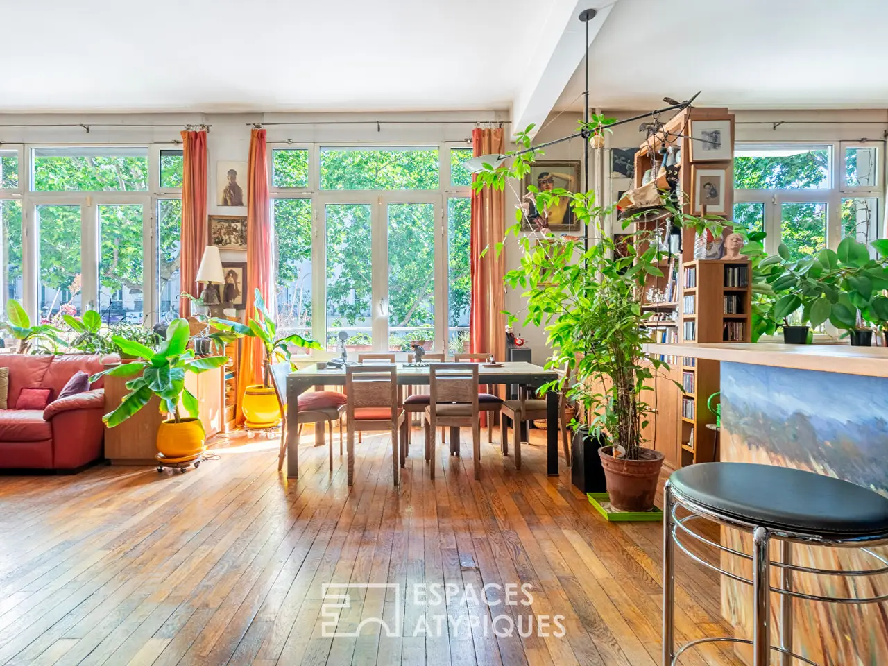 Located near Porte Saint-Martin, this 170 m2 loft (161.48 m2 Carrez law) is located on the 1st floor with elevator of a 1935 building that has retained its Art Deco features. The entrance opens onto a vast 80 m2 living room at 3.50 meters of height, bathed in light thanks to three large south-facing bay windows, offering unobstructed views of the sky. The open-plan kitchen integrated into this space invites conviviality in a decidedly bright and contemporary setting. The sleeping area consists of three bedrooms, two of 11 m2 and 12 m2, each with a mezzanine, and a 24 m2 master suite with generous volumes. All three bedrooms overlook a quiet courtyard, ensuring a peaceful environment. Two bathrooms, one with a laundry area, as well as two toilets and plenty of storage space complete this property. Original parquet flooring, generous volumes, large windows, and period architectural details give this loft all the charm of a living space conducive to entertaining. This property, subject to co-ownership status, has a sound cellar in the basement. Metro lines: Strasbourg-Saint-Denis, Republique REF. 11585 Additional information * 4 rooms * 3 bedrooms * 2 shower rooms * Floor : 1 * 6 floors in the building * 10 co-ownership lots * Annual co-ownership fees : 5 845 € * Property tax : 3 511 € * Proceeding : Non Energy Performance Certificate Primary energy consumption e : 261 kWh/m2.year High performance housing