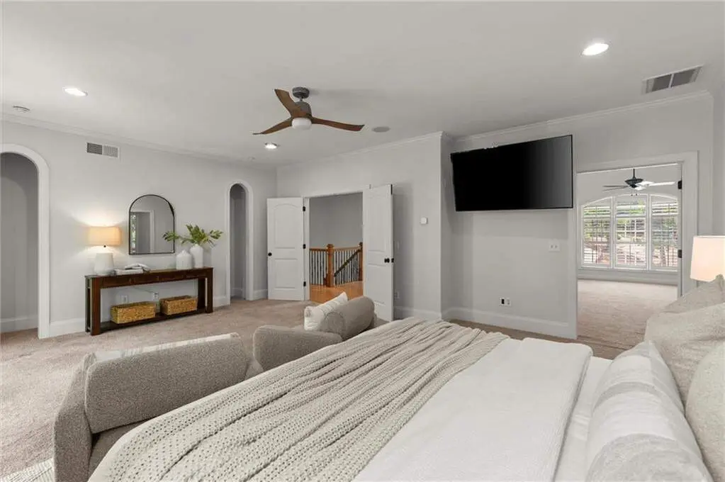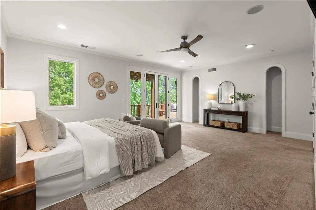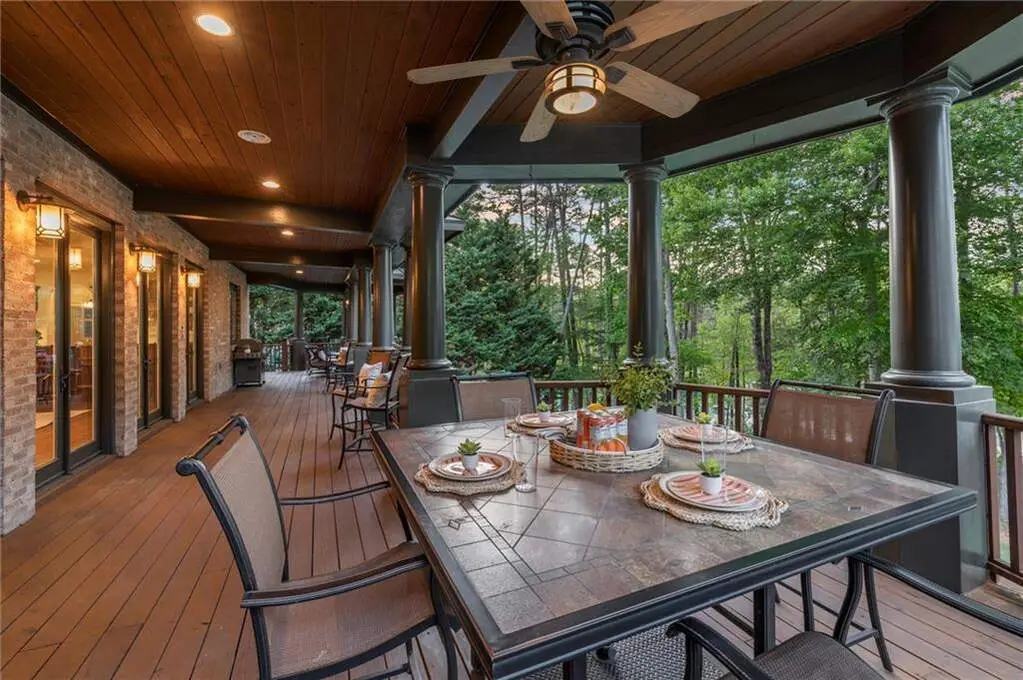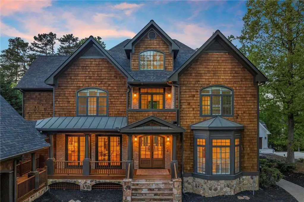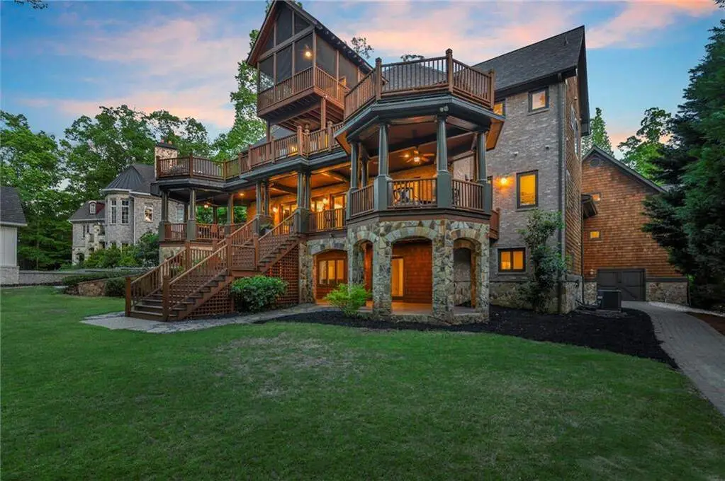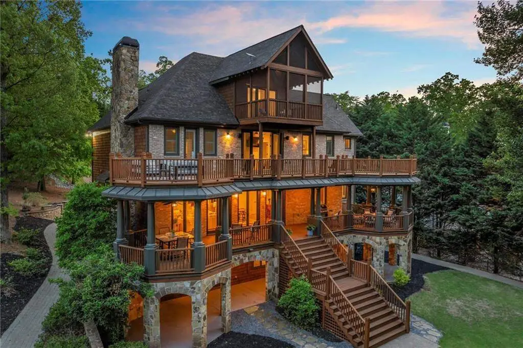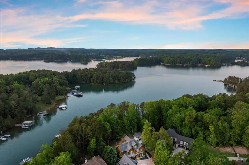 Just in time for summer . . . live the ultimate lake life in this exquisite custom-built craftsman estate in a top-rated school district, boasting 100 feet of prime Lake Lanier shoreline, a double-slip partially covered private dock on year-round deep water with a jet-ski lift, and an over water party deck perfect for relaxing or entertaining by the water. Set on a gently sloping lot with a flat back yard, the home offers panoramic lake views from all 4-levels of luxury living and showcases exceptional outdoor living with expansive wraparound decks and a stunning stone patio that flows seamlessly toward the dock path. Crafted with timeless cedar, stacked stone, and brick, this residence impresses from the moment you arrive and even has it's own private sports court. Upon entering through the wood and glass double statement doors, coffered ceilings and custom built-ins define the main living space, while a formal dining room connects to the chef's kitchen through a wet bar butler's pantry. The kitchen features a walk-in pantry, breakfast area, and an additional flex space just behind it ideal for a drop zone after lake outings or as a second pantry. A spacious main floor bedroom with a private en suite bath adds convenience and flexibility for guests, multigenerational living or for a great home office. The main floor also boasts a laundry room & additional full bathroom for guests. Designed for multi-level entertaining, the finished terrace level is a dream-complete with a large living space with plenty of room for sofa, a pool table, a poker table, a sauna, ping pong & whatever else you can dream up. There's also a home gym, a guest suite with full bath & it's own private entry, and direct access to the lake, flat backyard, firepit & dock path from the terrace level as well as an exterior storage space featuring a workbench. Upstairs, the oversized primary suite is a private retreat with its own expansive deck overlooking the water, spa-inspired bath, & a huge bonus room attached. Two more bedrooms complete this level, while the fourth floor offers a versatile bonus room with full bath-perfect as an additional bedroom, media room, or office. A separate 3-car garage connected by a covered breezeway offers potential for an income-generating apartment or private guest quarters. Professionally landscaped grounds include an outdoor basketball court and space to add a pool, elevating the estate feel. This one-of-a-kind Lake Lanier estate blends luxury, comfort, and unbeatable lakefront access-designed for those who want to enjoy every moment of lake living. Discover the unparalleled lifestyle that comes with living on the breathtaking shores of Lake Lanier, where everyday feels like a vacation. This stunning lake is not just a picturesque backdrop; it's a vibrant community hub that offers an array of year-round activities for residents and visitors alike. Imagine waking up to the soothing sounds of water lapping at the shore, enjoying morning coffee with panoramic views, and having endless opportunities for outdoor adventures right at your doorstep. From boating and fishing to hiking and picnicking in the nearby parks, Lake Lanier offers a perfect blend of relaxation and recreation. Adventure awaits at Lanier Islands, where the thrilling water park provides endless fun for families and friends, featuring exciting slides, a lazy river, and sandy beaches perfect for sunbathing. With your boat docked just steps from your home, you can effortlessly cruise to popular lakeside restaurants for a dinner, where you can enjoy lifestyle music with your friends and family. Embrace a lifestyle filled with sun-soaked days spent on the water, cozy evenings by the firepit, and a close knit community that cherishes the beauty of nature. Living on Lanier means not just finding a home, but discovering a vibrant way of life that celebrates both adventure and tranquility. This truly is the perfect place to call home.