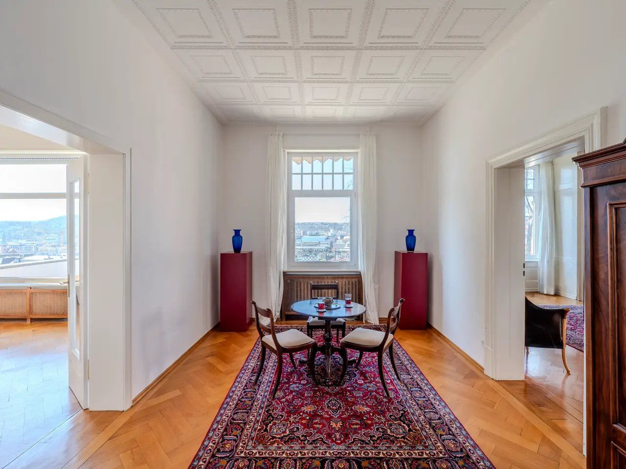 This unique urban villa was built around the turn of the century in the Neo-Baroque style and is a listed building. The building is one of the most beautiful houses on the entire street and enjoys an excellent panoramic location in the city center. Stately rooms with high ceilings, elaborate stucco, and a variety of preserved stylistic elements will delight lovers of old buildings. Highlights include the many impressive rooms, the spacious garden, and the unobstructed panoramic view of Stuttgart's city center. Over the years, the villa has been expanded with a generous extension on the garden level. The extension was completely converted and modernized for residential use in 2009/2010. Flexible access and division options offer the best conditions for a wide variety of usage concepts. Five self-contained units are possible. The currently approved situation includes three apartments and one commercial floor. If the office space were converted, a total of approximately 641 m² of living space would be available. On the street are two single garages and the entrance gate to the rear courtyard with another three to four outdoor parking spaces. Once you've parked your vehicle, you can reach the ground and garden levels or the main entrance in just a few steps, either via the side entrance. The staircase itself is an architectural highlight. A curved wooden staircase, arched windows with lattice elements, and other details underscore the historic character. A separate staircase leads to the attic apartments, allowing for maximum flexibility. The main floor impresses with spacious rooms, a stately south-facing terrace, and fantastic views over the city center. A glazed extension leads to the lower living level on the garden level. Here, you'll find six rooms, two bathrooms, and direct garden access. The maisonette apartment comprises a total of approximately 364m² of living space and can be divided if necessary. The sum of the features and special features of these combined floors is ideal for families needing plenty of space or for multi-generational living. The atmosphere of the garden and outdoor area certainly plays a crucial role here. Due to a change of use in 2011, the apartment on the upper floor serves as an office. This floor is essentially no less beautiful than the ground floor and features spacious rooms with approximately 3.50 m ceiling height and a south-facing balcony with a magnificent view. Converting it back to an apartment should involve manageable effort. The office includes a spacious entrance hall and five (work) rooms with a total area of ​​approximately 155 m². The attic contains two smaller, already extensively renovated apartments. The electrical and plumbing installations have been almost completely renewed. Only the interior work requires (manageable) remaining work. The communal hallway leads to the attic space. This extends largely over both apartments and offers ample storage space. Further (communal) usable areas are located in the basement. In addition to separate storage rooms, there is a spacious laundry room and an inviting wine cellar with enough space for a small party. The property's potential uses couldn't be more versatile! With the appropriate permit, the townhouse can be used entirely for commercial purposes or purely for residential purposes. Even a buyer's association with subdivision plans is conceivable. In any case, the rooms are very representative and meet high standards. Generally, costs for (cosmetic) repairs, modernizations, and maintenance measures on the house must be budgeted for; we would be happy to inform you about these. Locations The villa is located in a prime downtown location. It offers all the amenities of city life, and the infrastructure leaves nothing to be desired. Königstraße and Schlossplatz are within walking distance. Public transportation stops, (fast-food) restaurants, educational institutions, and various shops for daily needs are nearby. The State Gallery and the State Library are just a stone's throw away. By car, the B14 or B27 highways are just a few minutes away, which is certainly of interest to commuters. Type of parking 3 x outdoor parking space, 2 x garage Other information MONEY LAUNDERING: As a real estate brokerage company, von Poll Immobilien GmbH is obligated pursuant to Section 2 Paragraph 1 No. 14 and Section 11 Paragraphs 1 and 2 of the Money Laundering Act (GwG) to establish and verify the identity of the contractual partner when establishing a business relationship, or as soon as there is a serious interest in executing the property purchase contract. For this purpose, we must record the relevant details of your identity card (if you are acting as a natural person) in accordance with Section 11 Paragraph 4 GwG – for example, by means of a copy. For a legal entity, we require a copy of the commercial register extract showing the beneficial owner. The Money Laundering Act stipulates that the broker must retain the copies or documents for five years. As our contractual partner, you also have a duty to cooperate in accordance with Section 11 Paragraph 6 GwG. LIABILITY: We would like to point out that the property information, documents, plans, etc. that we pass on come from the seller or landlord. We therefore assume no liability for the accuracy or completeness of the information. It is therefore our customers' responsibility to verify the accuracy of the property information and details contained therein. All property offers are subject to change without notice and are subject to errors, prior sale, rental, or other prior utilization. OUR SERVICE FOR YOU AS AN OWNER: If you are planning to sell or rent your property, it is important for you to know its market value. Have one of our real estate specialists professionally assess the current value of your property free of charge and without obligation. Our nationwide and international network enables us to optimally match sellers or landlords wi