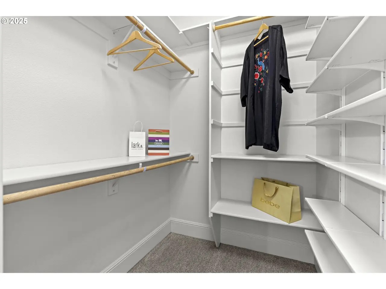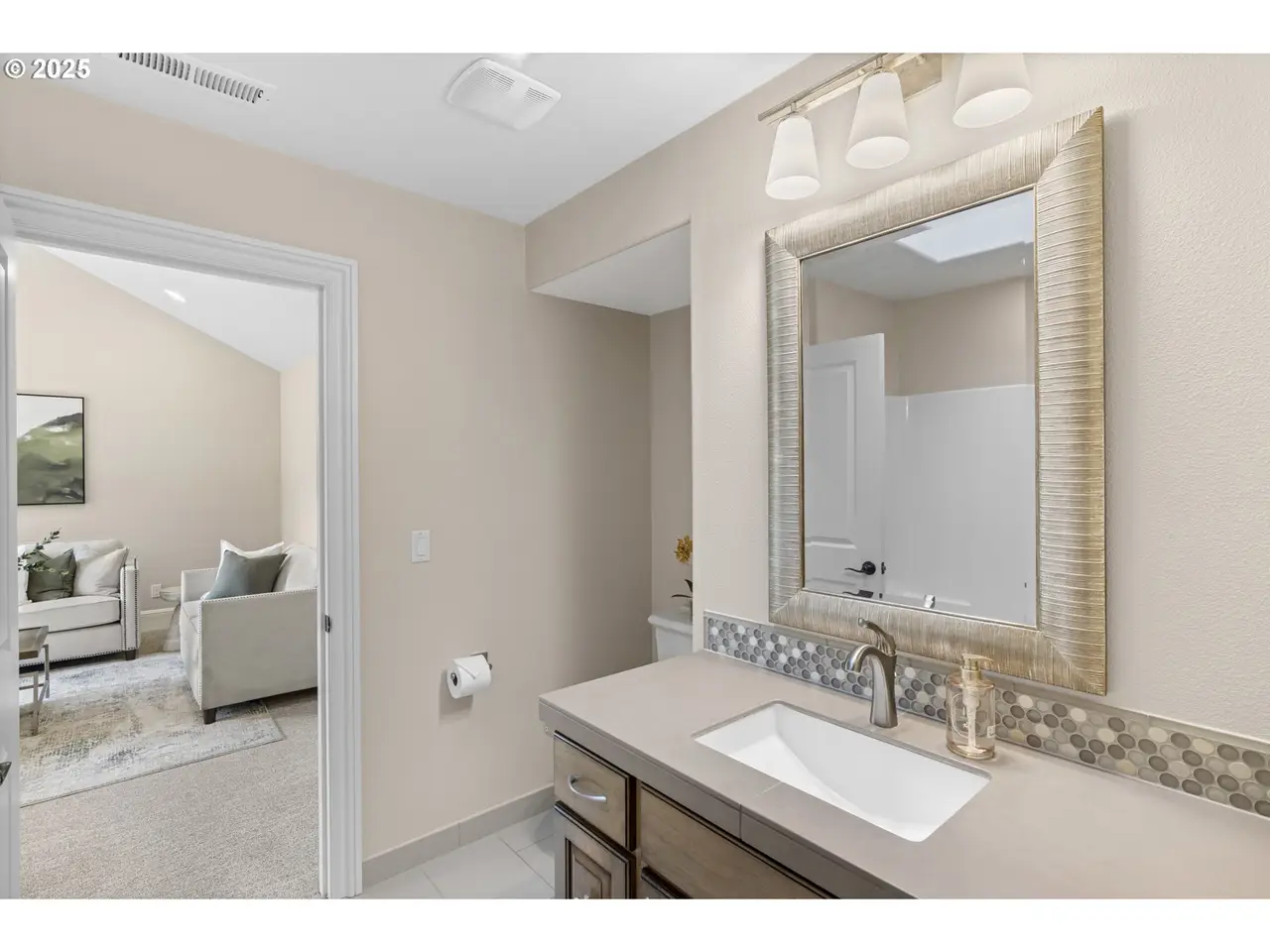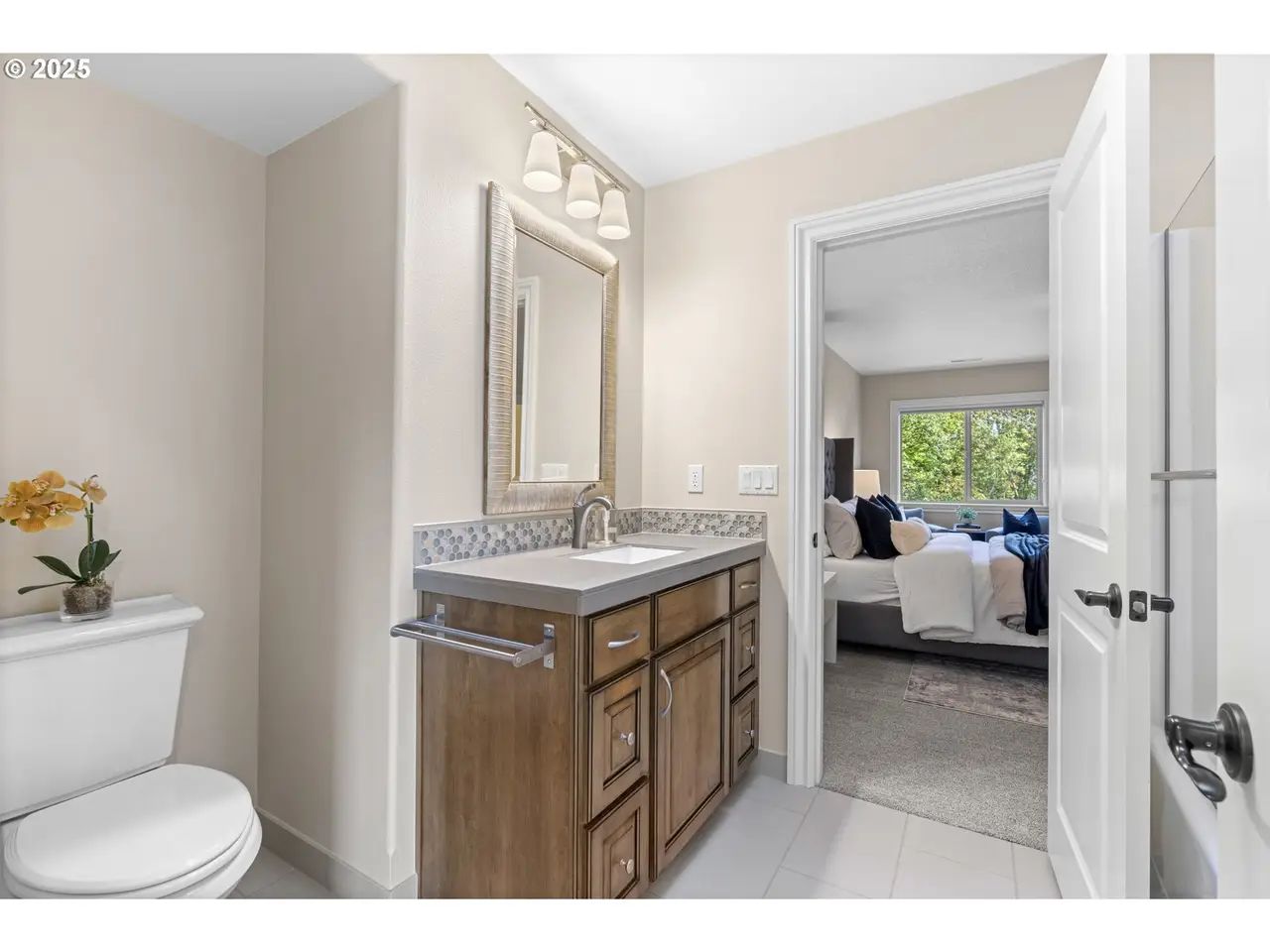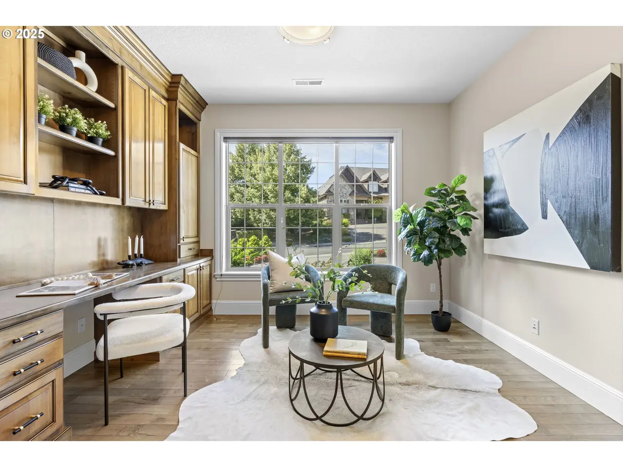 Nestled on a quiet cul-de-sac and backing to a peaceful, tree-lined greenbelt, this exceptional home offers 3,135 square feet of refined living on nearly half an acre. The home is the proud Clark County Parade of Homes recipient of "Best in Show," "Best Livable Floor Plan," and "Best Landscaping." The expansive open-concept great room is anchored by vaulted ceilings, a dramatic floor-to-ceiling tiled fireplace, and custom built-ins, with massive windows that flood the space with natural light. A state-of-the-art Control4 system offers fully integrated smart home technology, including lighting, climate, audio, security, and intercom controls. The designer kitchen features a quartz and butcher block island, Italian Dolomite marble backsplash, glass cabinet handles, premium Dacor appliances, over-range pot filler, LED under-cabinet lighting and dual pantries. The adjoining dining area flows seamlessly to the outdoor living space, making entertaining effortless year-round. Two main-level ensuite bedrooms offer spa-inspired bathrooms with zero-entry showers, marble countertops, radiant heated floors, and direct access to the outdoors. Upstairs, you'll find a third bedroom, full bath with skylight, and a vaulted-ceiling fourth bedroom or bonus room/flex space. The dedicated office features custom built-in desks and cabinetry. Out back is a wraparound deck and a vaulted covered outdoor kitchen complete with built-in BBQ, beverage fridge, wine cooler, gas space heater, ceiling speakers, and TV hookup--ideal for outdoor gatherings. The professionally landscaped yard is illuminated with programmable LED lighting. Additional features include hot/cold water hookup in garage, central vacuum system, tankless H20 heater, and triple-pane windows. Blending timeless craftsmanship with 21st-century modern luxury, here is your rare opportunity to own one of Felida's finest homes.