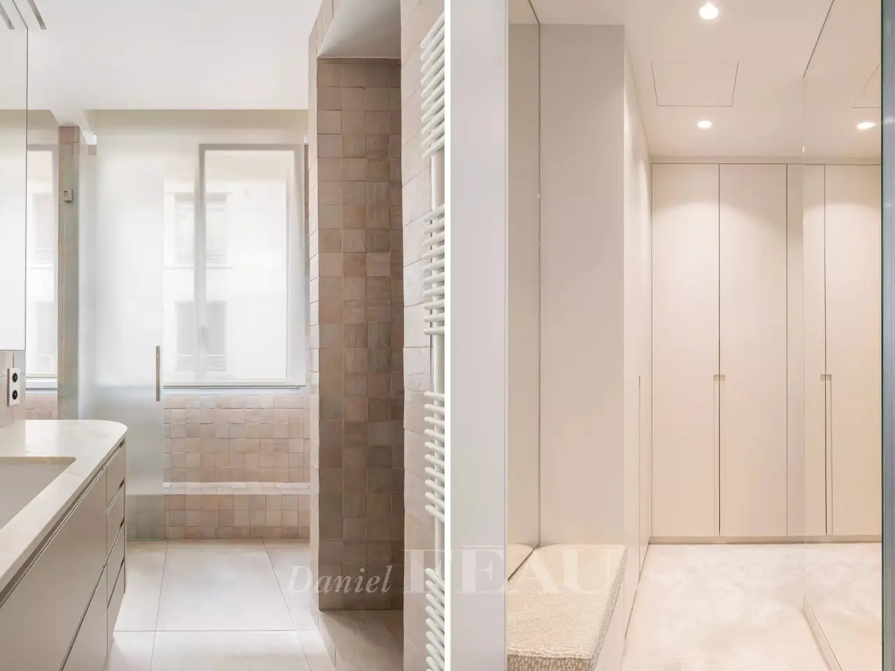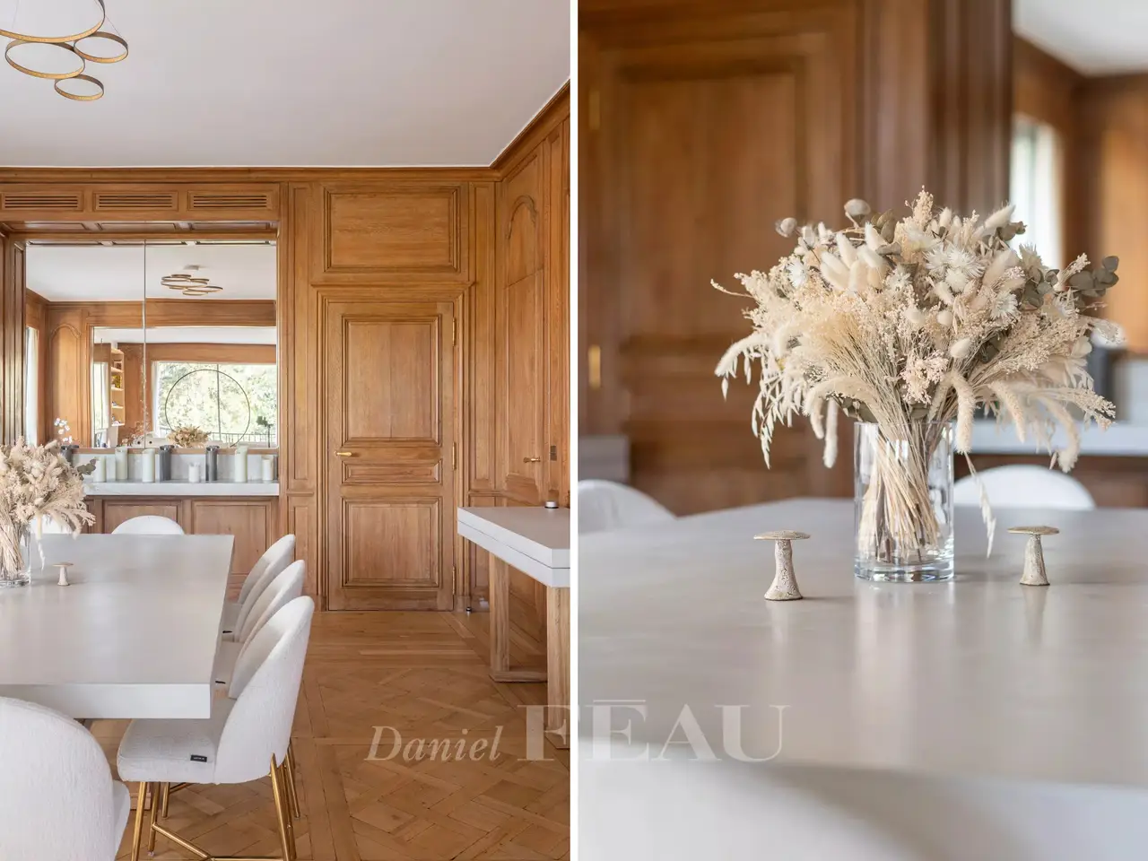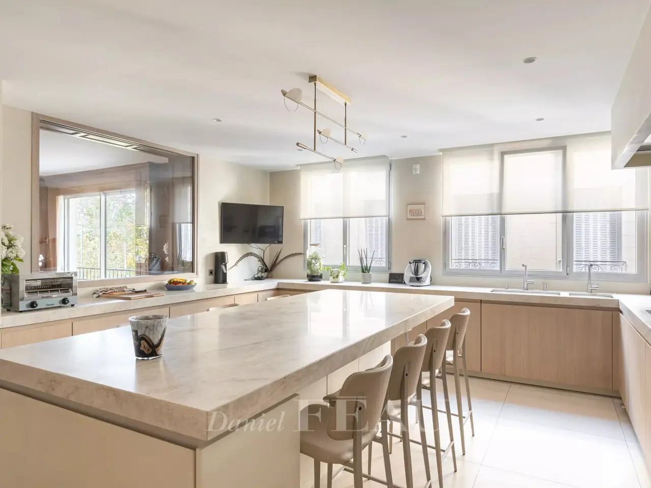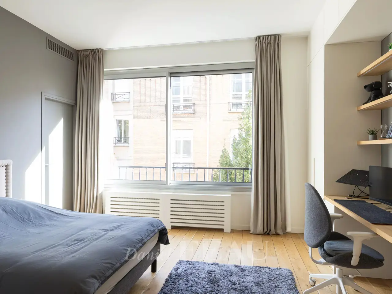 This sumptuous 326 sqm apartment on the 2nd floor of a luxurious and recently renovated mid 20th century freestone building with elegant common areas has been renovated in a contemporary style while preserving original panelling. Particularly bright and enjoying an open view of the Bois de Boulogne, it includes a spacious living/reception room with a dining room and a fully equipped kitchen, four spacious bedrooms each with a bathroom and bespoke storage space, a master suite enjoying a view of the woods, two bathrooms and a spacious dressing room. With two basement parking spaces, a maid’s bedroom and a cellar.