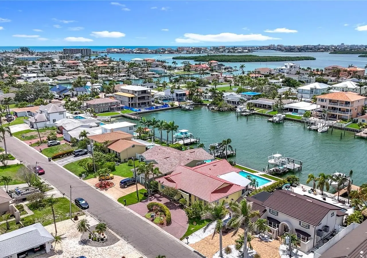This high and dry beauty was one of the very few houses to escape the hurricane water and winds. Get ready to be blessed in this Spanish influenced, waterfront gem, La Dichosa. Located on the beautiful Isle of Capri, this high and dry beauty was one of the very few houses to escape the hurricane water and winds. A solid, masonry marvel, this three bedroom and three bathroom split plan is ready for your next pool party in the massive forty foot lap pool. Sit on the lighted dock with intracoastal sunrise and sunset views or park your boat on the 17,000lb boat lift and kayaks or jet skis on the 10,000lb platform lift. The dock also has a sink and fish-cleaning table. Just a few houses away, the ICW can transport you to the Gulf via Johns Pass or Blinds Pass. A newly paved and professionally landscaped circular drive will invite guests through the verdant arched porch. Inside, a large family room with multi-sliding doors to the enclosed/screened sunroom make a great entertaining space. The sunroom has a Jenn-Air grill, sink and cabinets for storage. The kitchen with bar seating, stainless Bosch, LG and GE appliances, granite countertops and an ample dining room gaze over the waterway with sliding doors for views of the pool and water. The backyard, also newly landscaped, offers privacy. A large laundry room with bathroom and spacious storage options allow for egress to the garage and could house an additional fridge. The primary suite is a secluded sanctuary with double sink, a walk-in closet and separate toilet room with shower and bidet. Move right in knowing the tile roof, elevated air conditioner, elevated water heater, seawall, pool pump and water softener are all new. A two car garage with loads of storage will come in handy for the new beach toys. Take a bike ride or walk approximately three fourths of a mile to the wide sandy shores of one of Treasure Island’s beautiful beaches. Play tennis, pickleball or take the kids to the playground, baseball field or dog park, all part of the Rosselli Park community amenities. Hop on the Sun Runner for dinner and drinks downtown St. Petersburg or simply kick back and enjoy your new slice of paradise